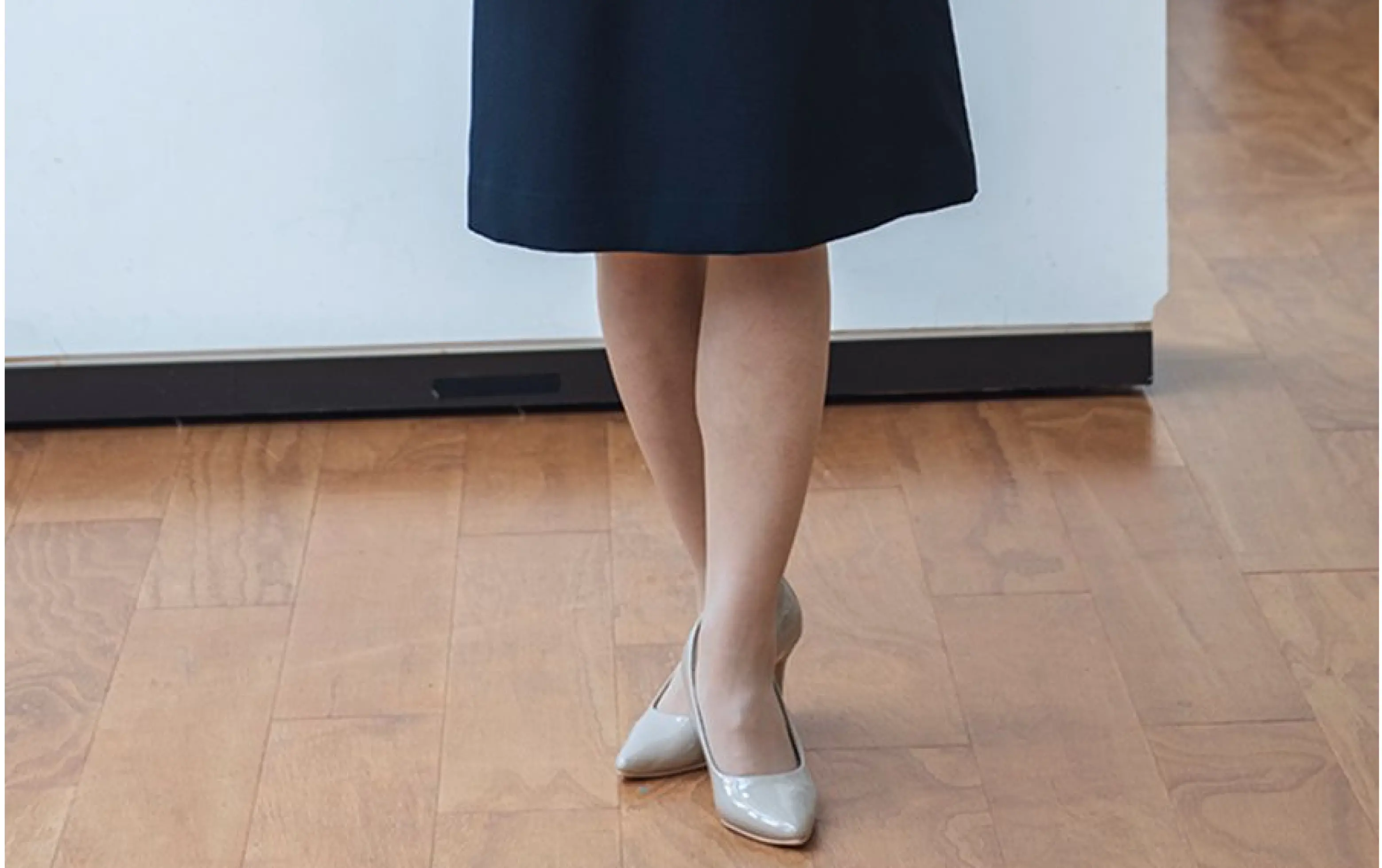 黒いストッキングやタイツ、生脚はフォーマルな場には不相応とされています。ナチュラルなベージュのストッキングを着用し、つま先の隠れるパンプスを合わせましょう。