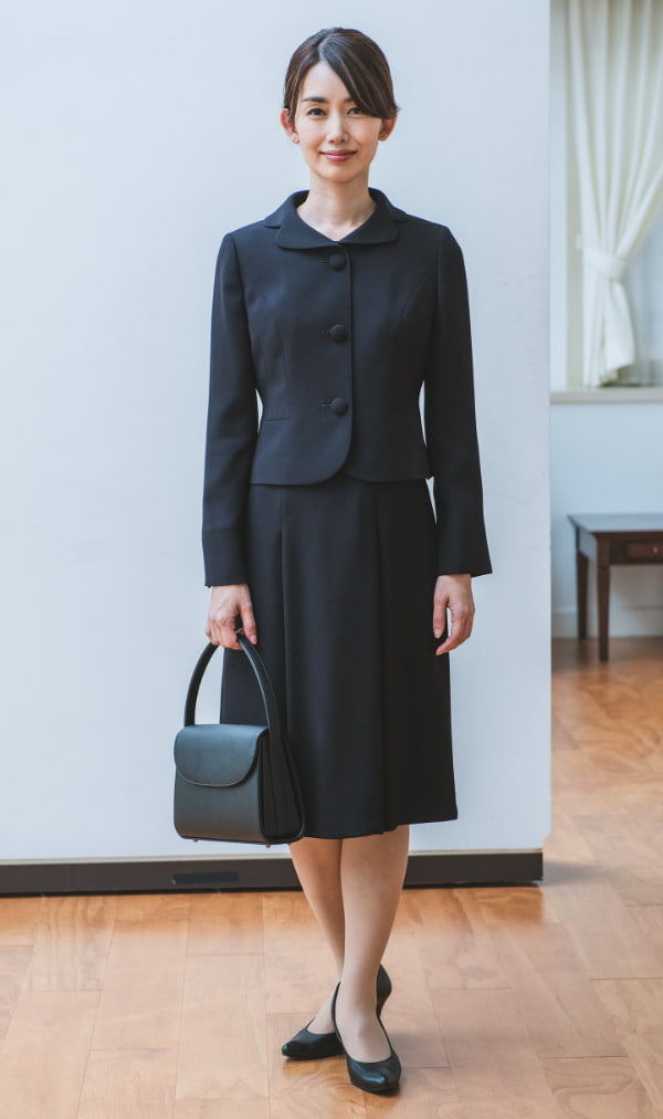 しっかり膝が隠れる安心丈で、上品な佇まいを演出。