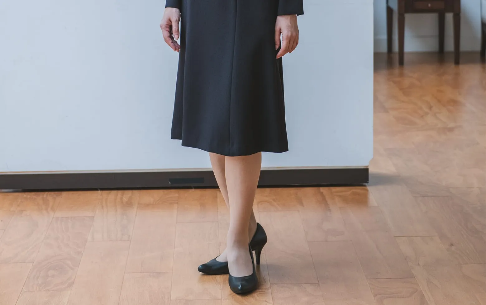 面接会場や控え室など、何かと椅子に座ることが多いお受験当日。ワンピースの長さは、着席時にも膝が隠れるくらいのものを選ぶようにしましょう。