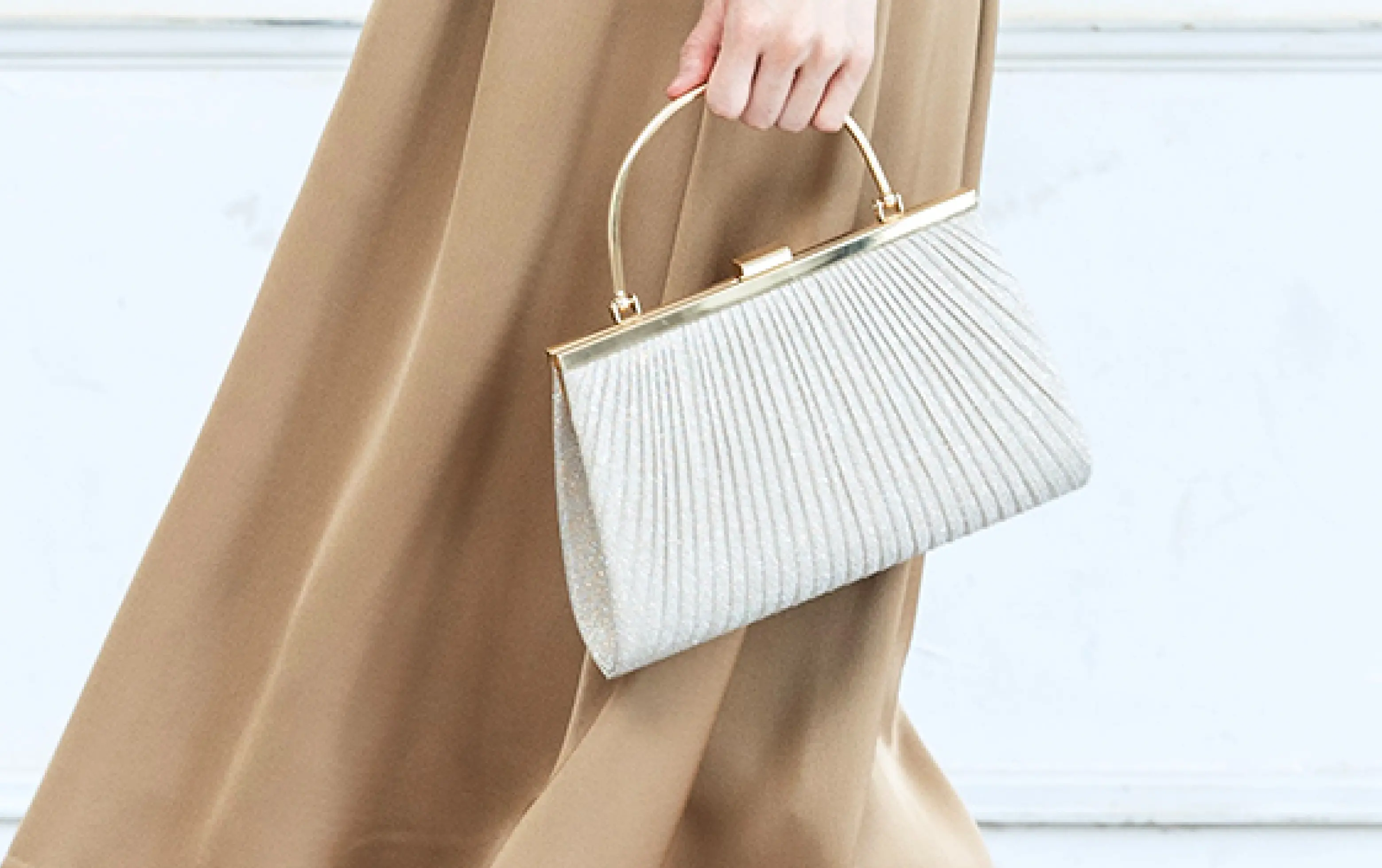 バッグはお財布やスマートフォン、ハンカチ、最小限のメイク道具などが入る小さめサイズに。サブには布製で幅を取らない縦型のアイテムがおすすめです。大きな荷物やコートなどはクロークへ預けましょう。
