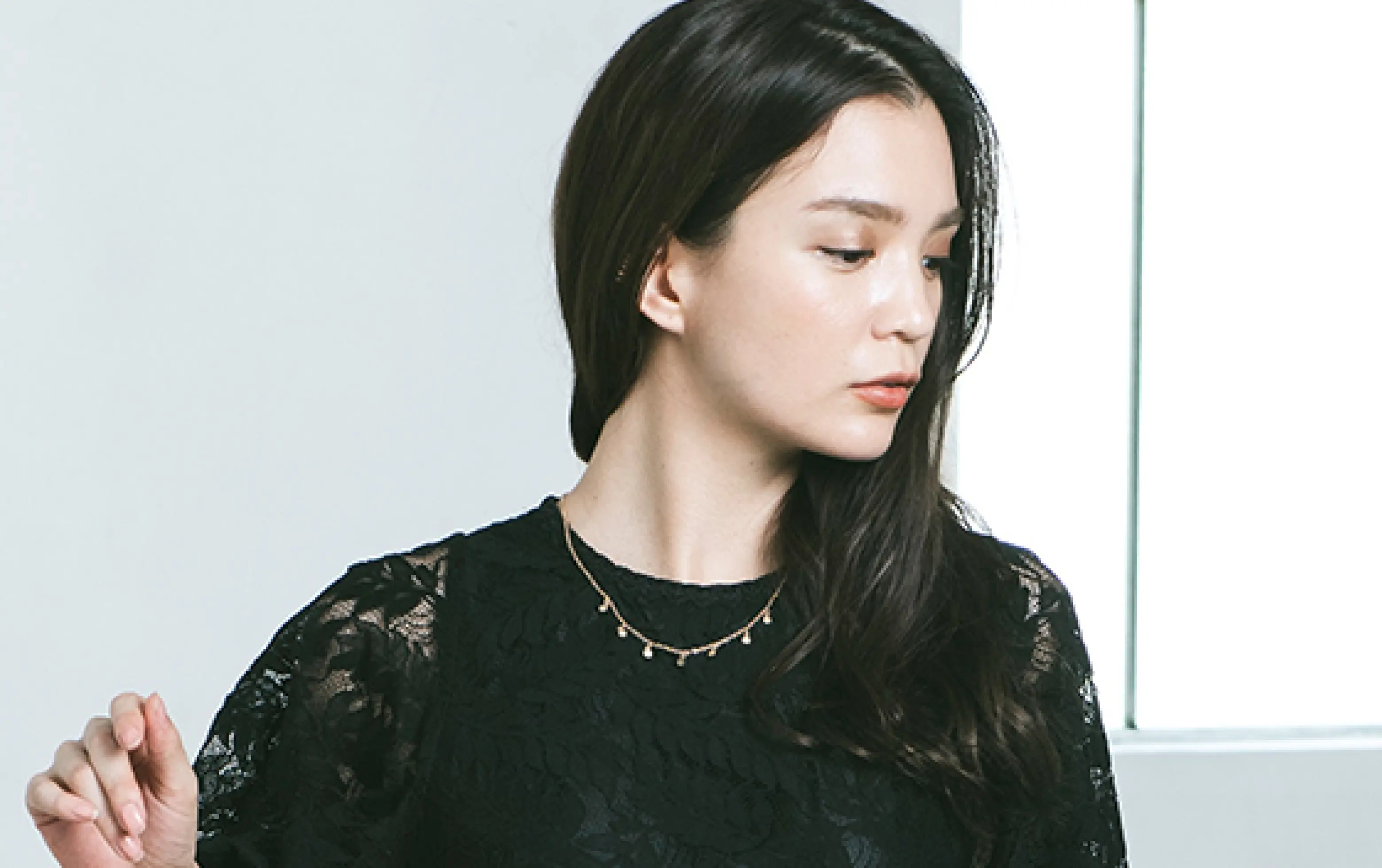 シンプルなブラックコーデは、ともすれば喪服を彷彿とさせることがあります。特に、厳かさよりもお祝いの雰囲気を大切にする結婚式や祝賀会、入学式などで黒一色のコーディネートをする場合、服の素材感やアクセサリー使いに気を配って。同系色のレースをあしらったデザインや、シフォン素材を取り入れたものを選べば華やかに仕上がります。