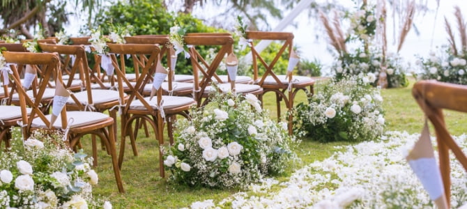 肩の力が抜けたラフな存在感が、カジュアルウエディングにぴったり。