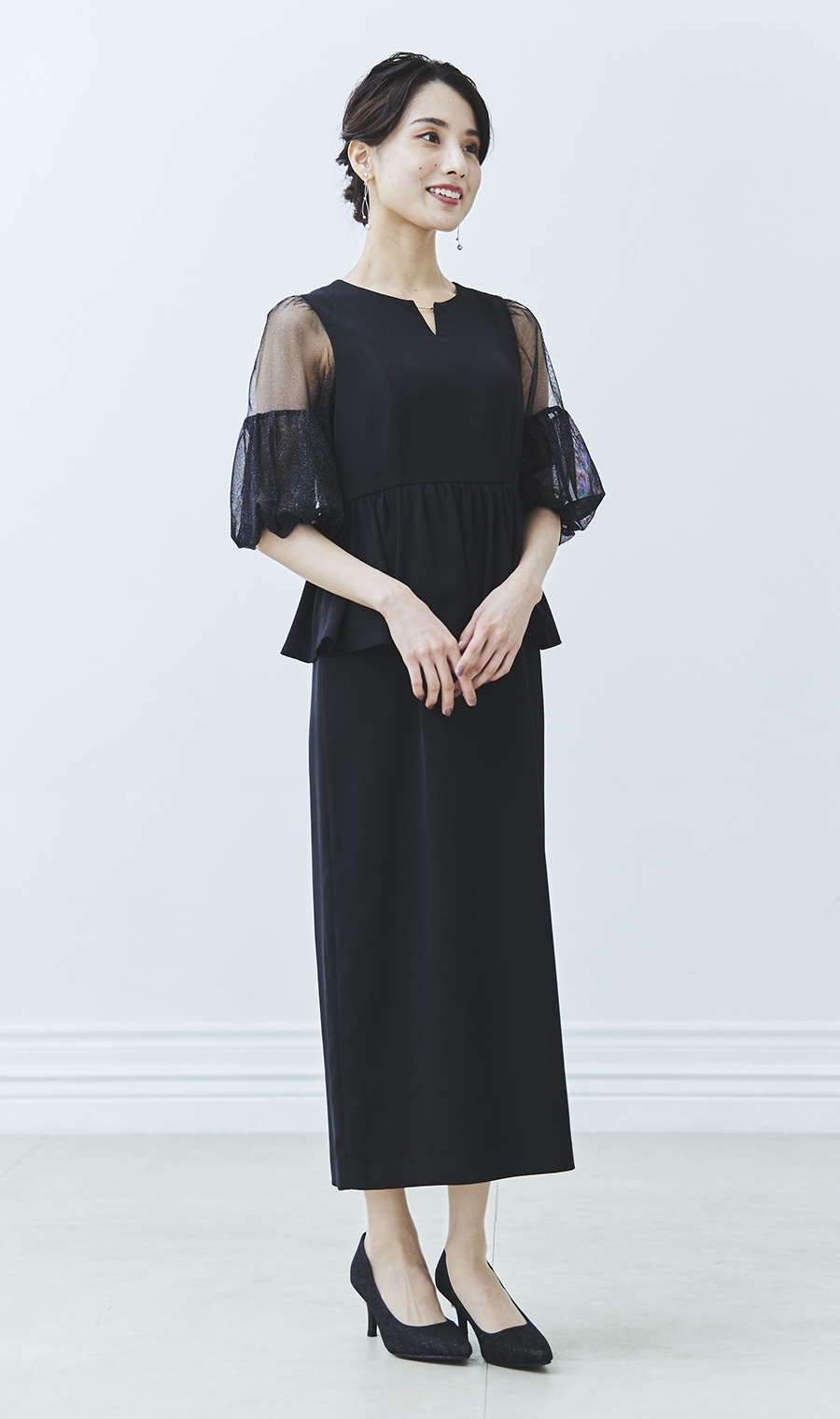 昨今のトレンドディテールである袖ボリュームを程良く取り入れ、ウエスト部分のペプラムデザインとの相性もばっちりです。