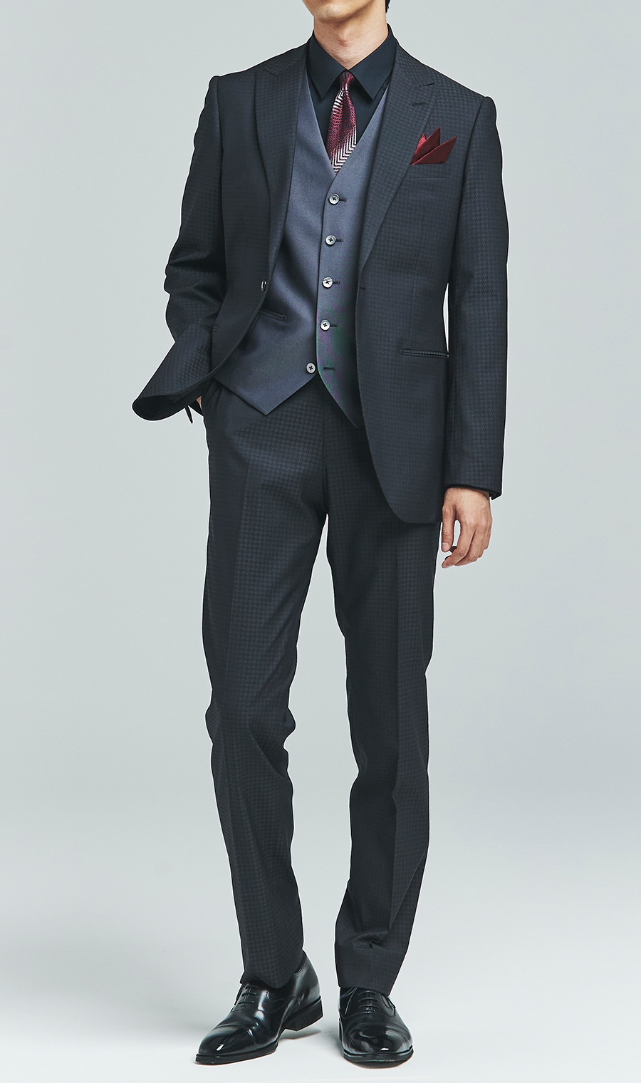 1.スリーピーススーツ(ジャケット・ベスト・スラックス)※スラックスはウエストアジャスター付