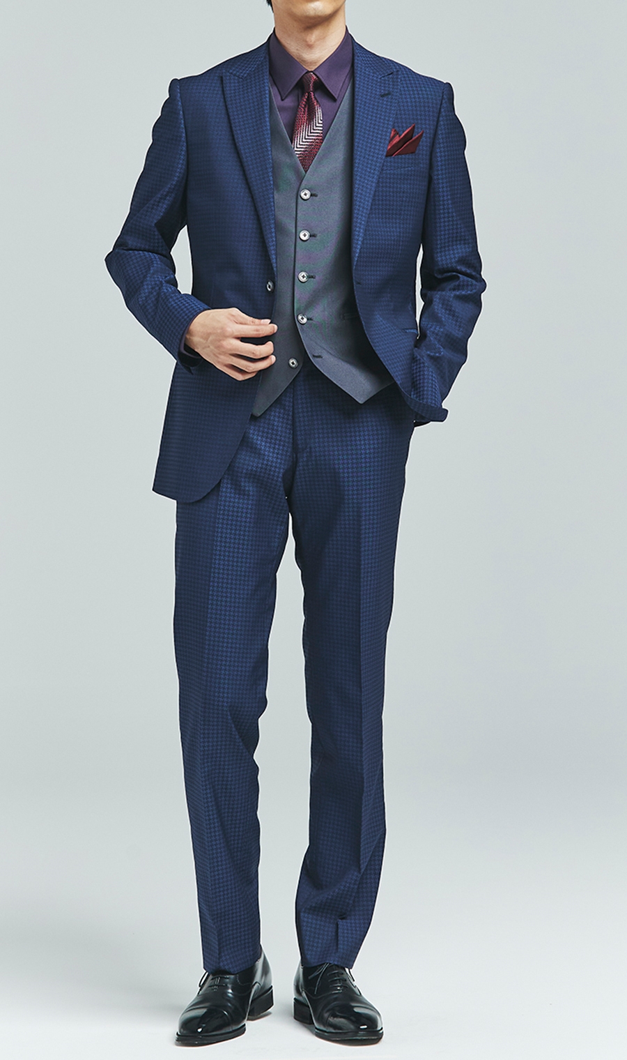 1.スリーピーススーツ(ジャケット・ベスト・スラックス)※スラックスはウエストアジャスター付