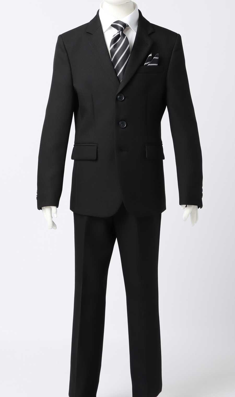 【晴れやかな表情をひときわ彩る特別な装い】重厚感のあるヘリンボーン生地はやや光沢があり、黒や紺などのダークな色味が上品に仕上がります。清潔感のある白シャツにネクタイはスタンダードなレジメンタル柄でかっこいい雰囲気も演出します。【主な着用シーン】入学式、卒業式、七五三、結婚式、発表会などで着用します。【サイズスペック】[140]ジャケット 着丈:55㎝ 胸囲:83.8㎝ 肩幅:35.5㎝ 袖丈:51.3㎝ シャツ 着丈:59㎝ 胸囲:86㎝ 肩幅:36.5㎝ 袖丈:50㎝ パンツ ウエスト:70㎝ ヒップ:81.3㎝ 股下:64㎝[150]ジャケット 着丈:59㎝ 胸囲:89.2㎝ 肩幅:37.5㎝ 袖丈:54.3㎝ シャツ 着丈:63㎝ 胸囲:89㎝ 肩幅:38.5㎝ 袖丈:53㎝ パンツ ウエスト:76㎝ ヒップ:87.4㎝ 股下:68㎝こちらの商品の股下は既定の長さで仕上がっております。【セット内容】1.ツーピーススーツ(ジャケット・パンツ)※パンツはウエストアジャスター仕様2.シャツ・ワンタッチネクタイ ※チーフはポケット縫い付けとなっております シューズ・ソックスは付属しておりません。※モニター・パソコン環境により色味に誤差が生じる場合がございます。「この商品をレンタルする」ボタンを押して頂き、オプションを選択して下さい。※オプション品の在庫がない場合は表示されません。