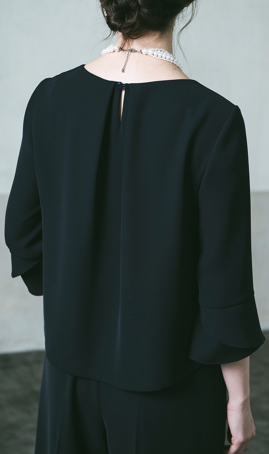 前後差のあるロングテールデザインが目を引く、丈短めのブラウス。