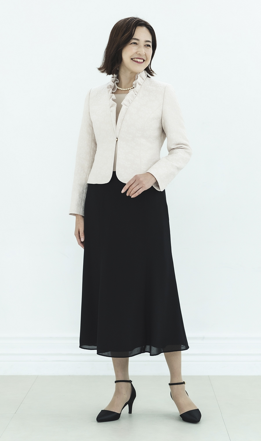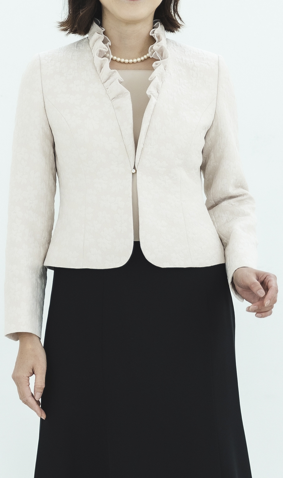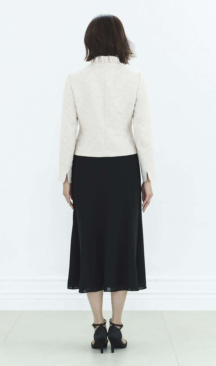 華やかなフリル衿のジャケットとマーメイドフレアースカートの2点セット