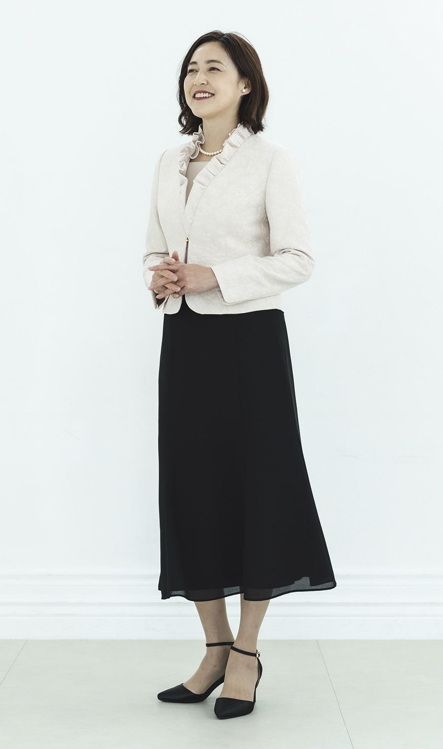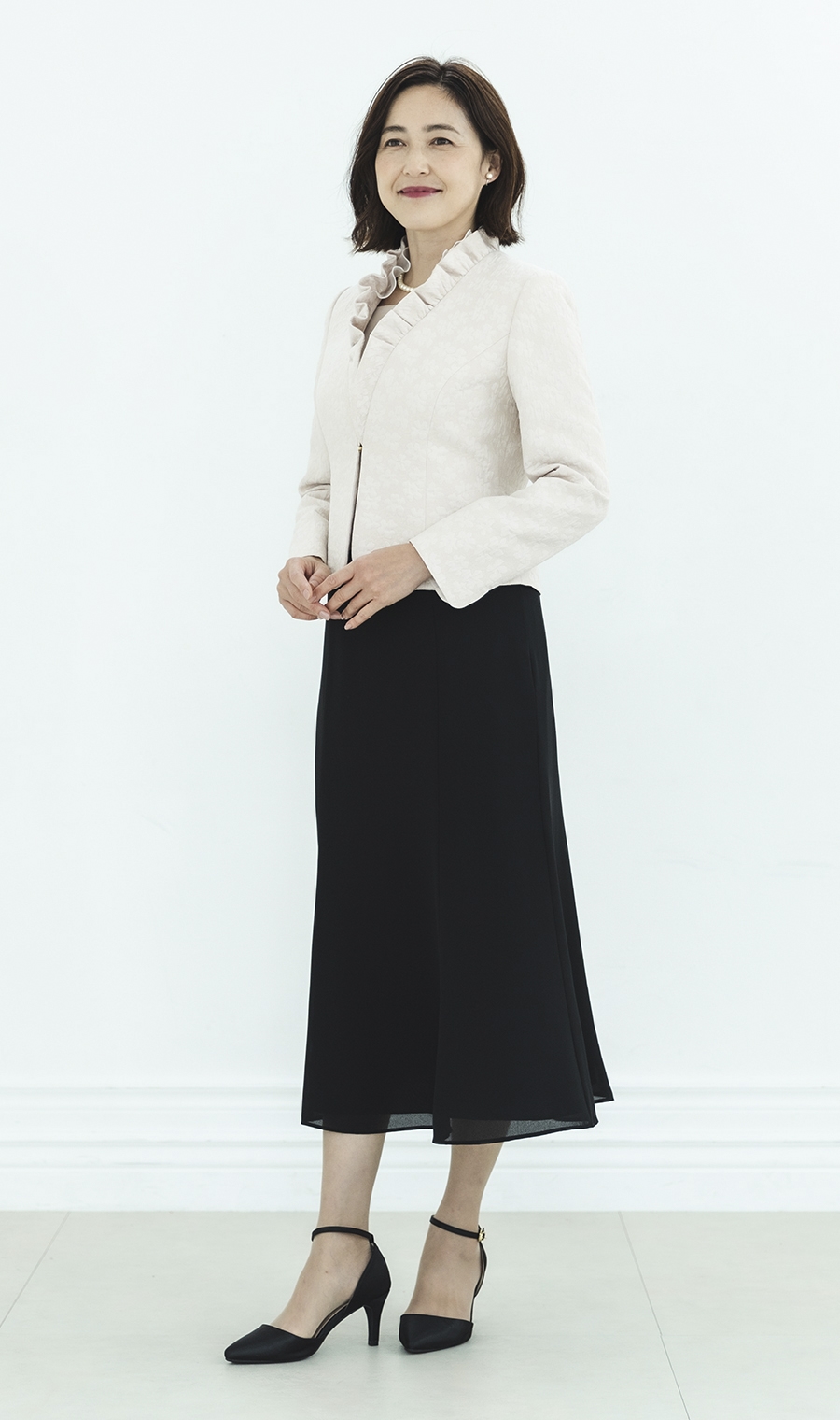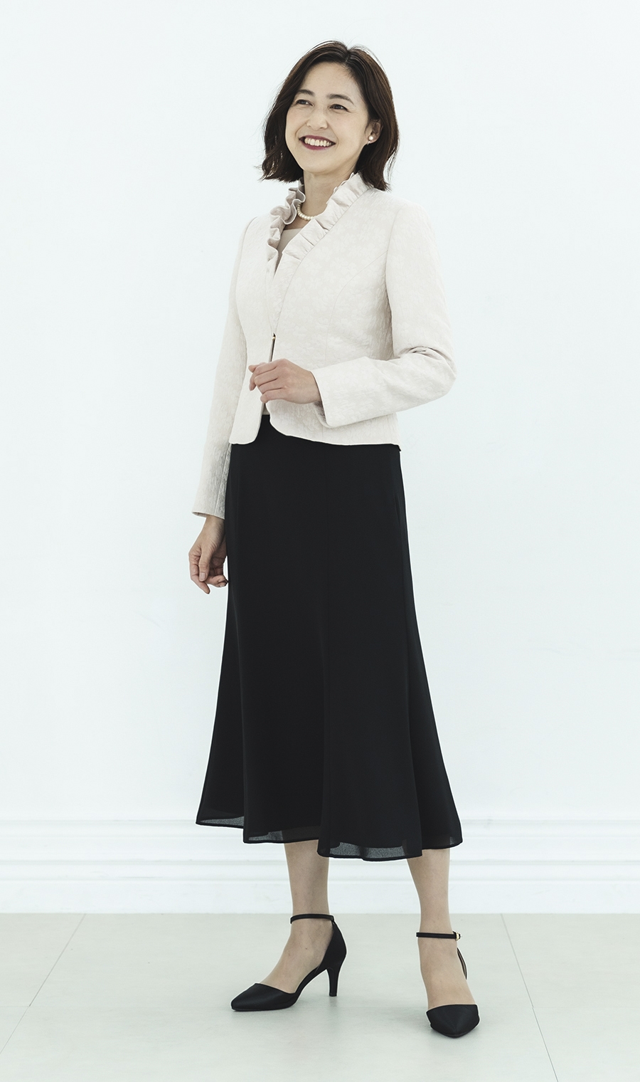 華やかなフリル衿のジャケットとマーメイドフレアースカートの2点セット