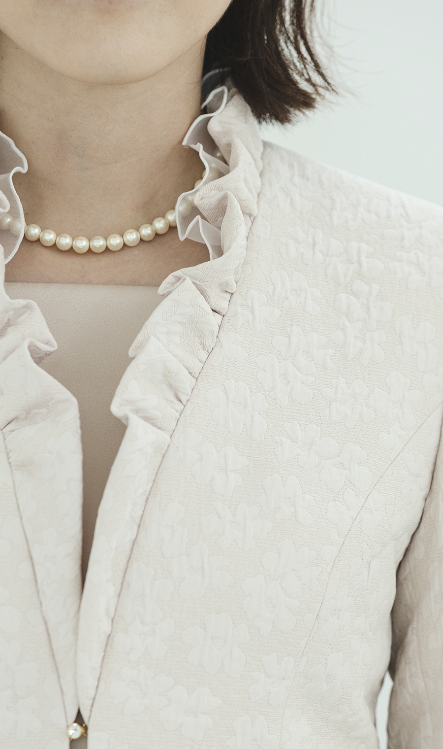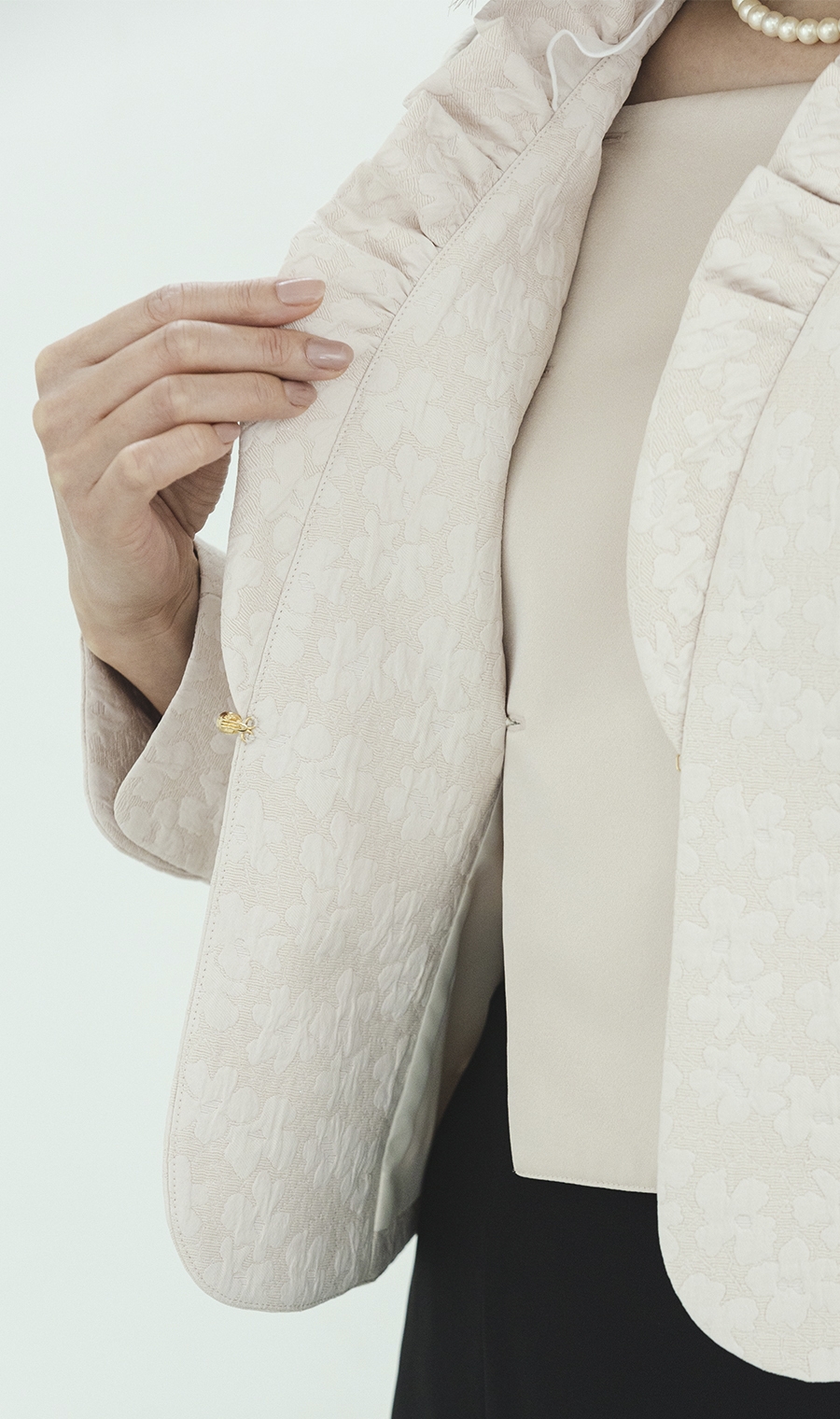 ジャケットの素材は刺し子のように柄が浮き上がって見える上質なマトラッセを使用