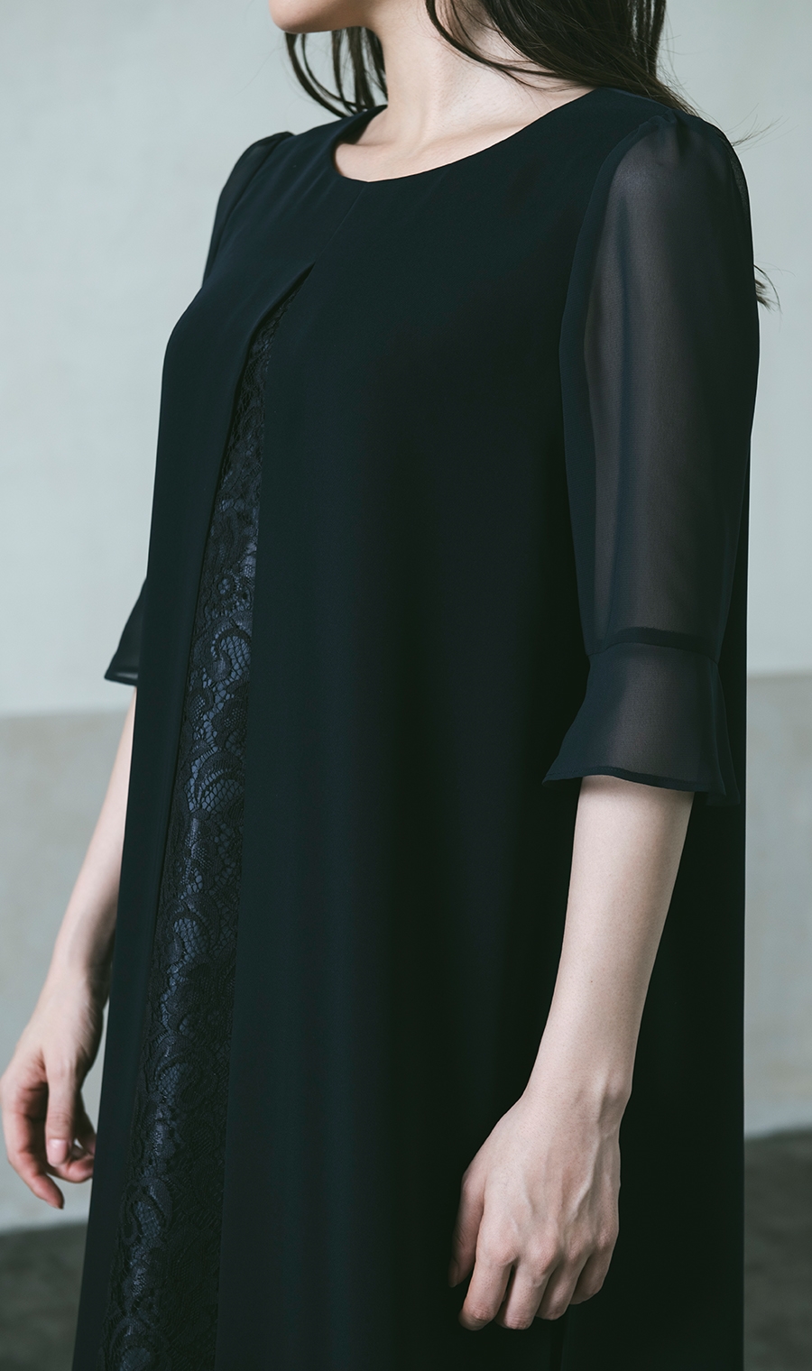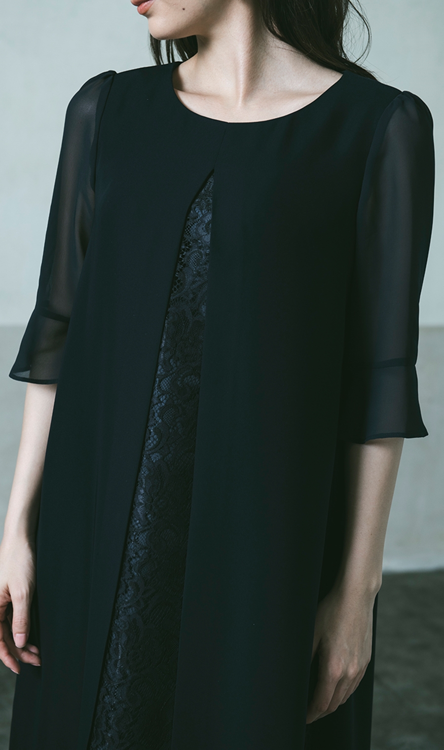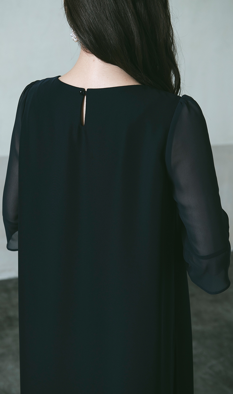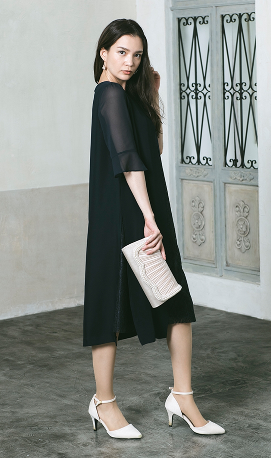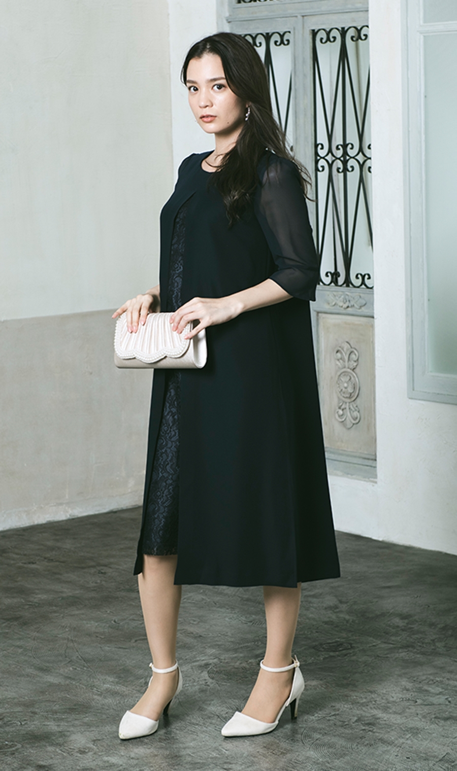 きれいめツイルのオーバー身頃を合わせた上品なドレス。