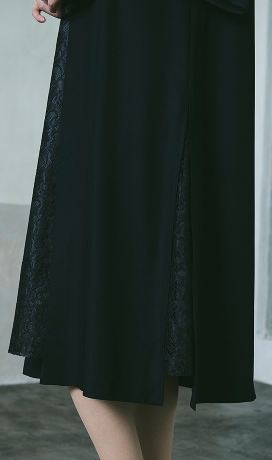 歩くたびに中のレースがさりげなく覗き、動きに表情を添えます。