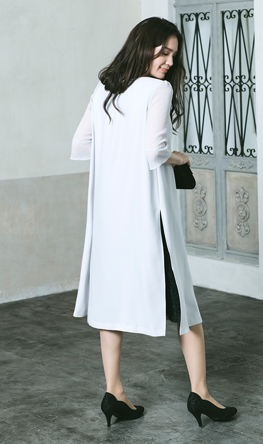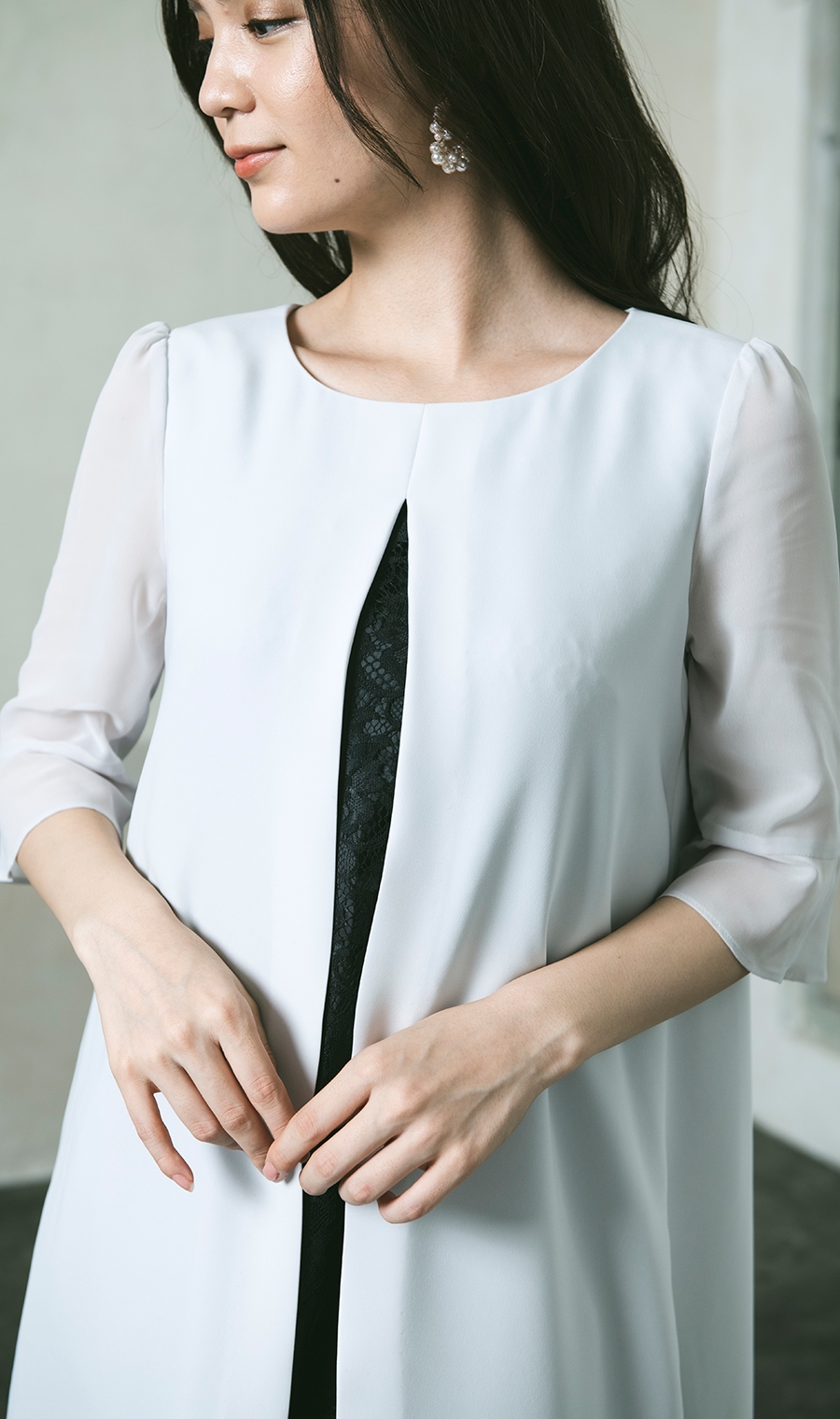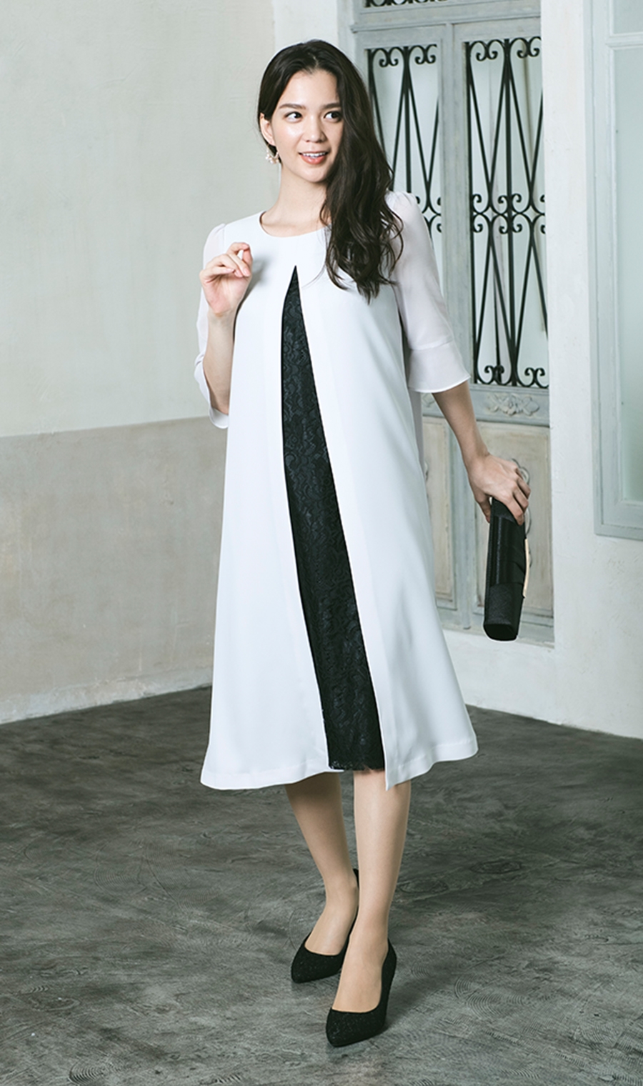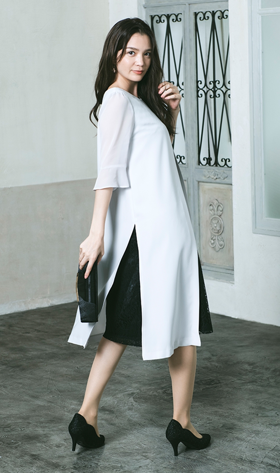 きれいめツイルのオーバー身頃を合わせた上品なドレス。