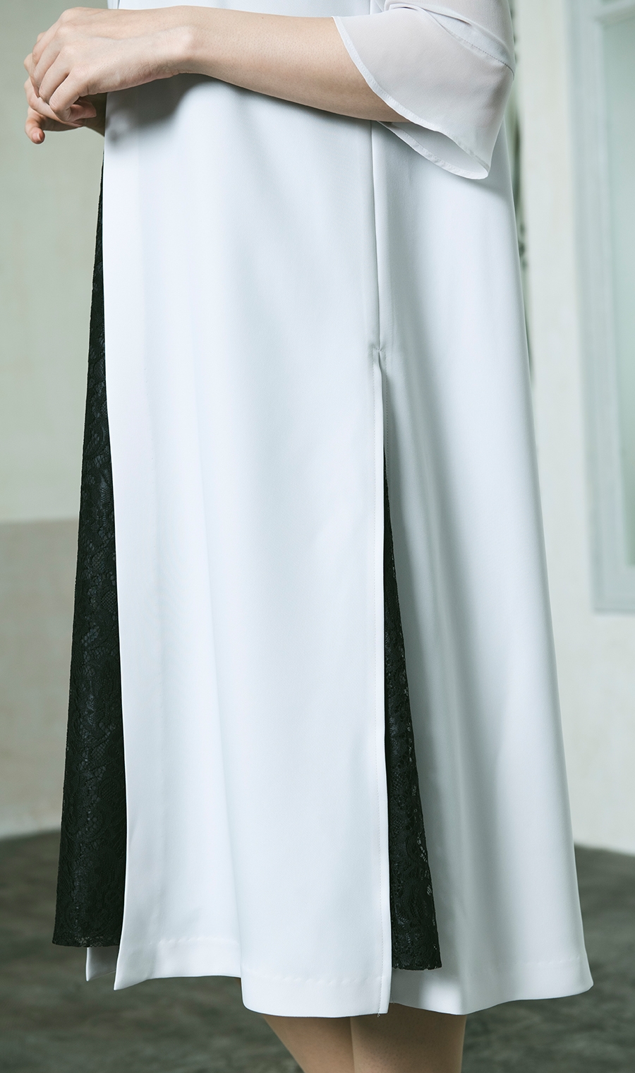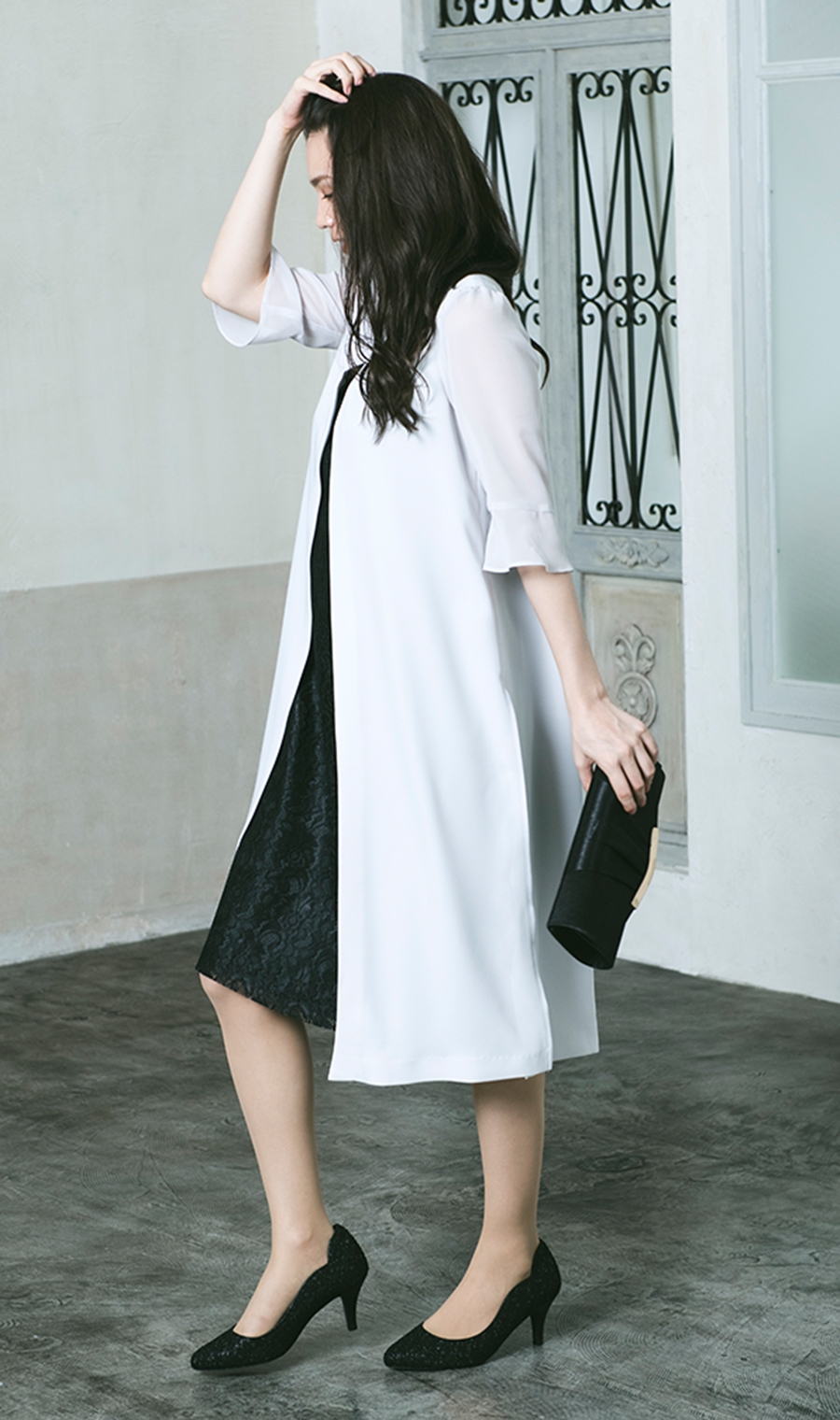 歩くたびに中のレースがさりげなく覗き、動きに表情を添えます。