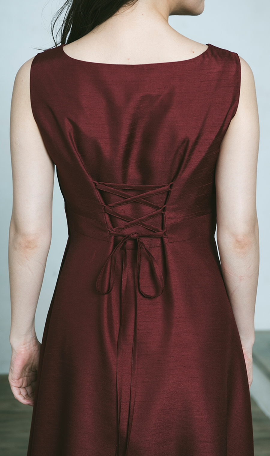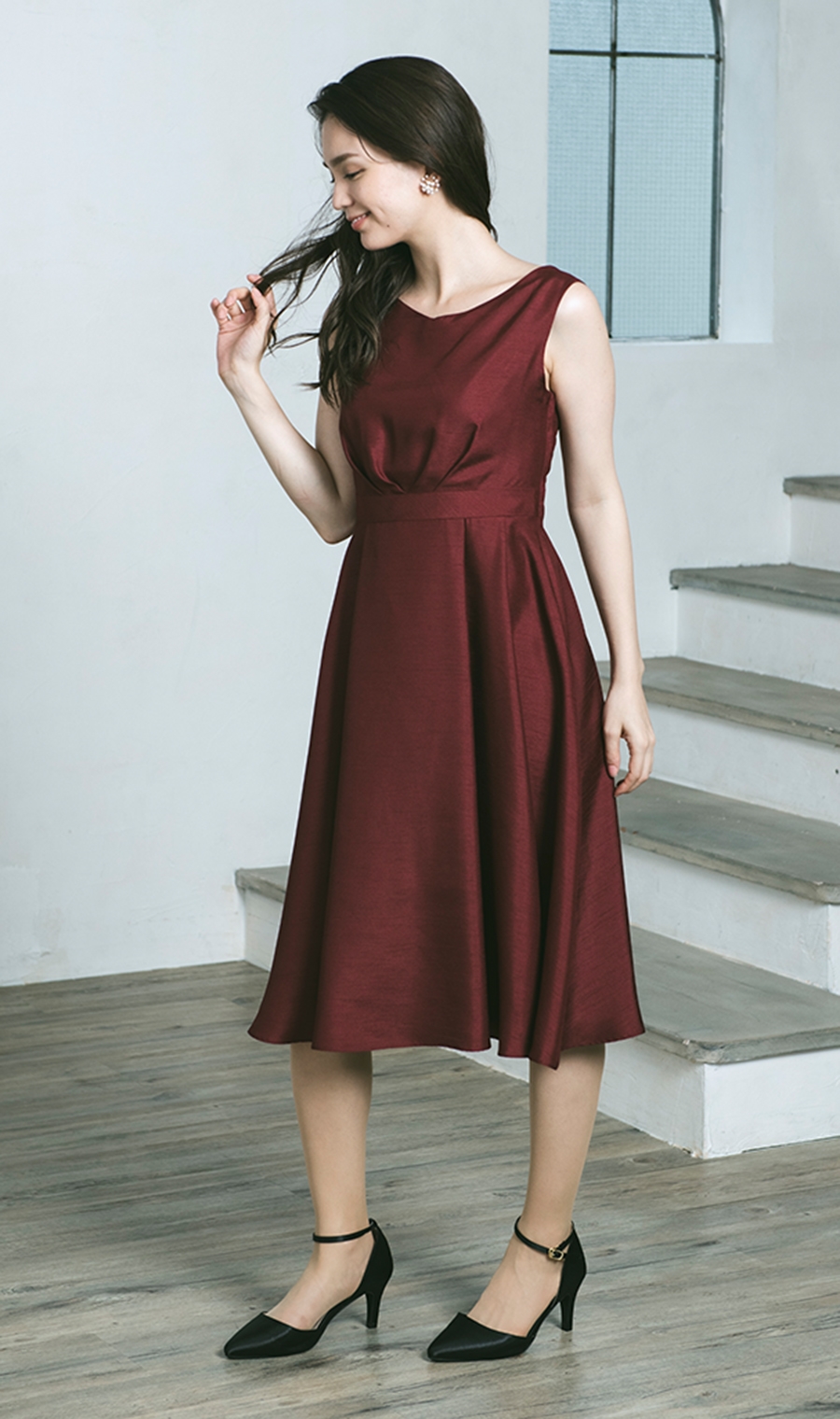 スカートはギャザーも入っていて結構ふんわりしているので可愛らしい印象のドレスです。丈はひざ下くらいでちょうどいい。