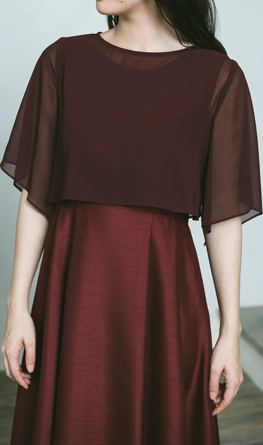 ボレロを合わせれば半袖風に、外せばノースリーブとして、