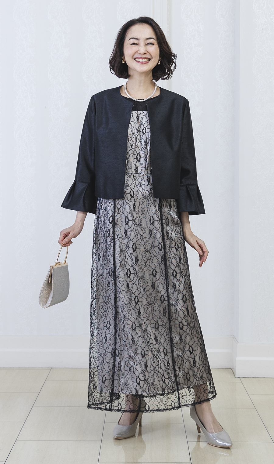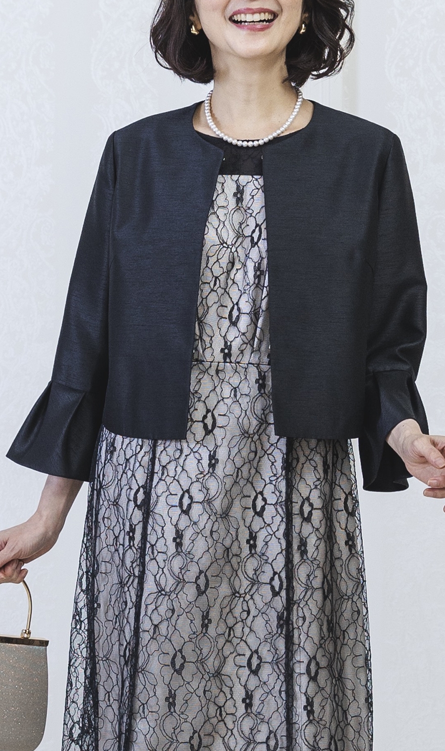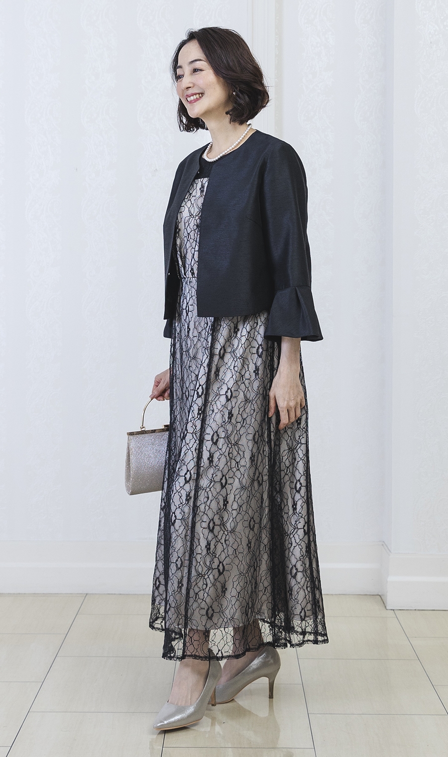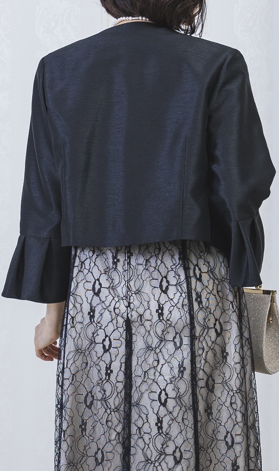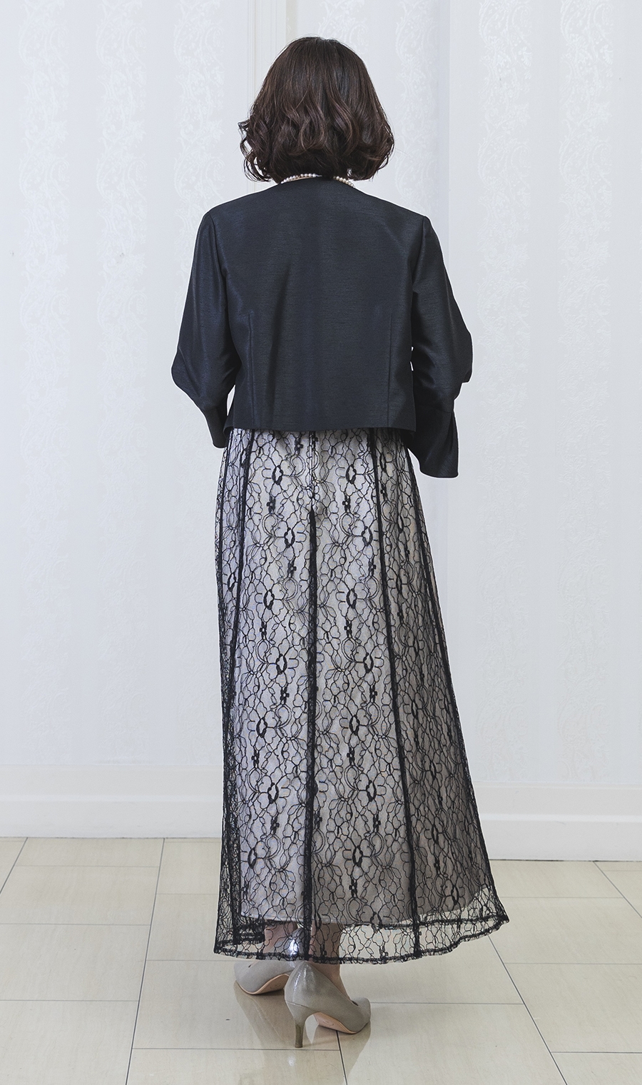 光沢デザインジャケット+ラッセルレースロングドレスセット