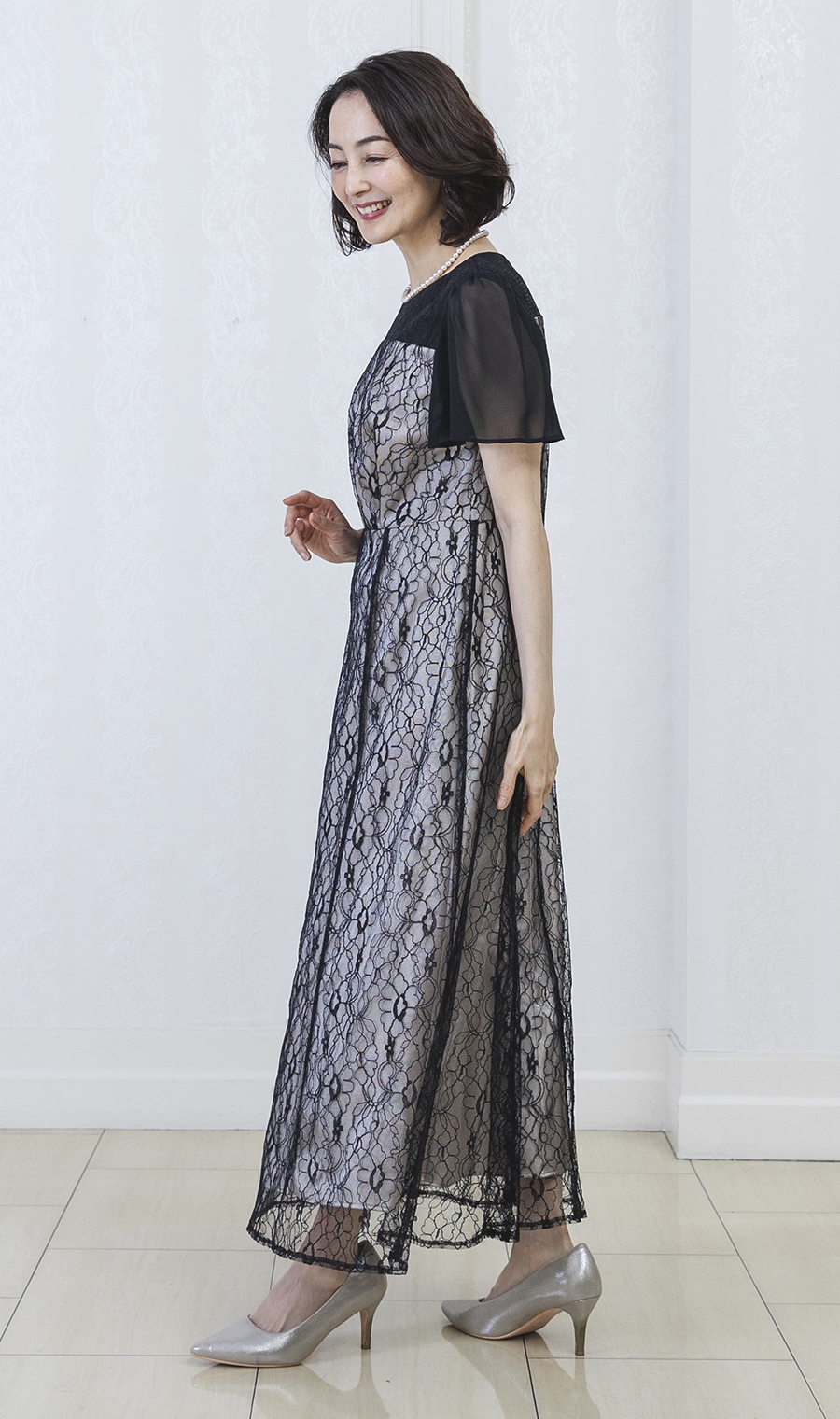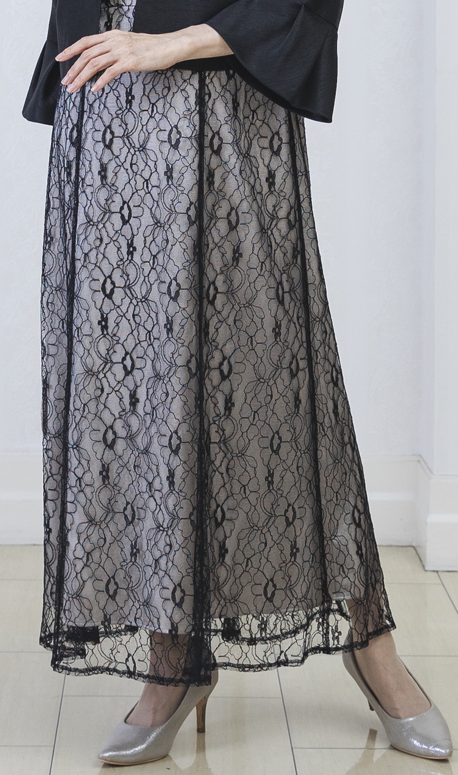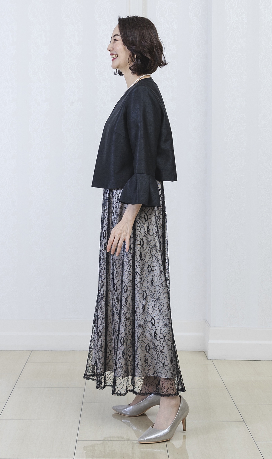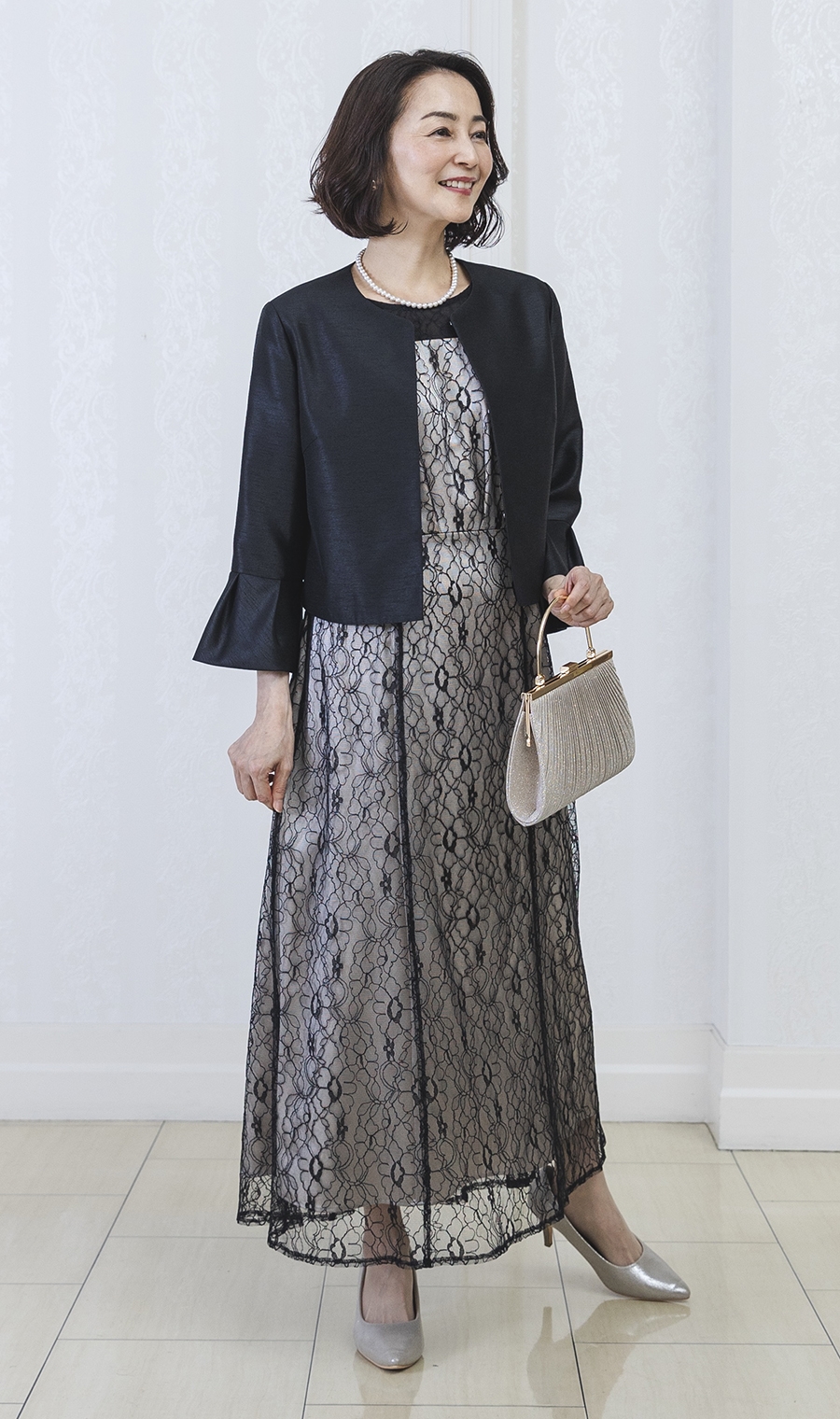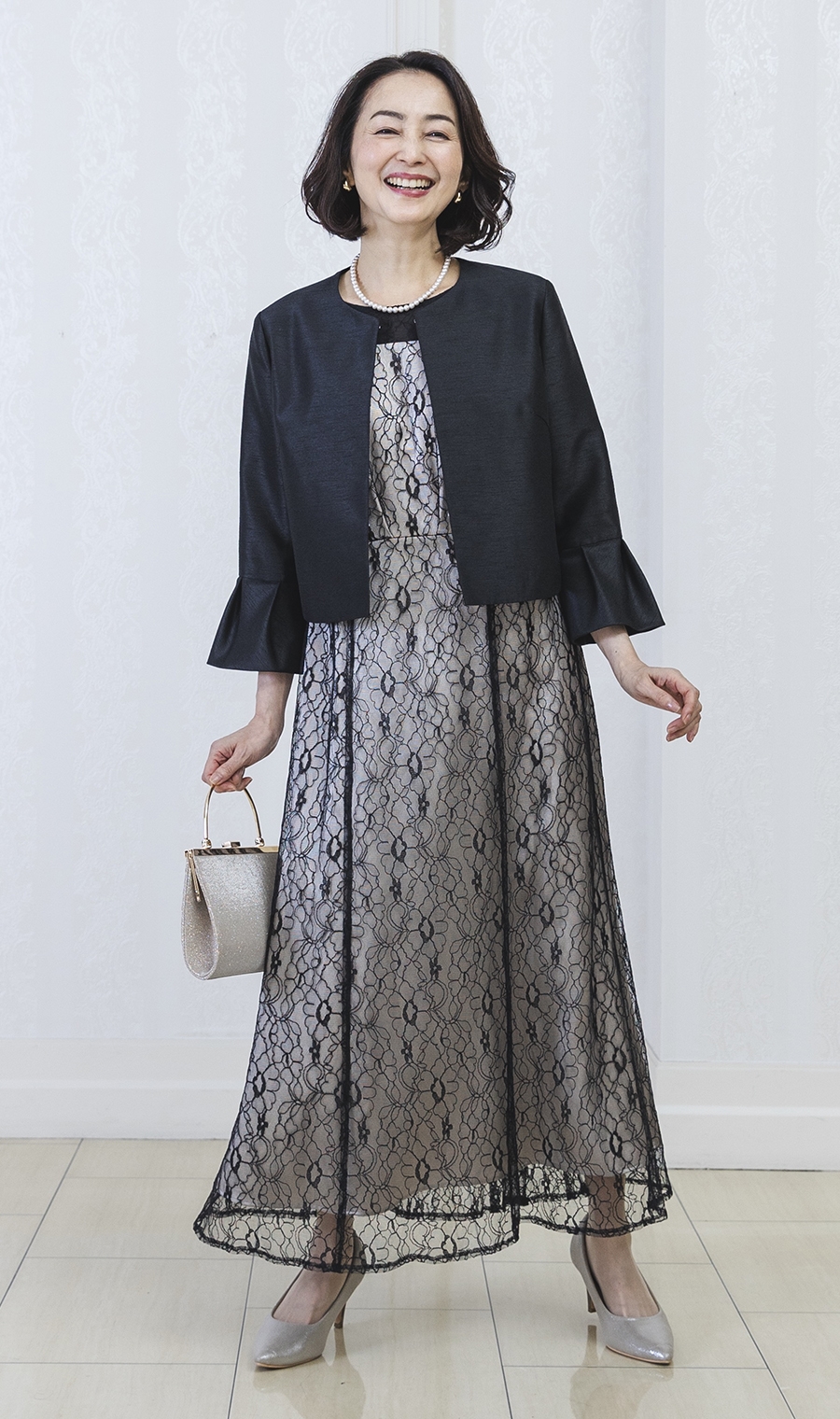 光沢デザインジャケット+ラッセルレースロングドレスセット