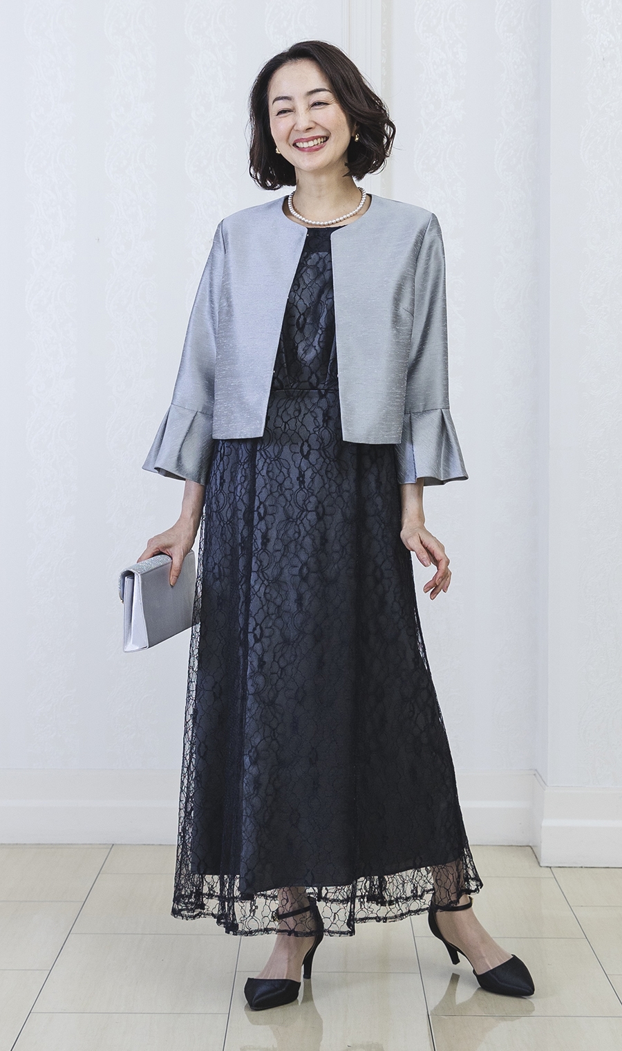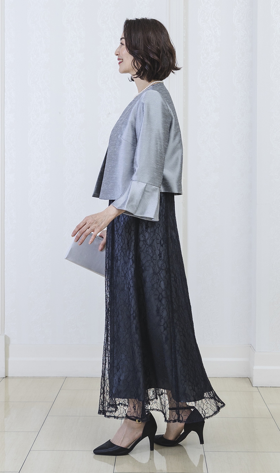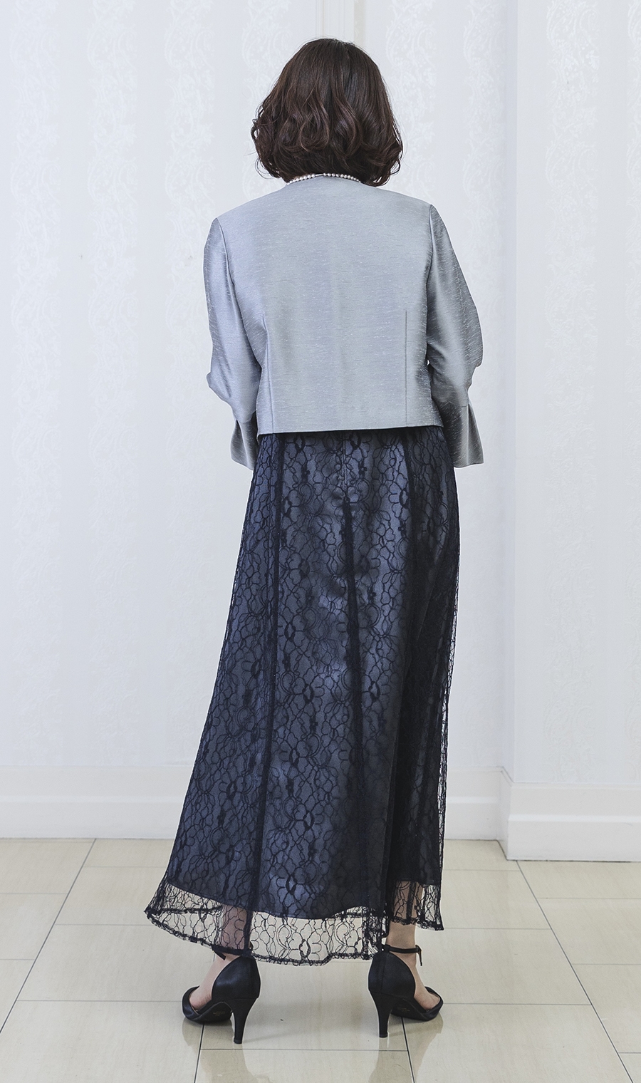 光沢デザインジャケット+ラッセルレースロングドレスセット