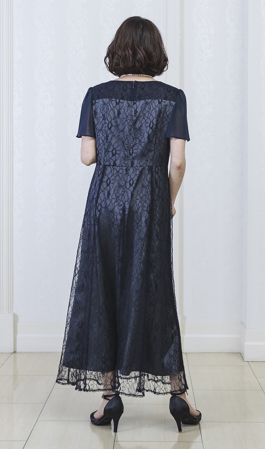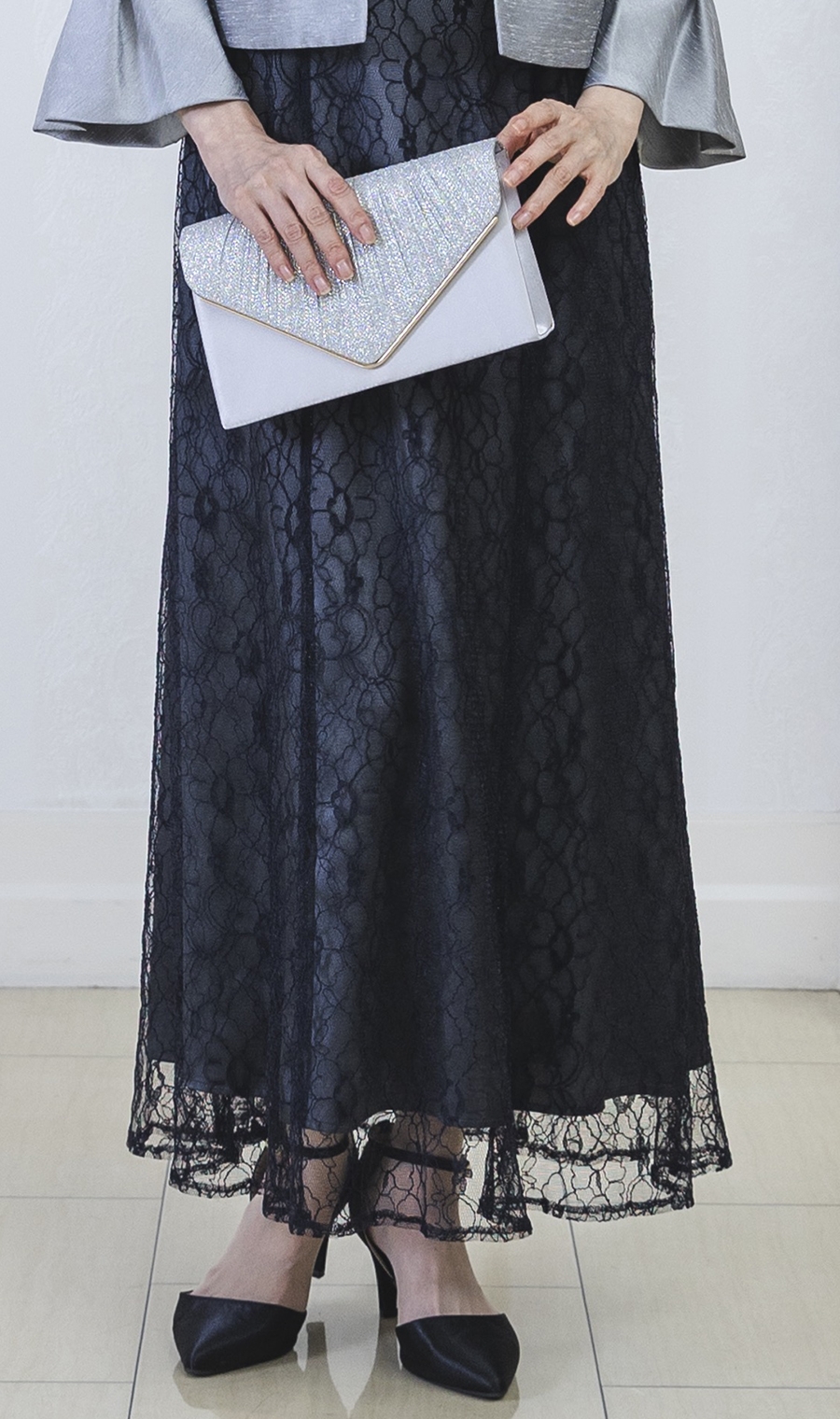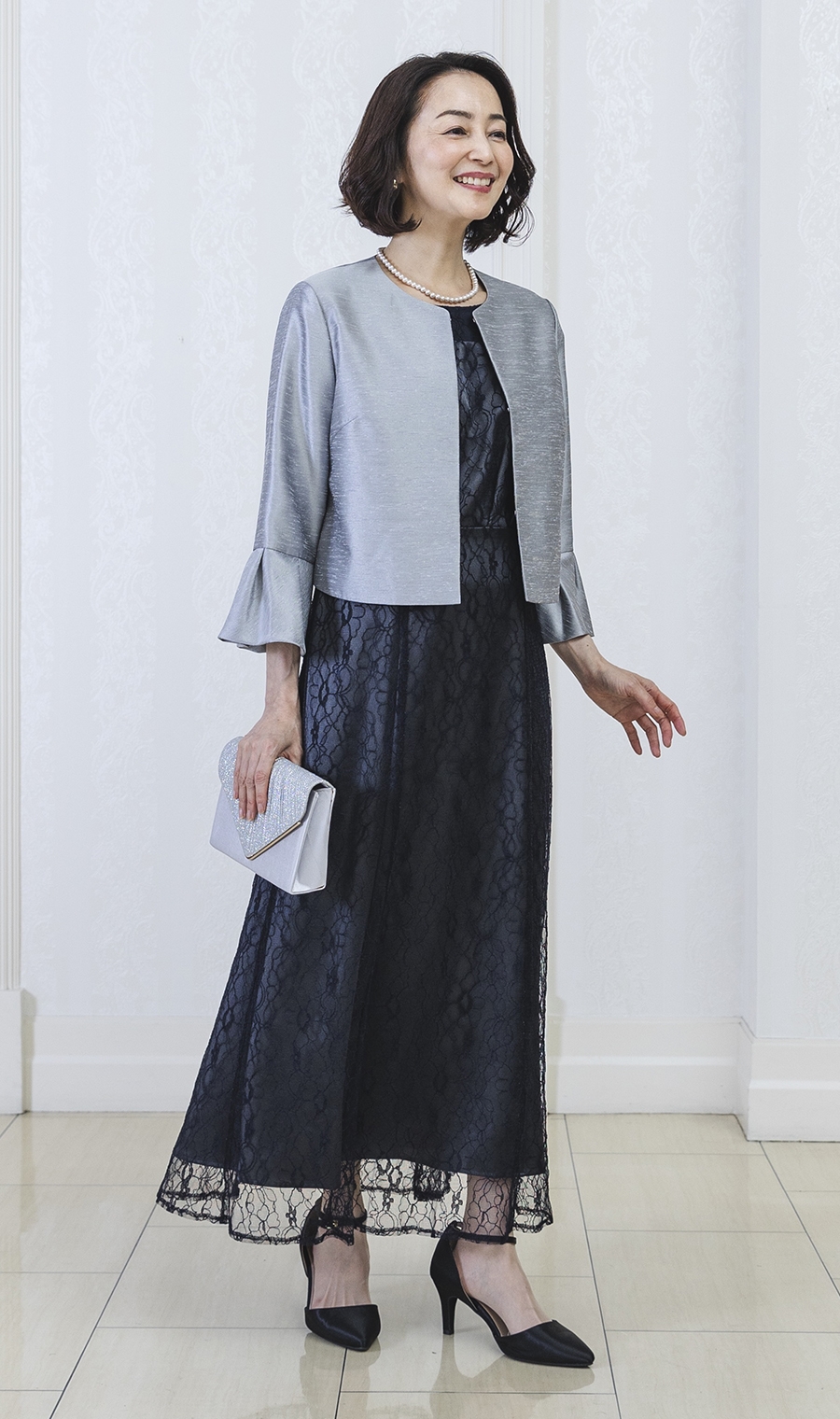 光沢デザインジャケット+ラッセルレースロングドレスセット