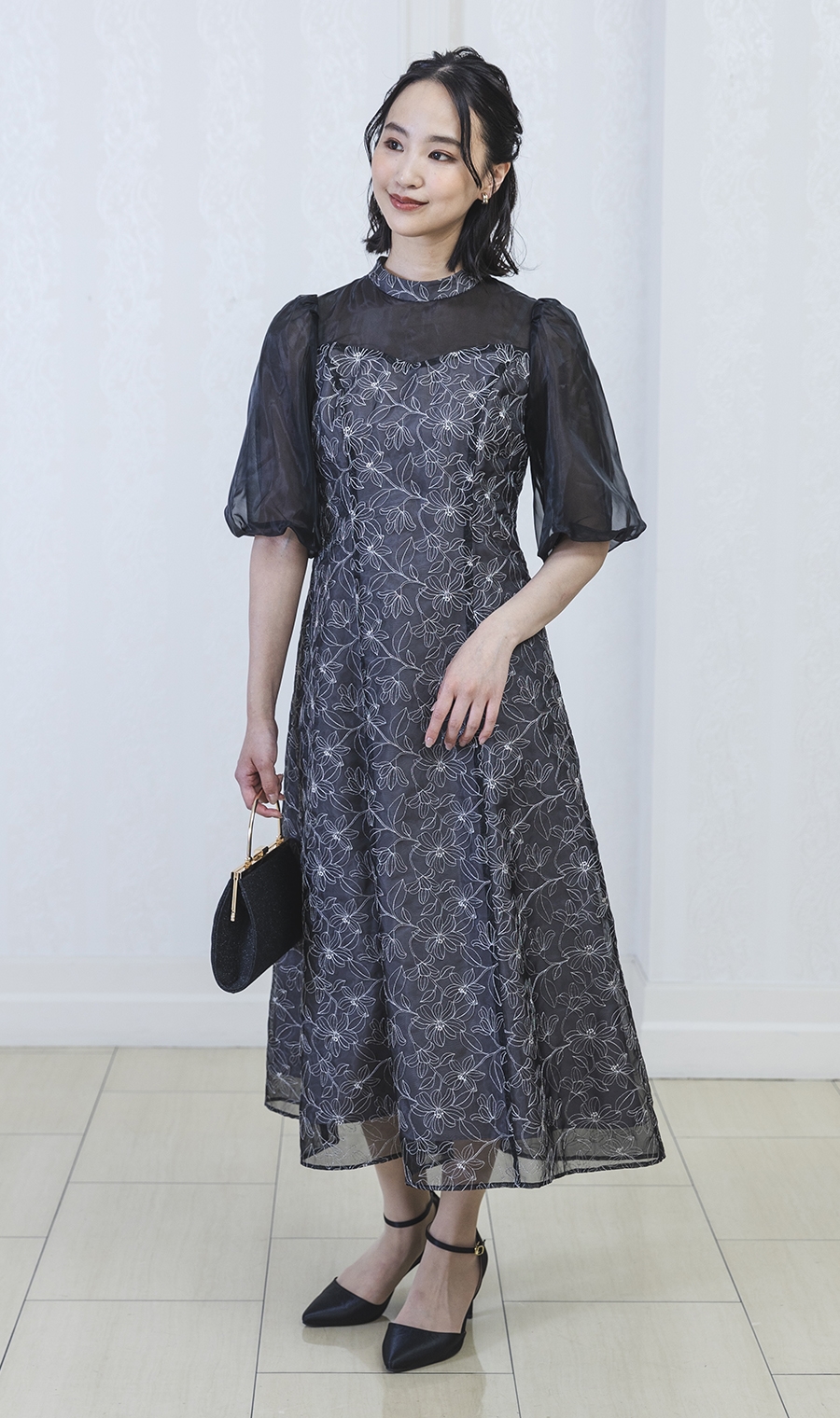 【オーガンジーラメ刺繍ワンピース】