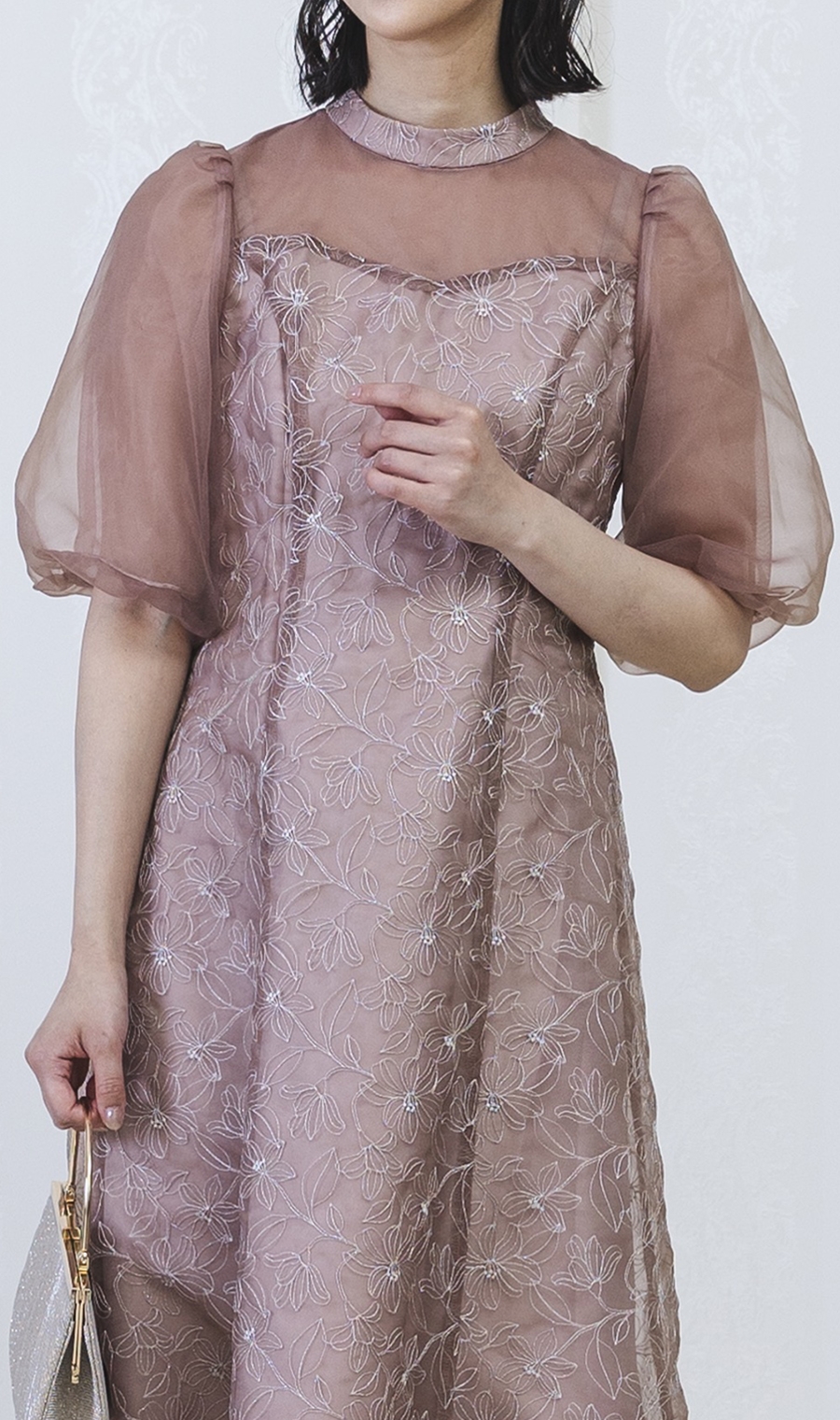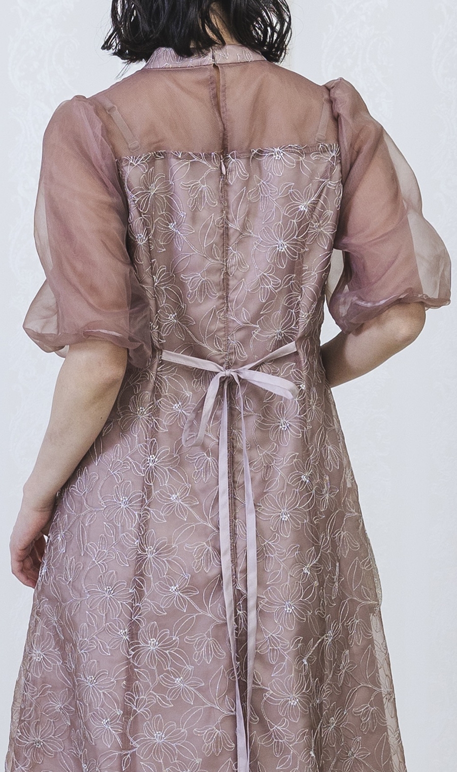 透け感のあるオーガンジー生地にラメ糸で刺繍しました。