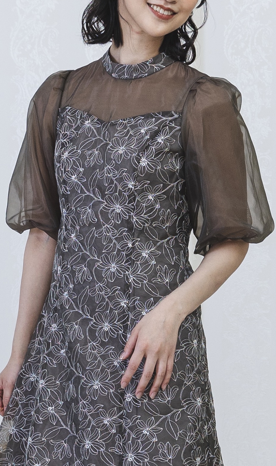 【オーガンジーラメ刺繍ワンピース】