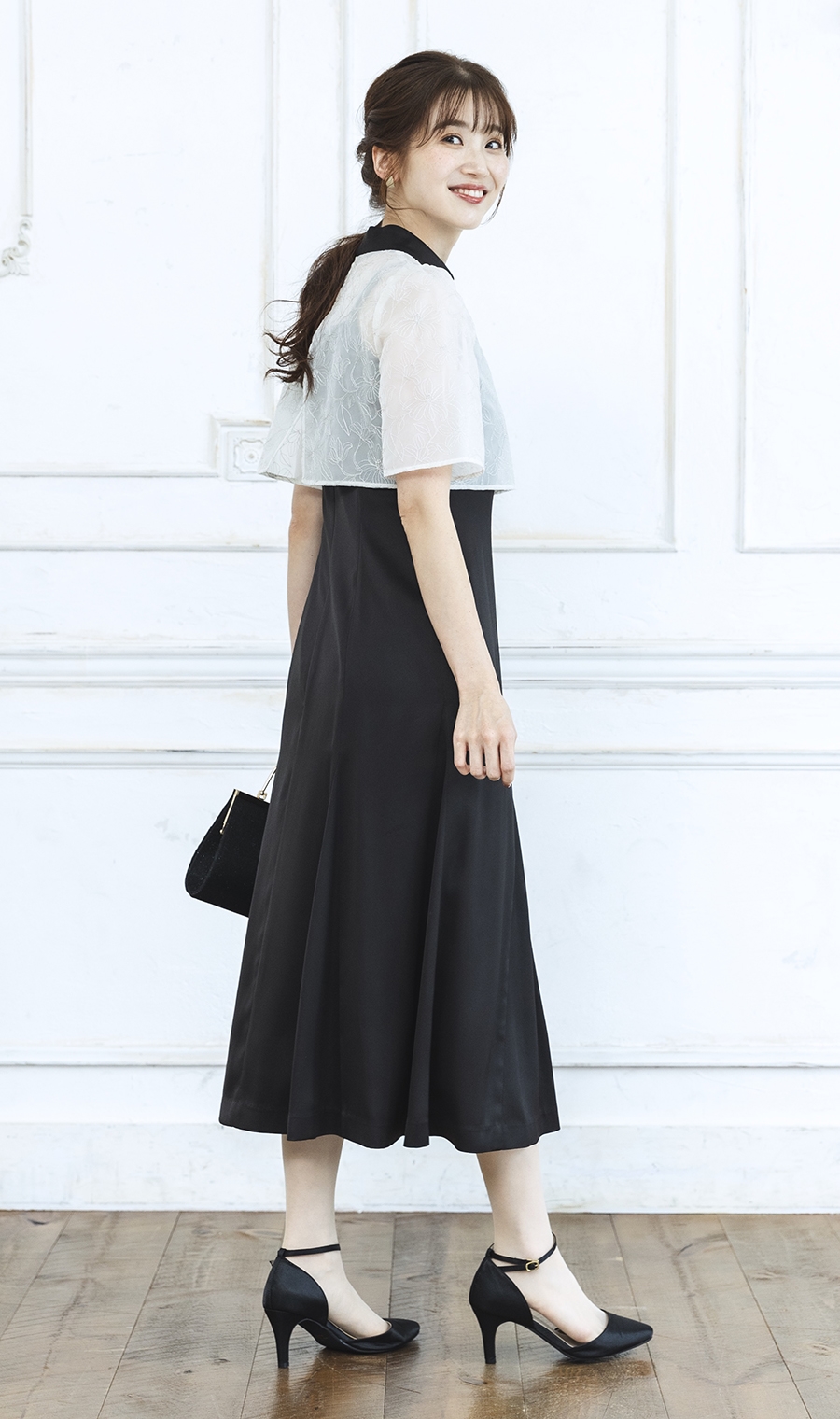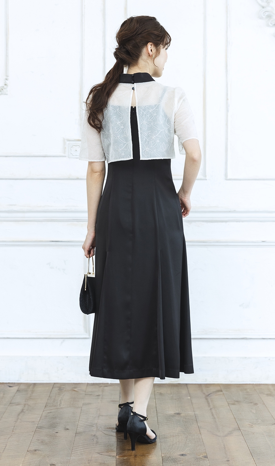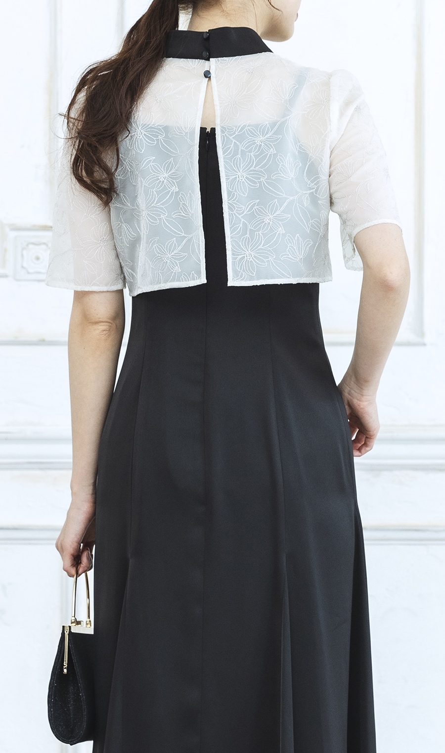 【刺繍レースケープコンビドレス】