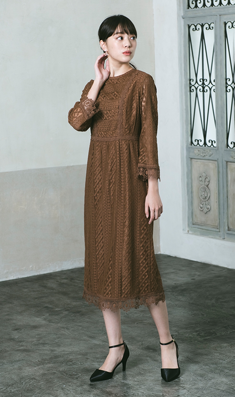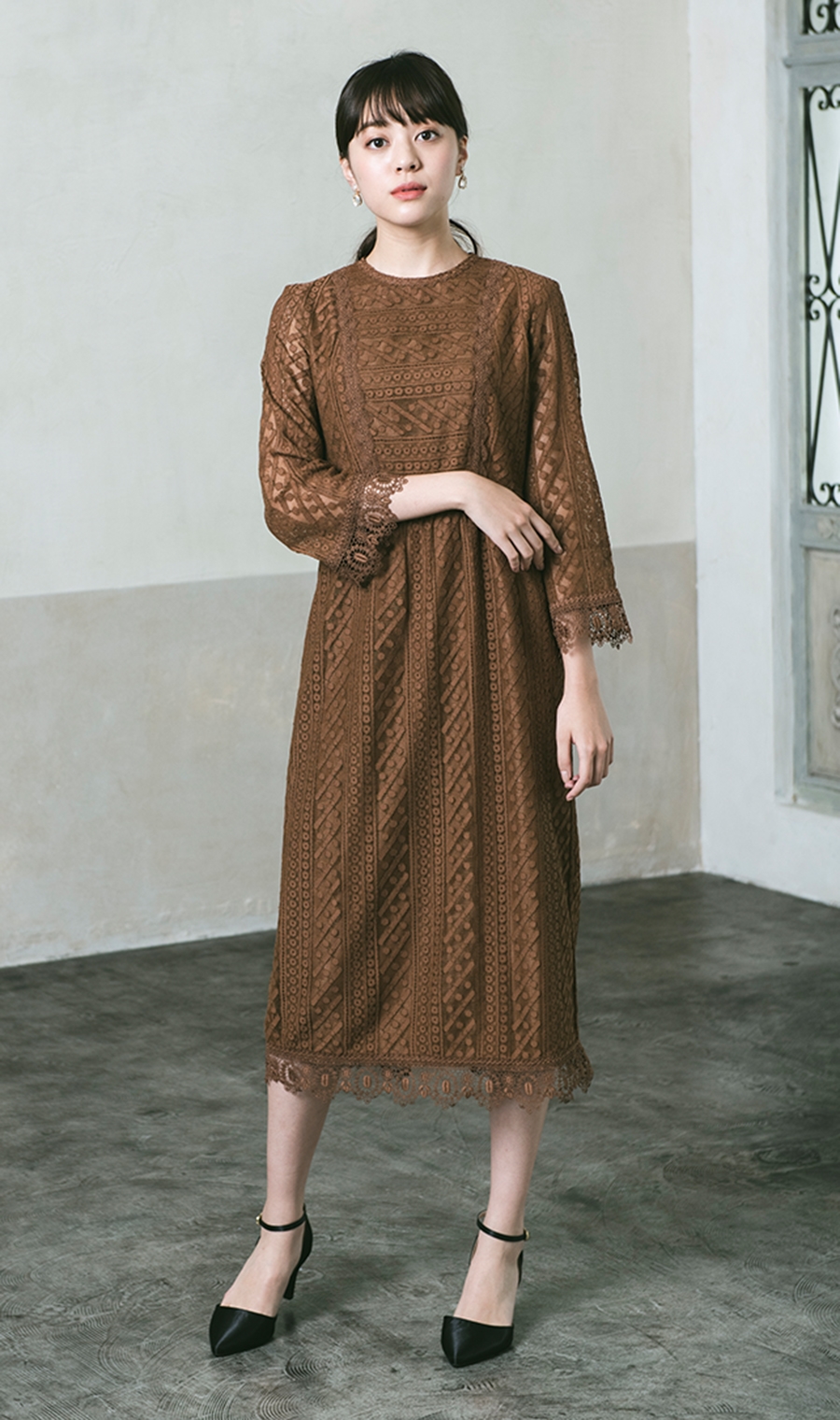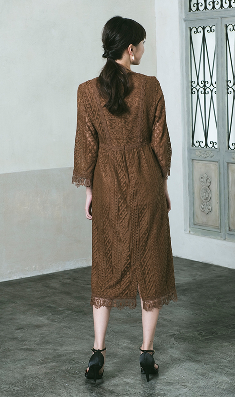 3種類のレーステープを贅沢に使用したIラインドレス。