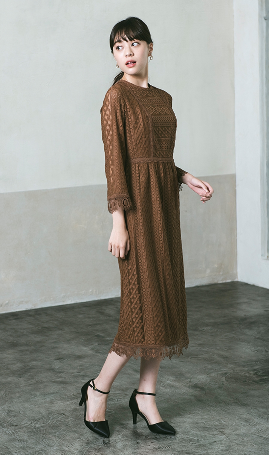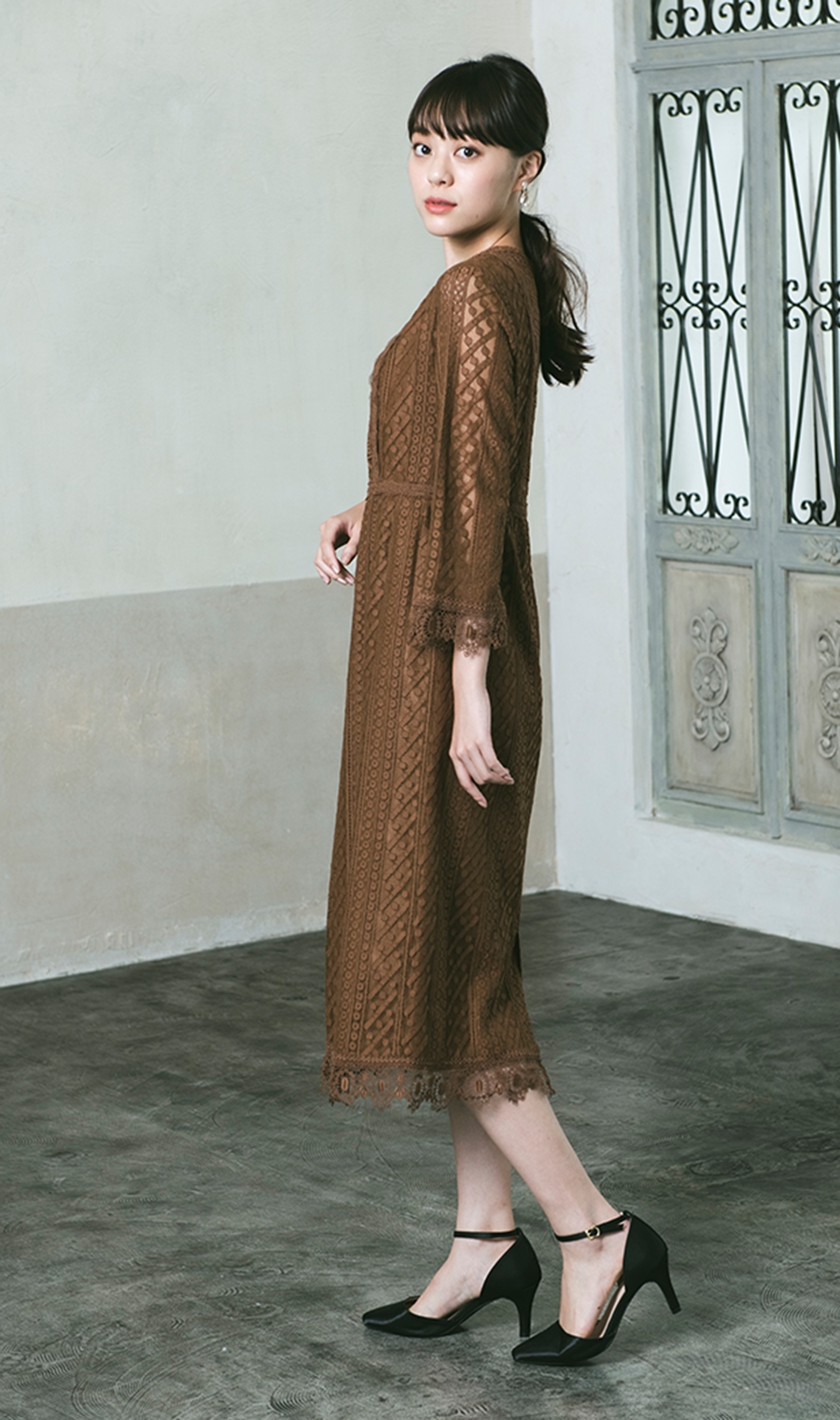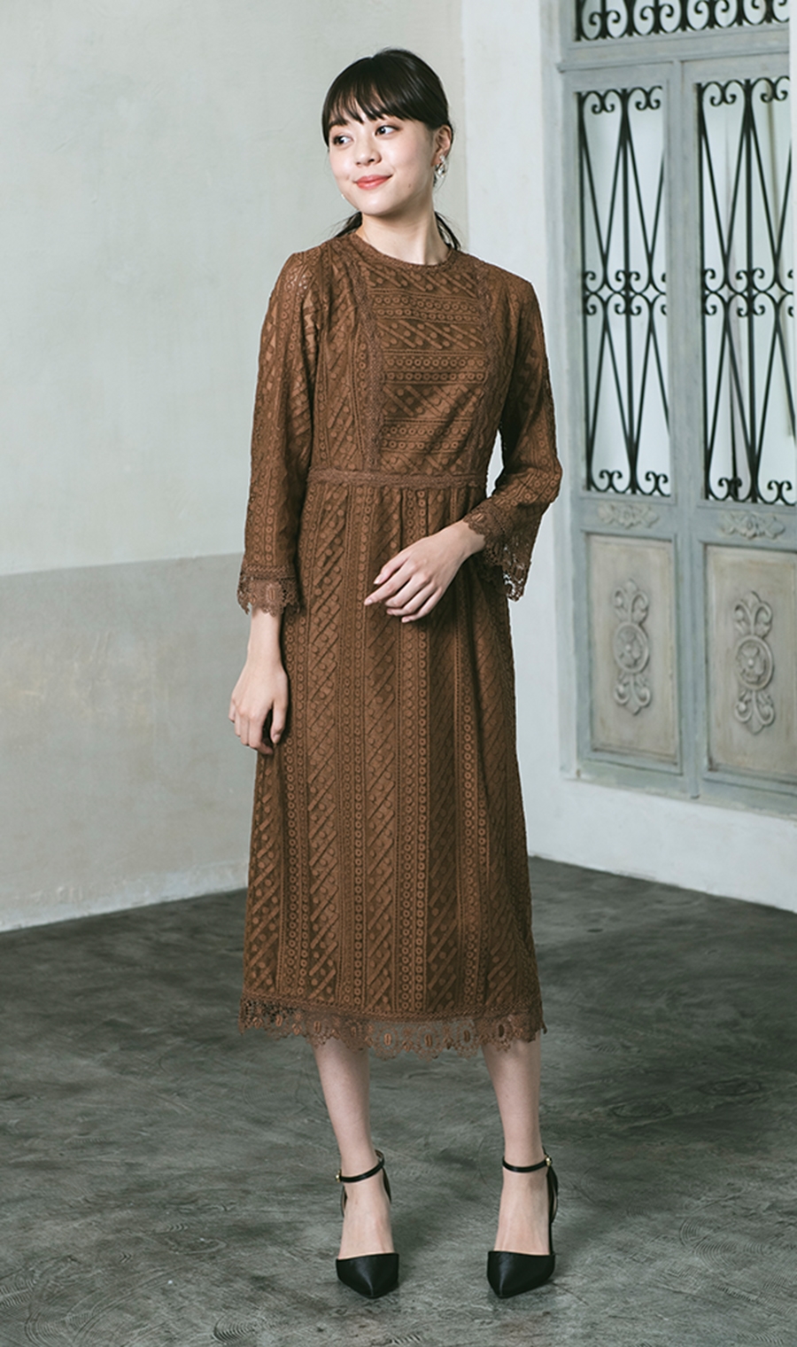 3種類のレーステープを贅沢に使用したIラインドレス。