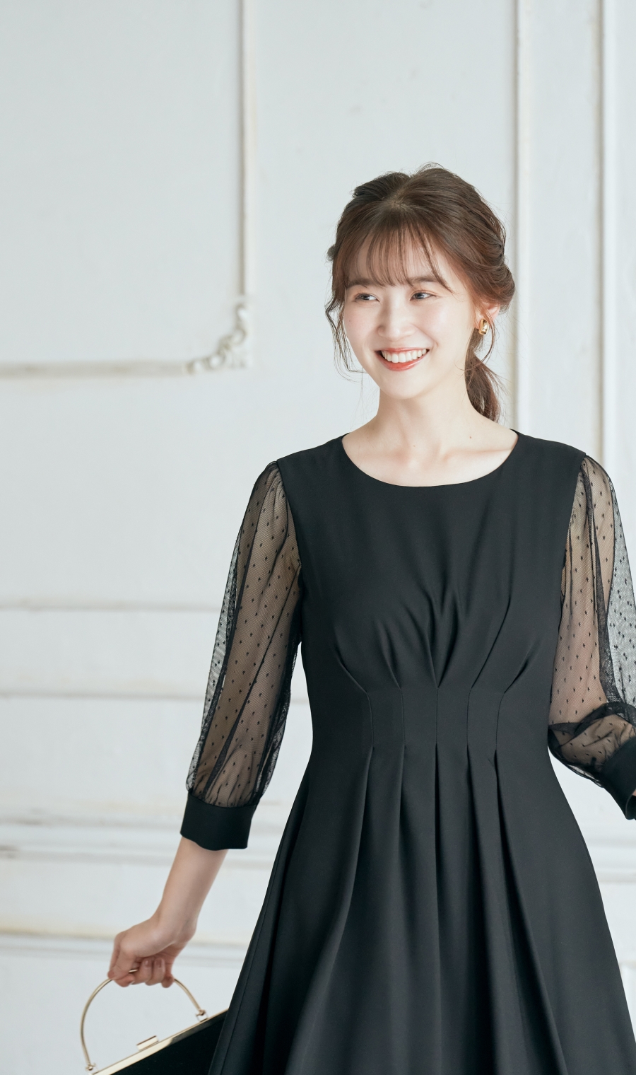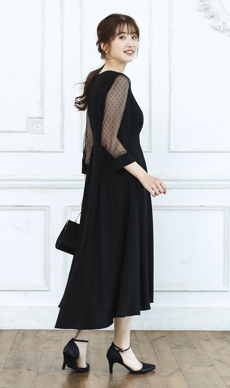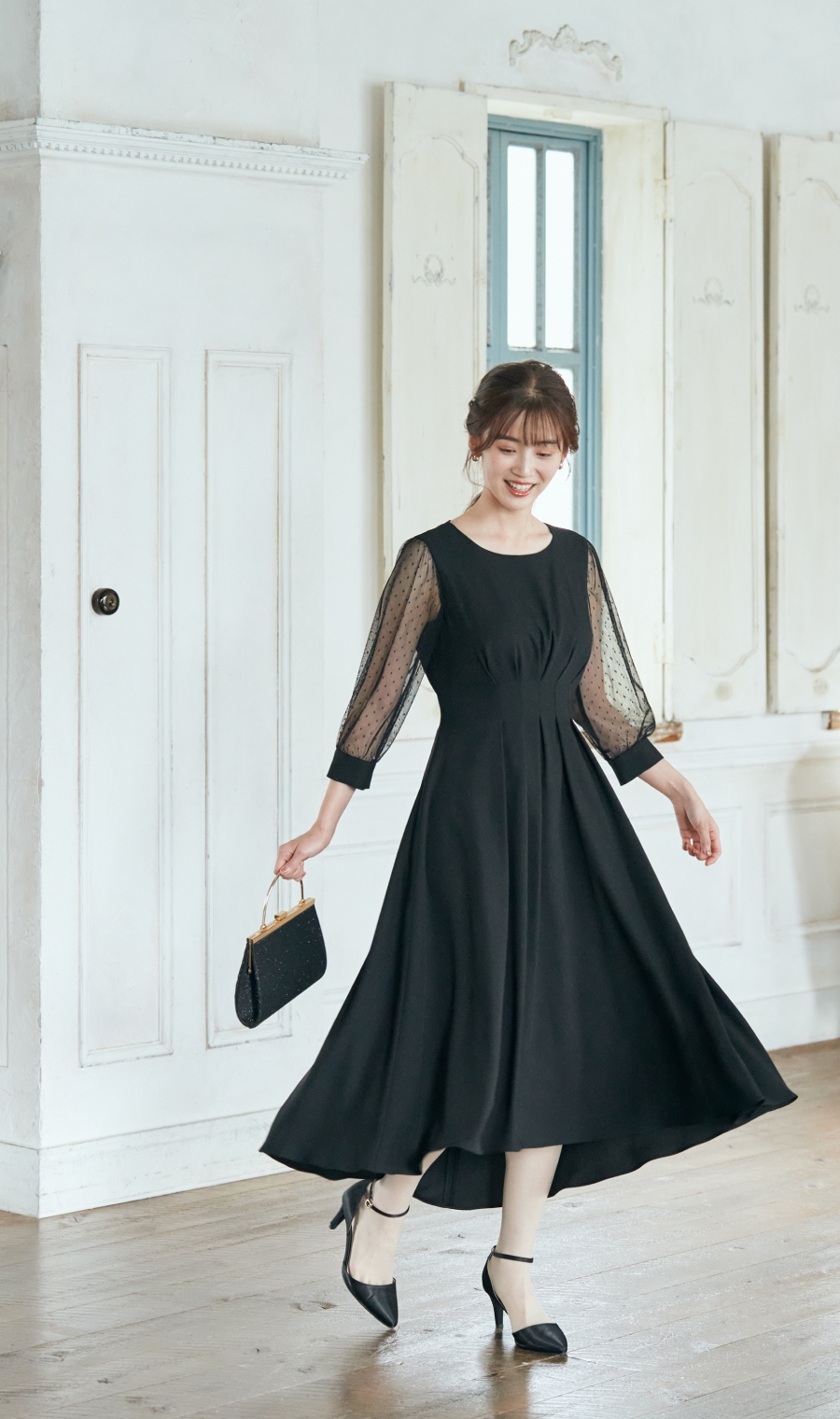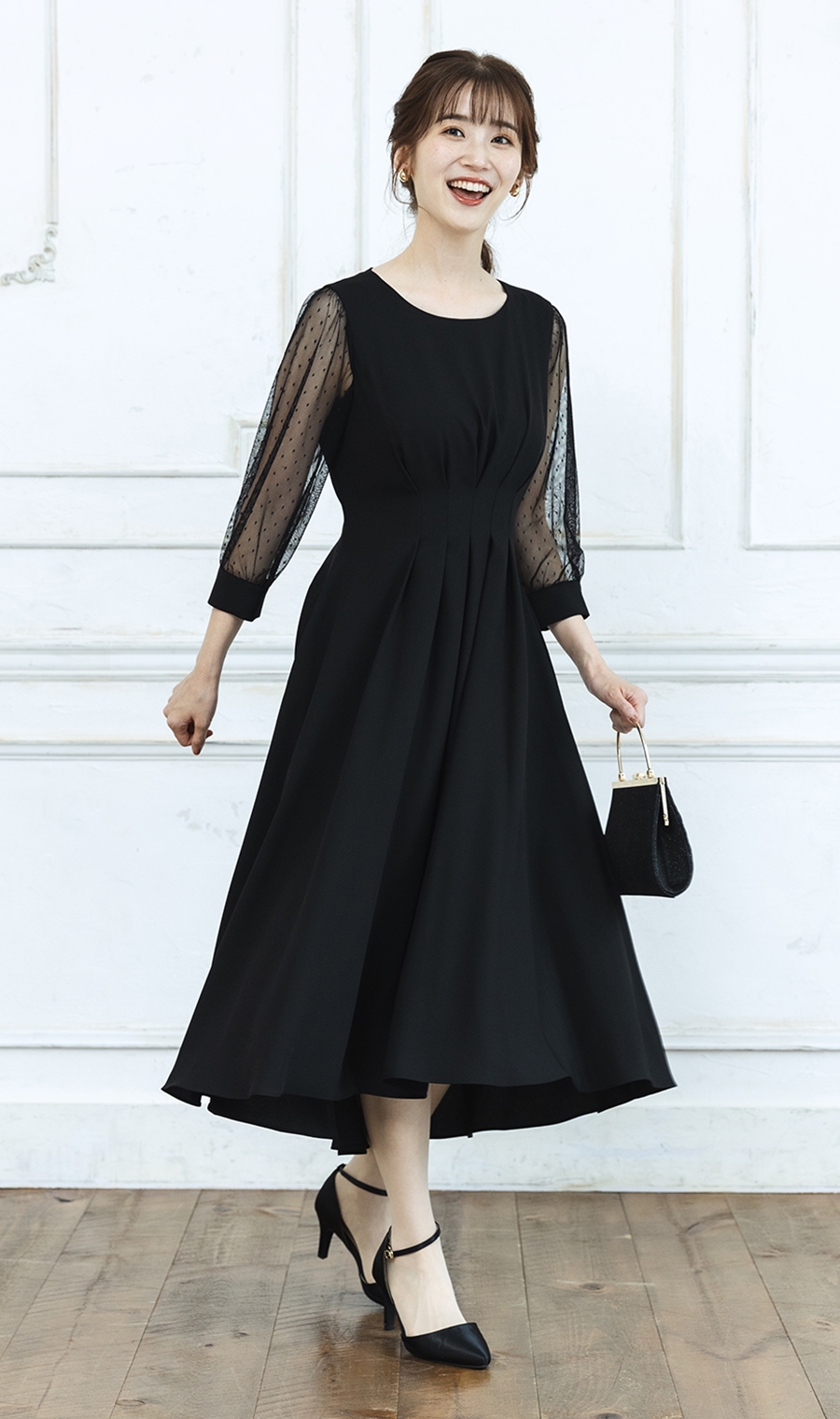 フィット&フレアのシルエットが優雅に体のラインを演出します。