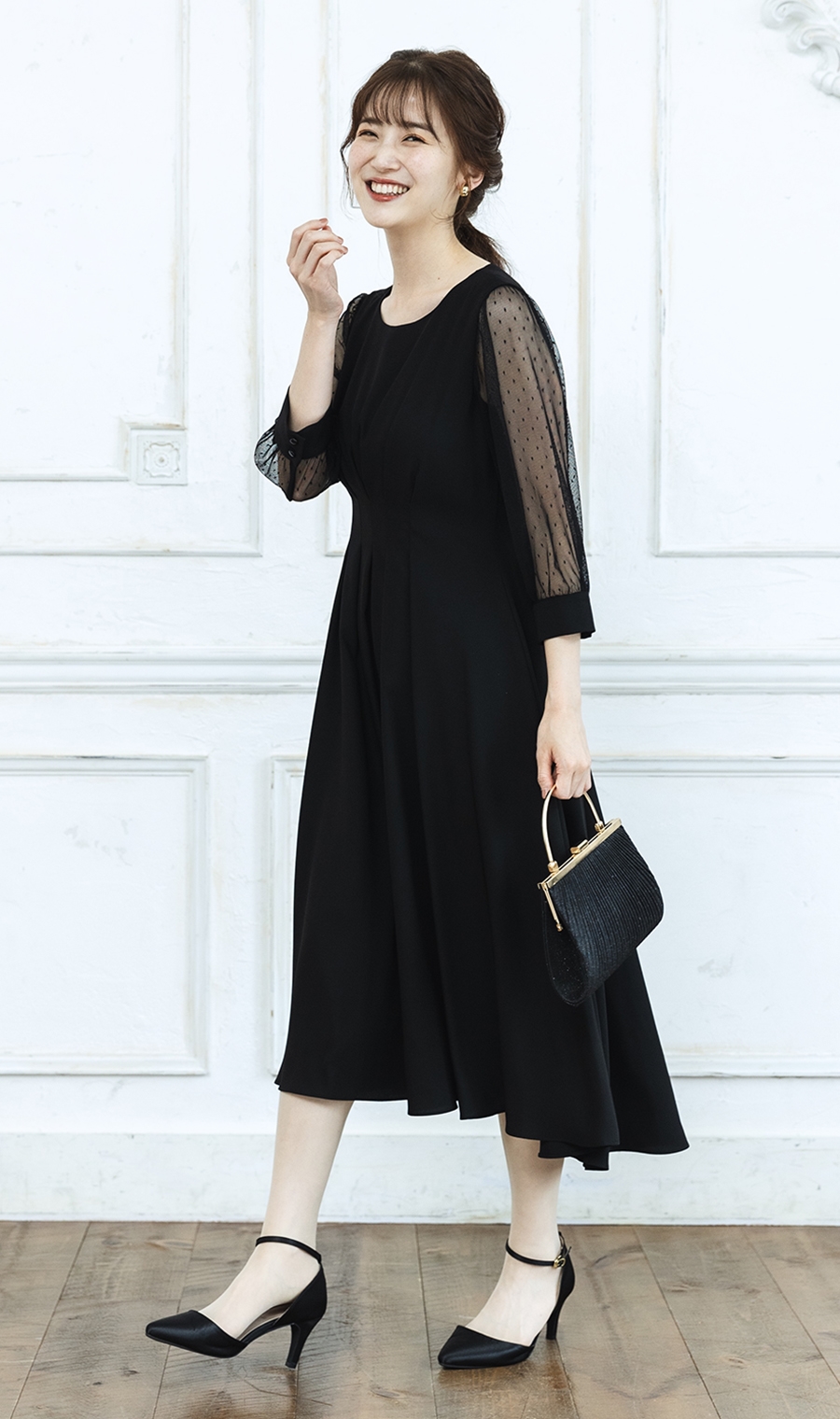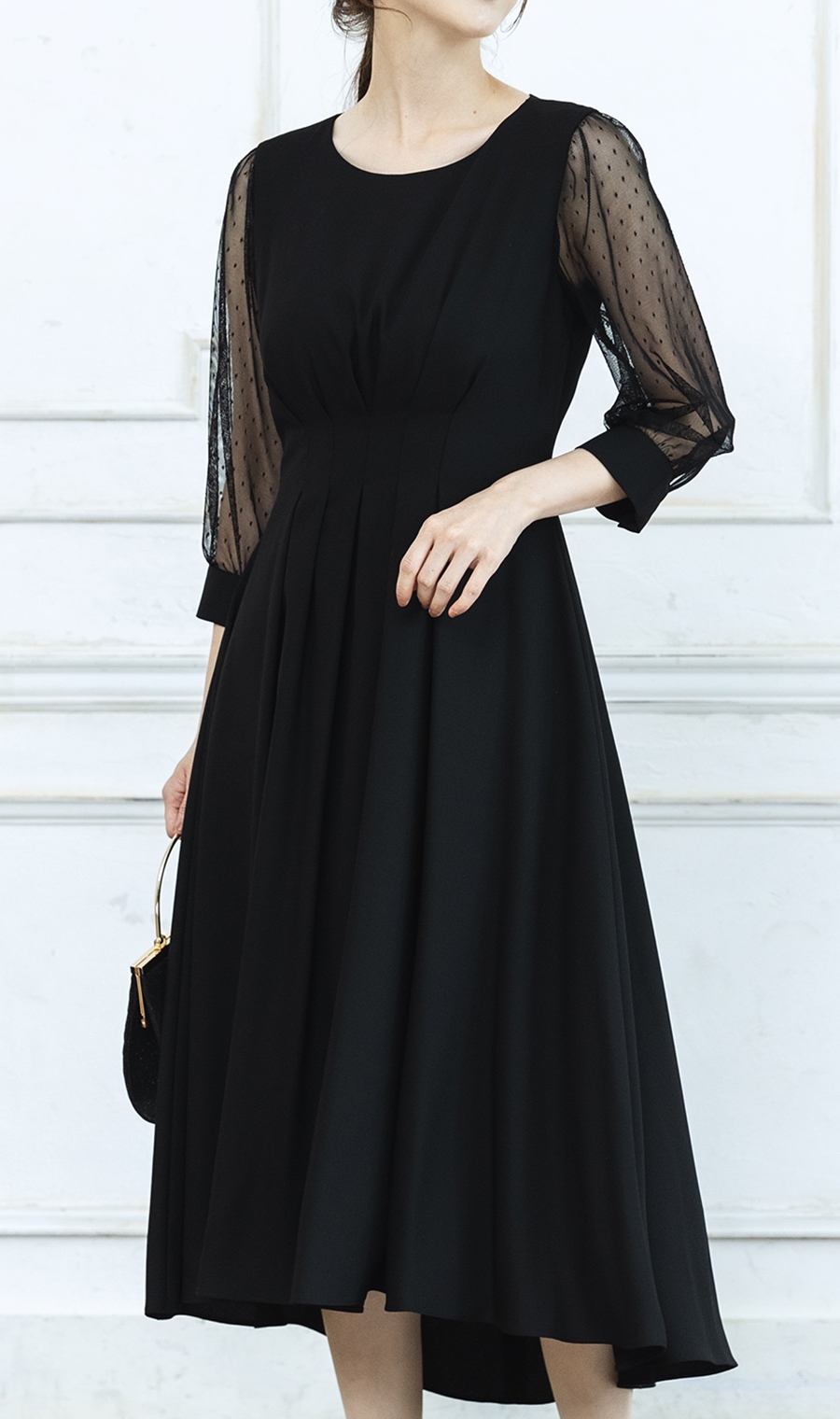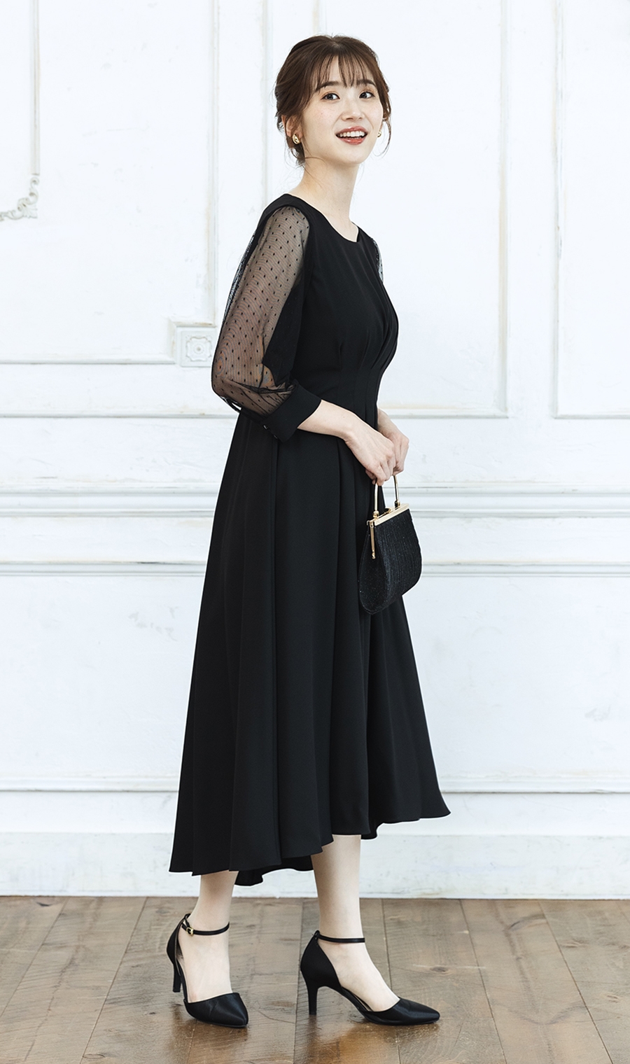 フィット&フレアのシルエットが優雅に体のラインを演出します。