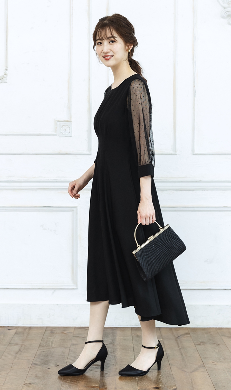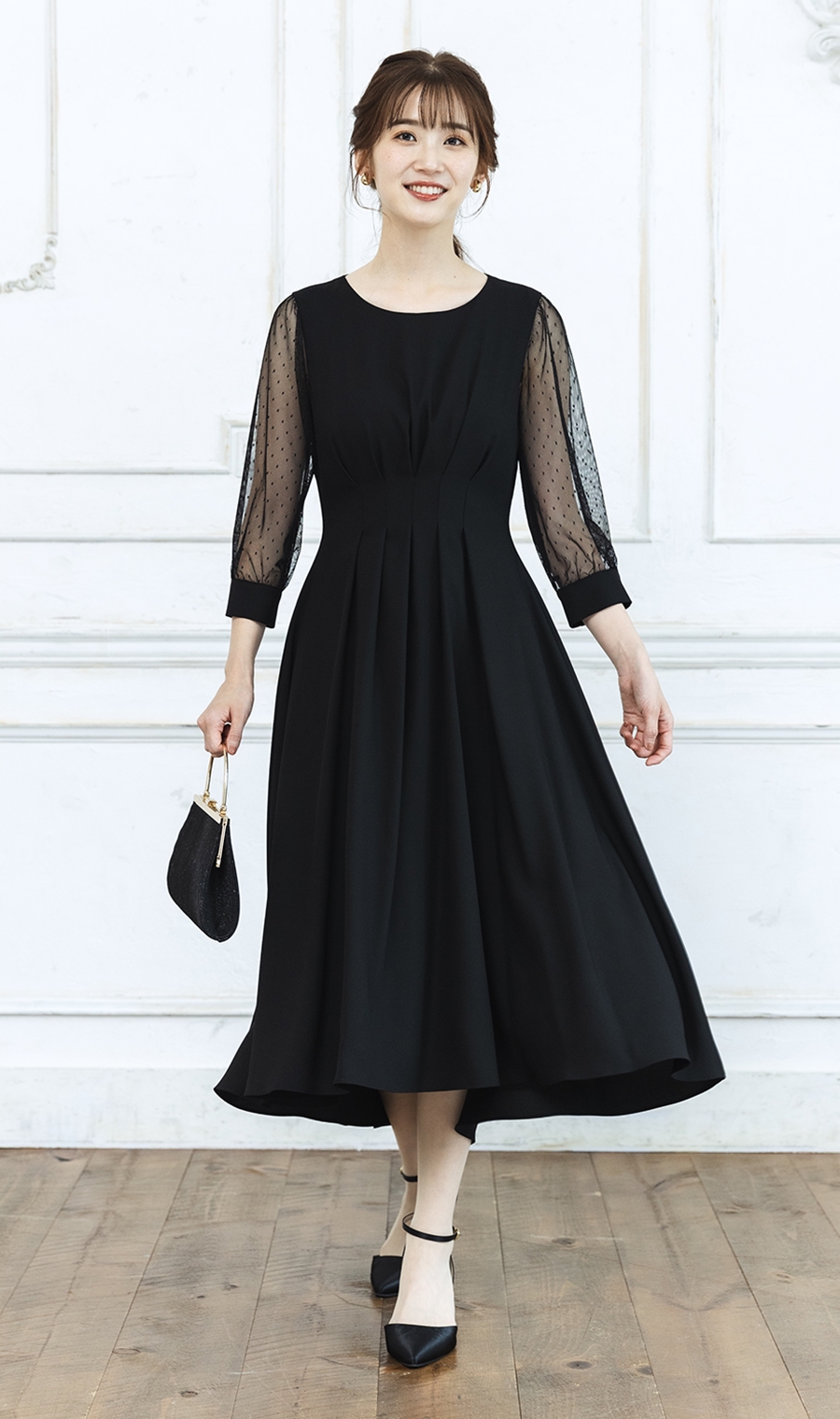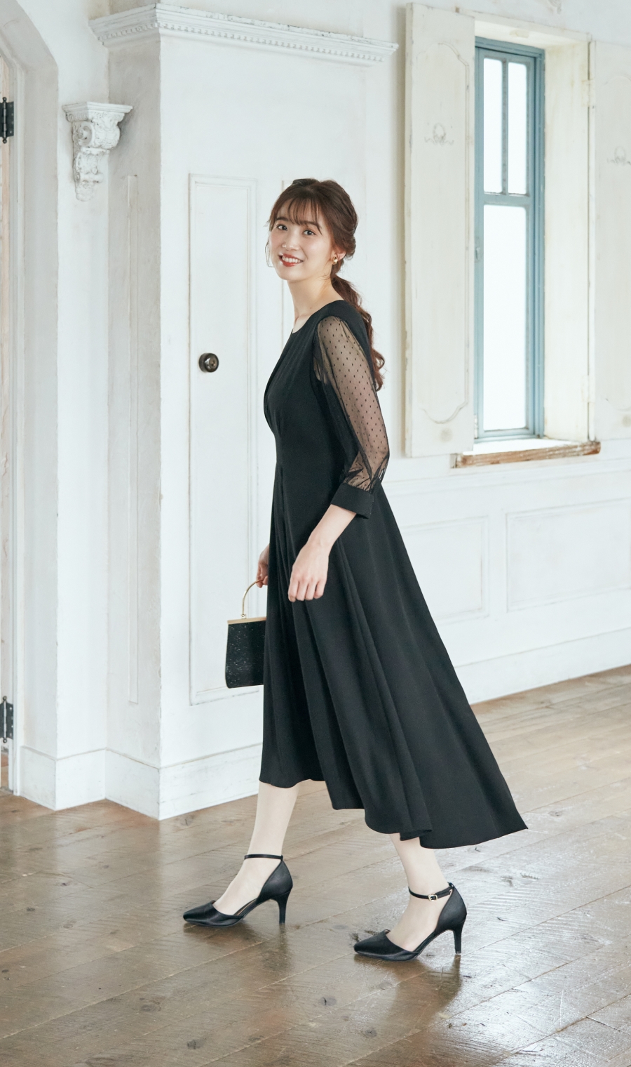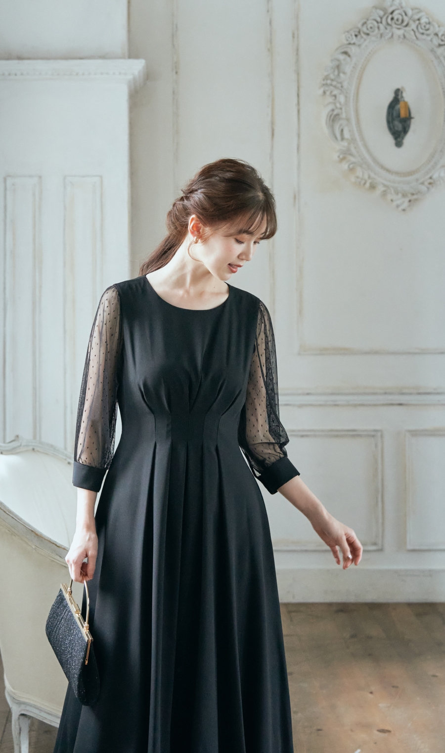 フィット&フレアのシルエットが優雅に体のラインを演出します。
