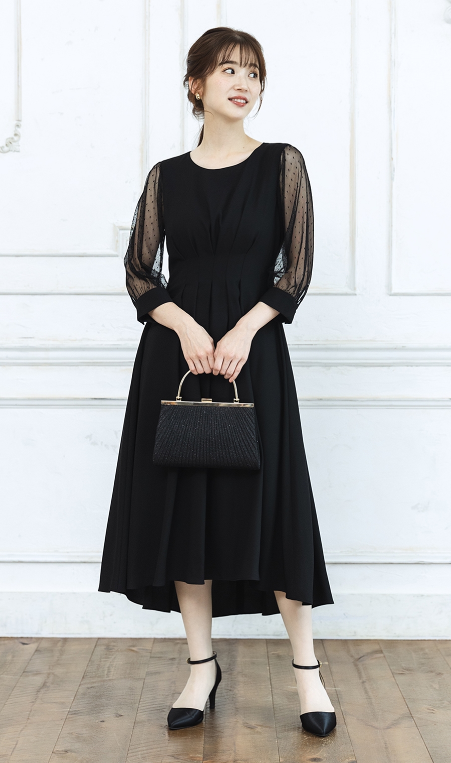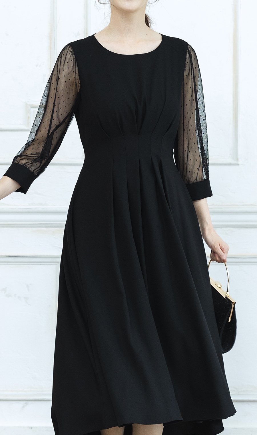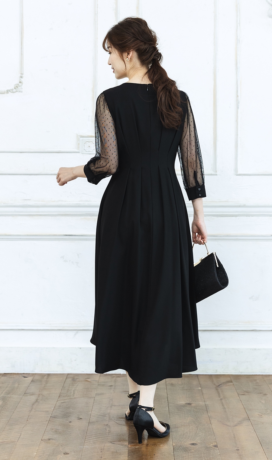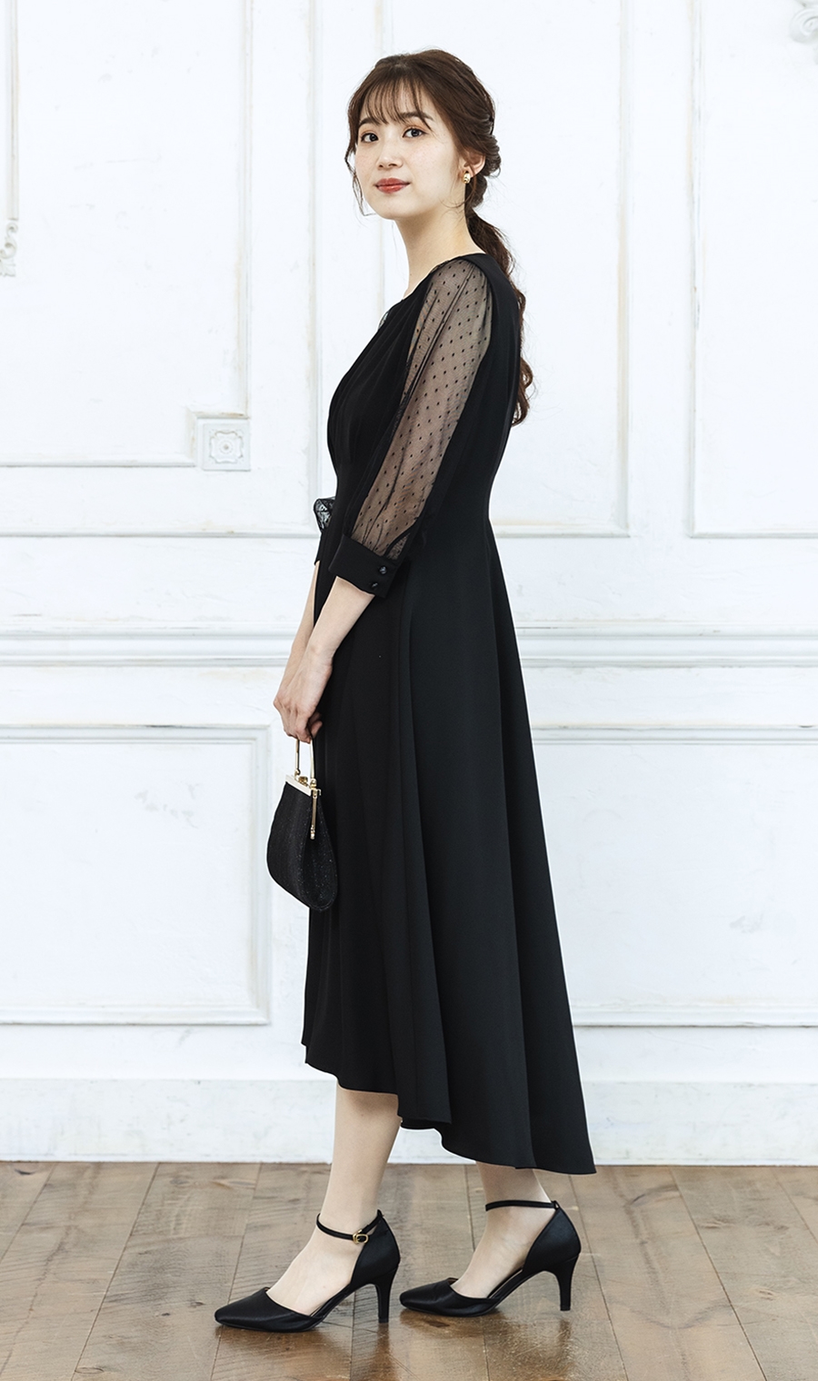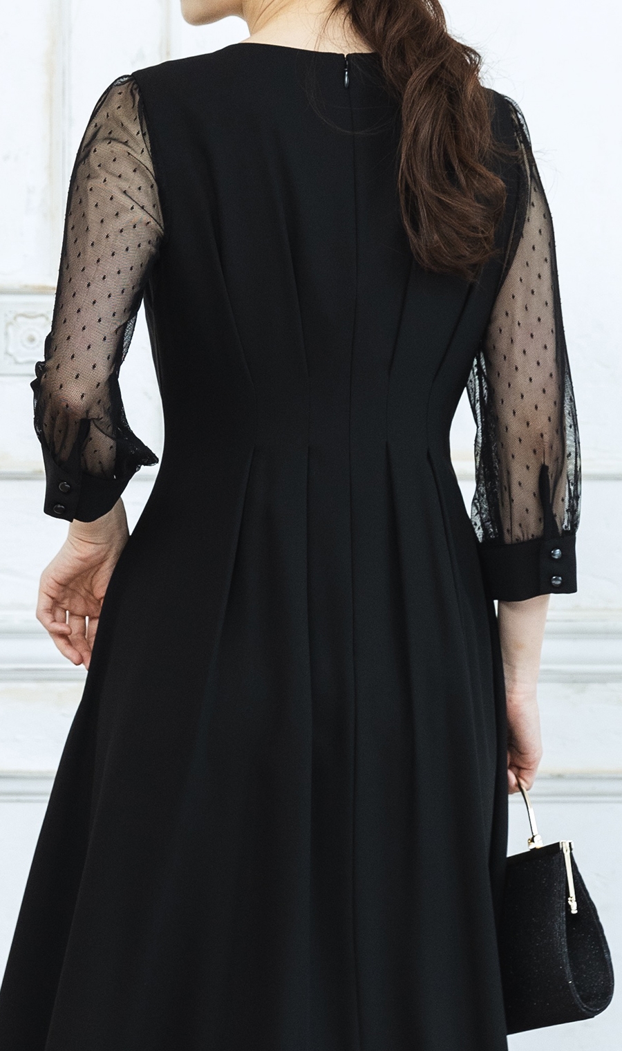 身頃は程良いストレッチ感のバックサテンジョーゼットのワンピースドレス。