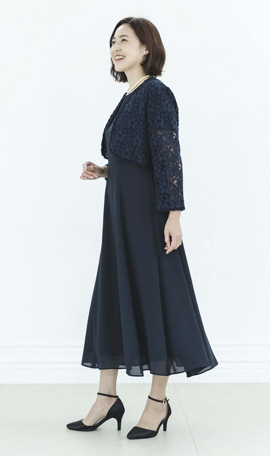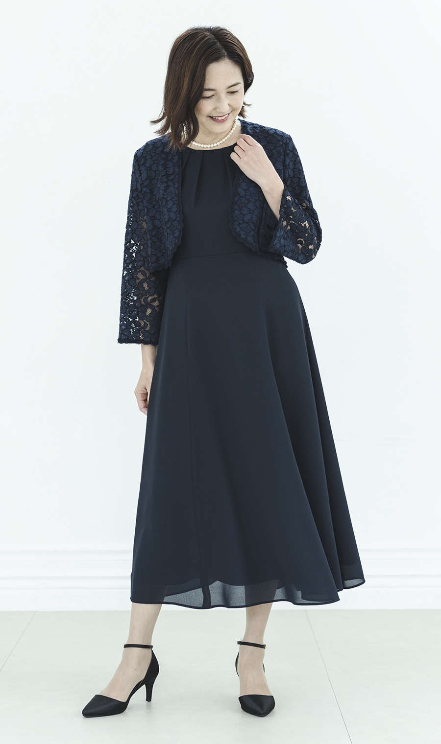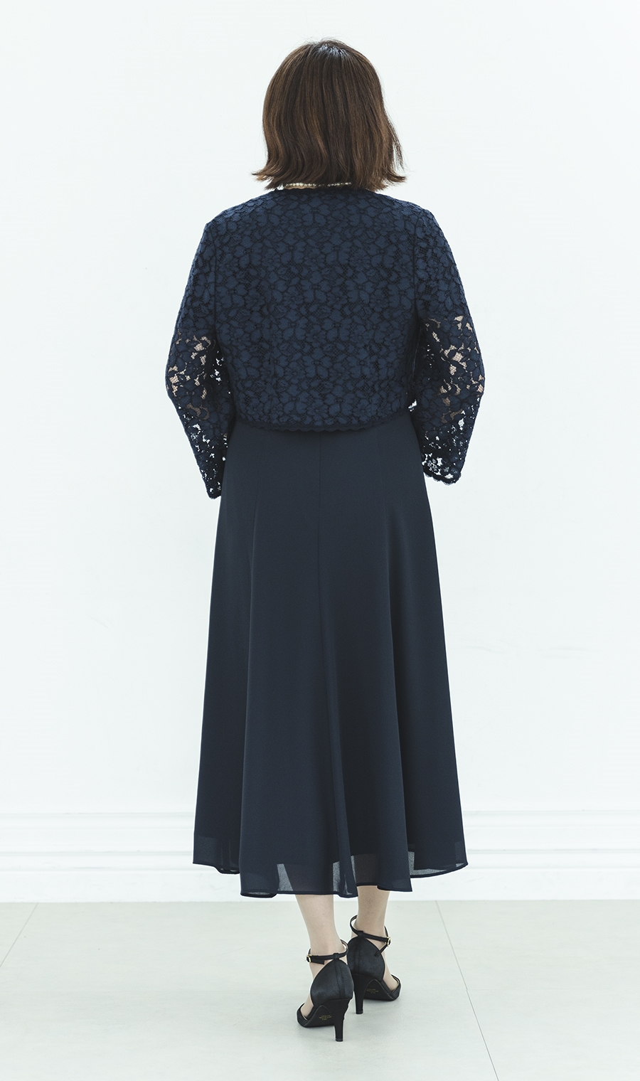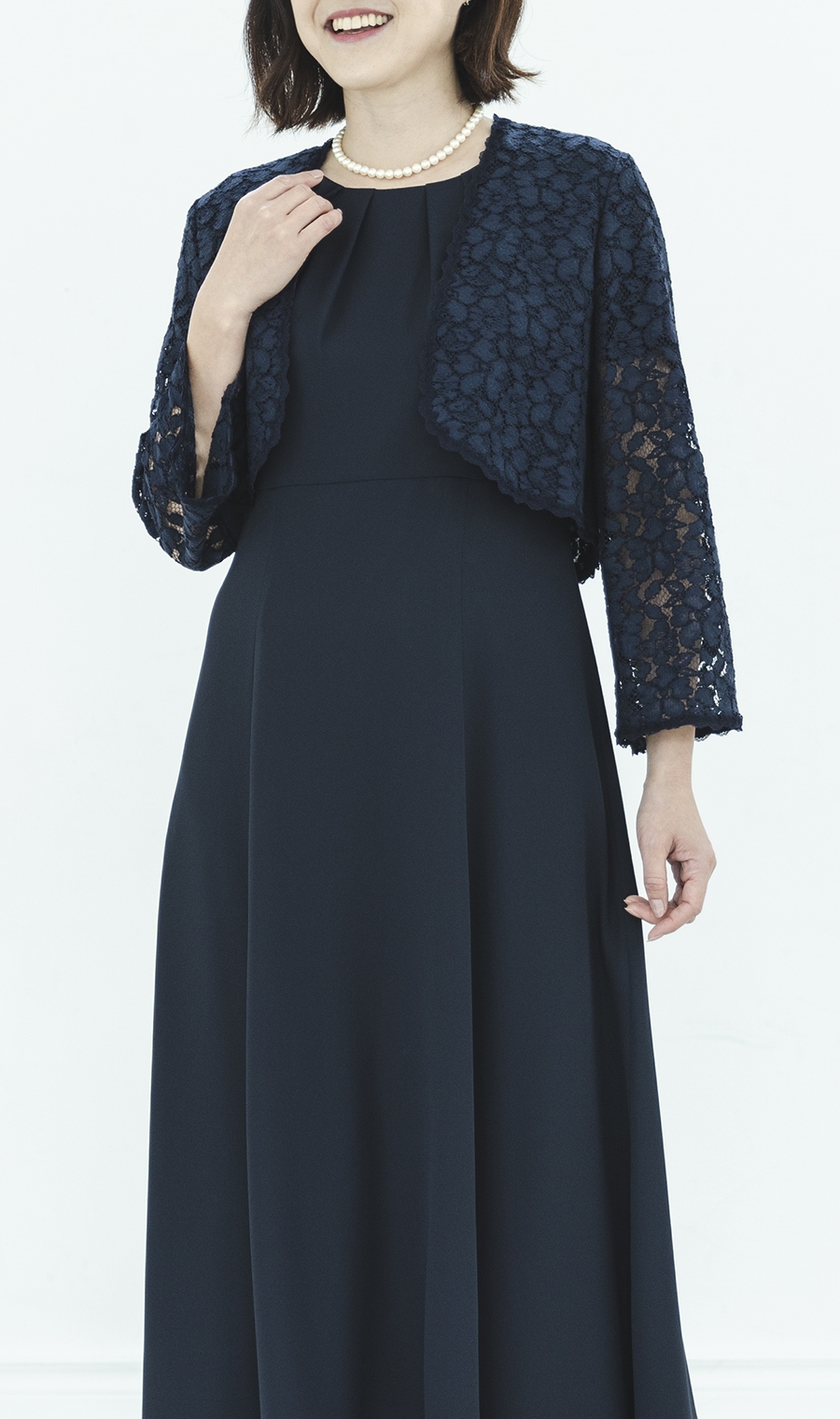 軽やかなレースボレロとロング丈ドレスの2点セット