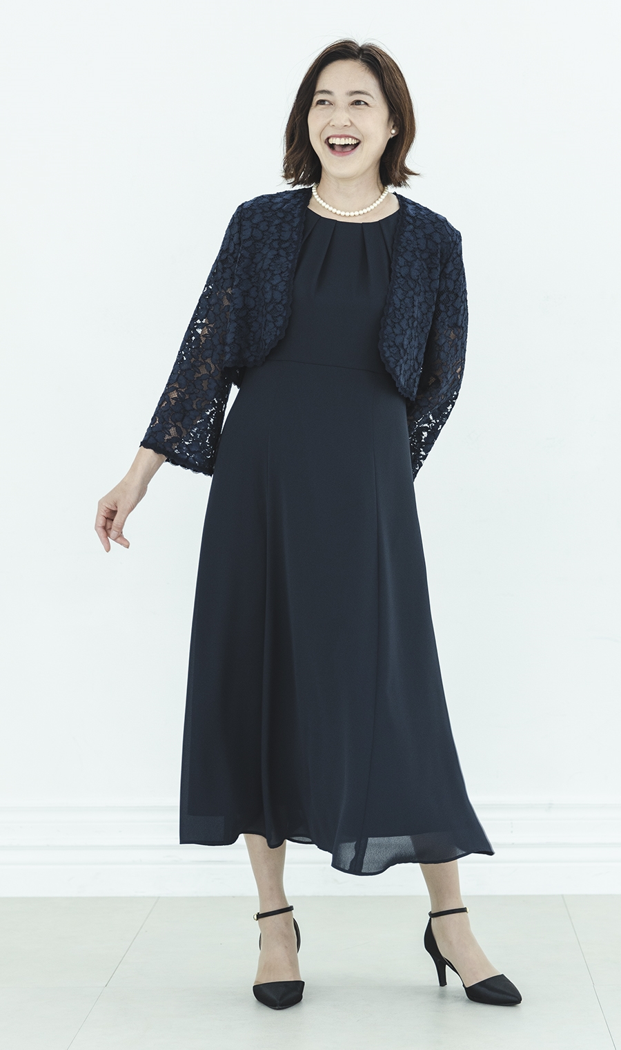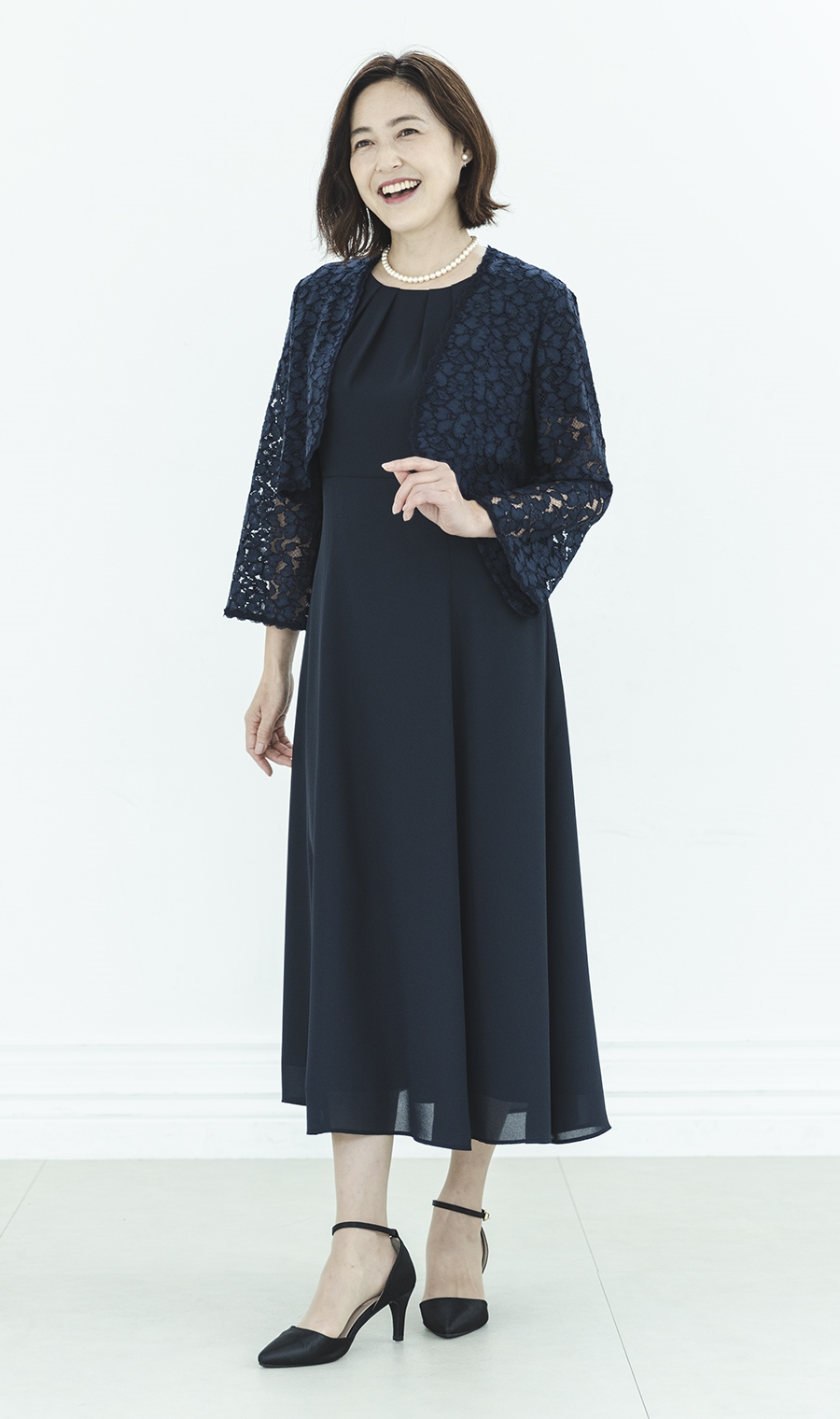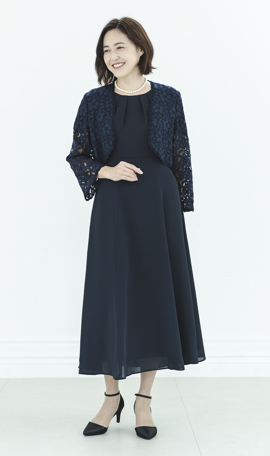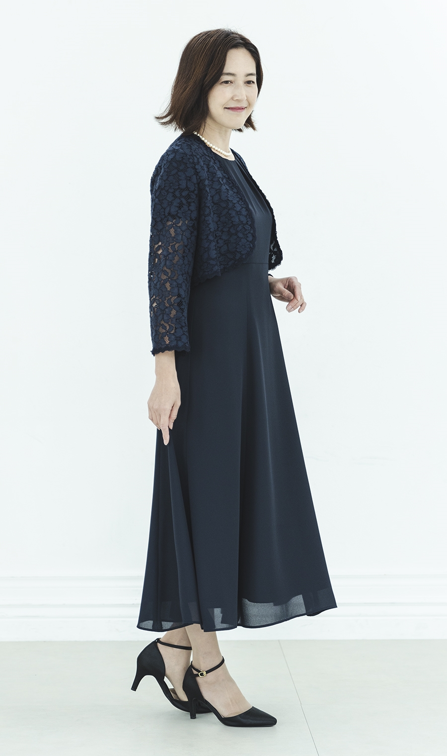 軽やかなレースボレロとロング丈ドレスの2点セット