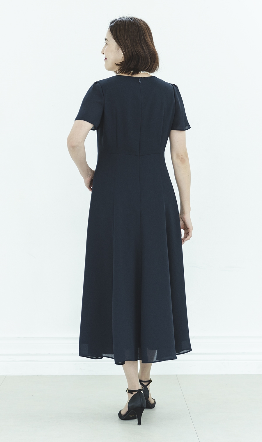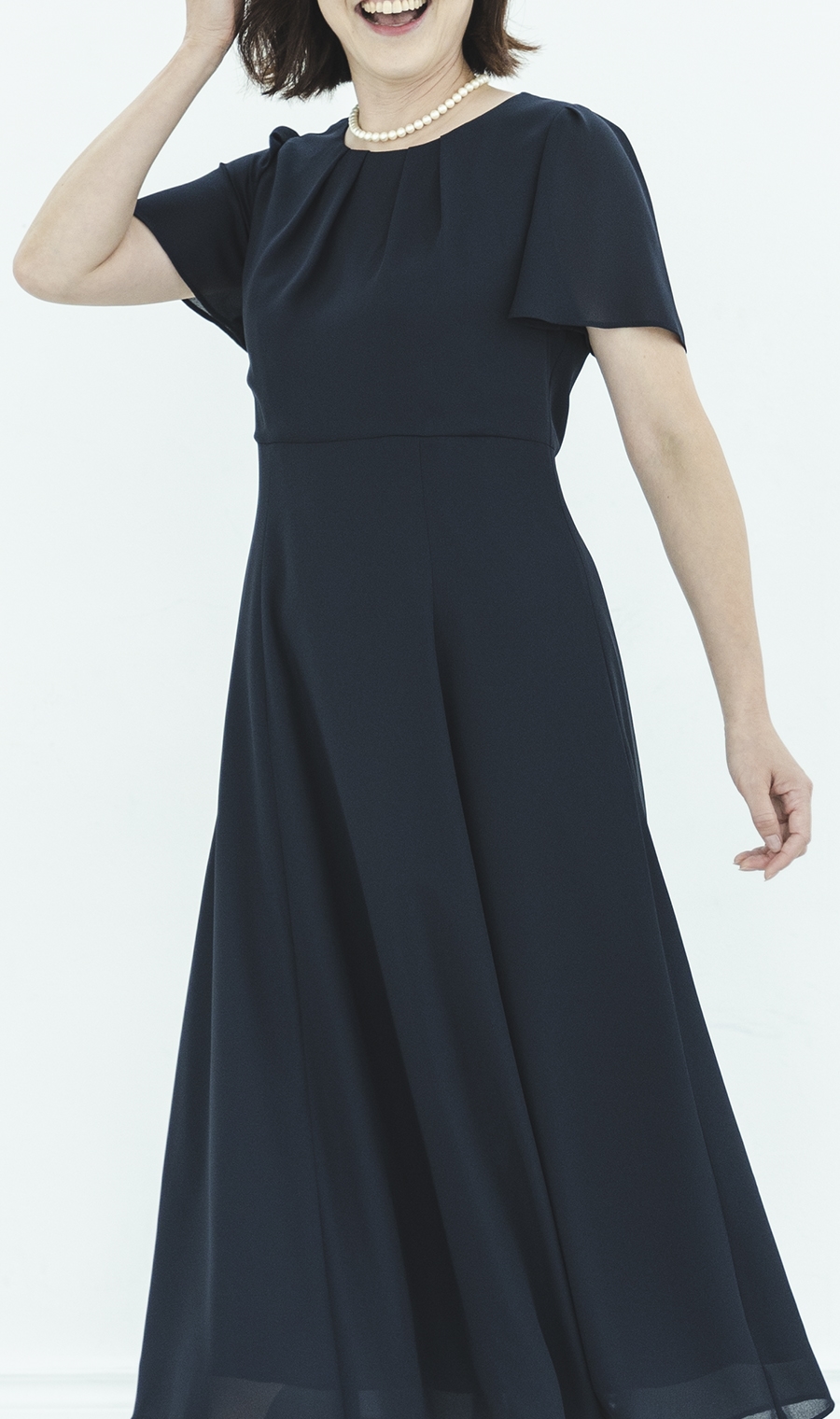 ドレスには落ち感の良いジョーゼットをふんだんに使い、