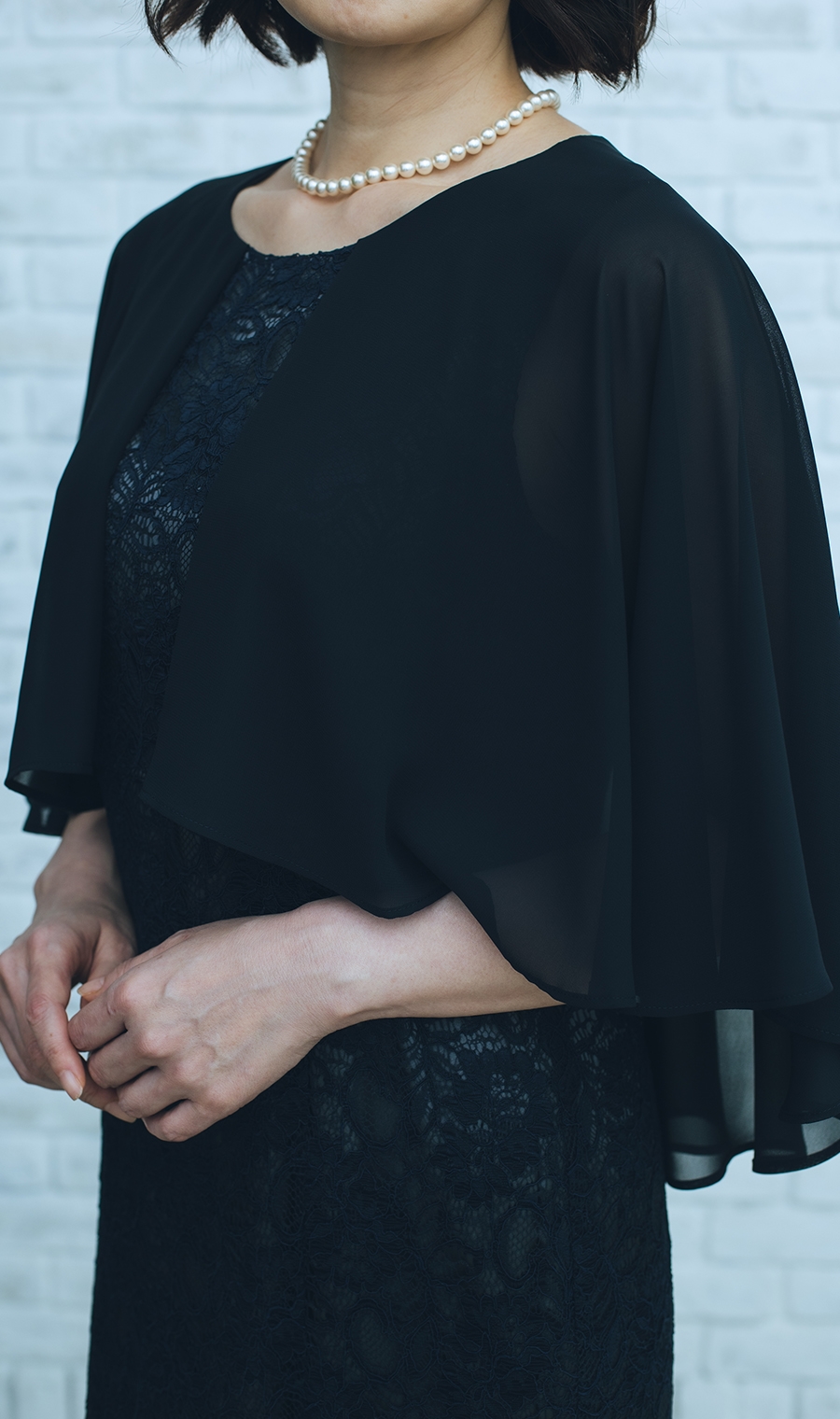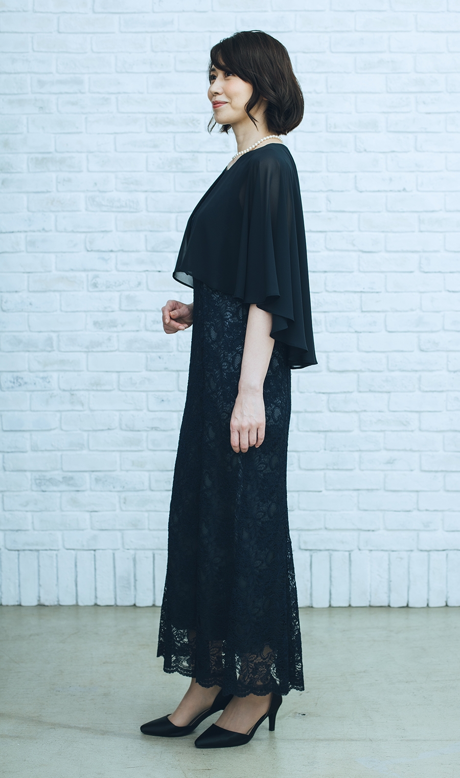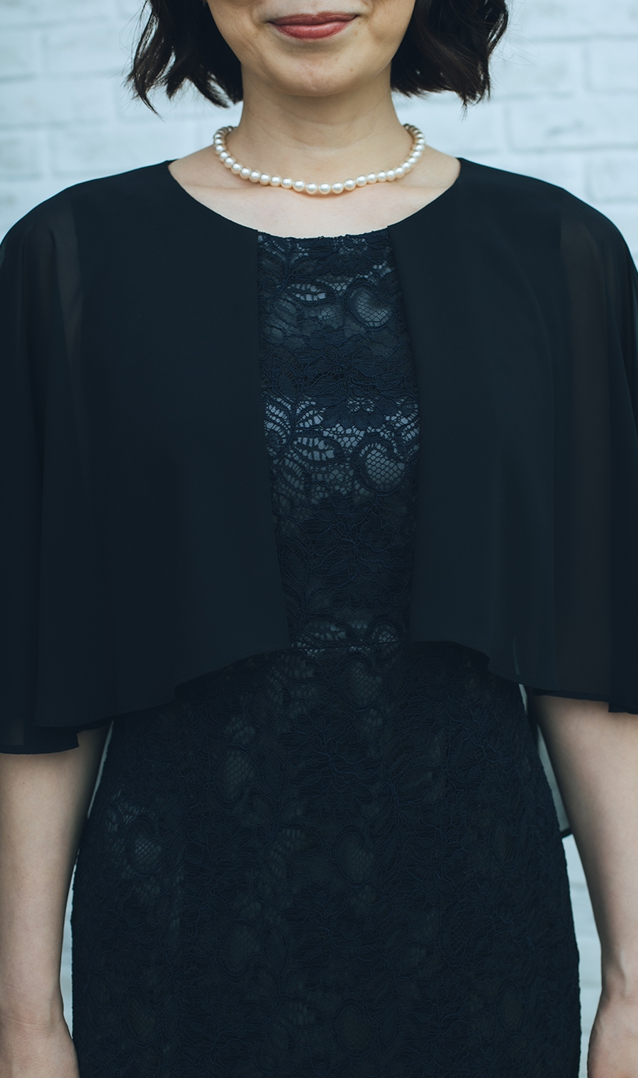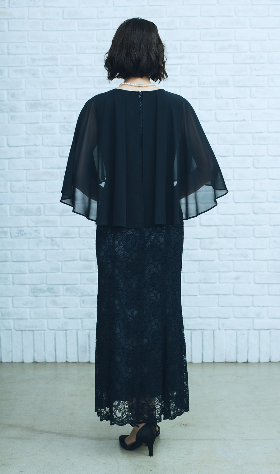2WAYの着こなしが楽しめるショール風のドッキングドレス。