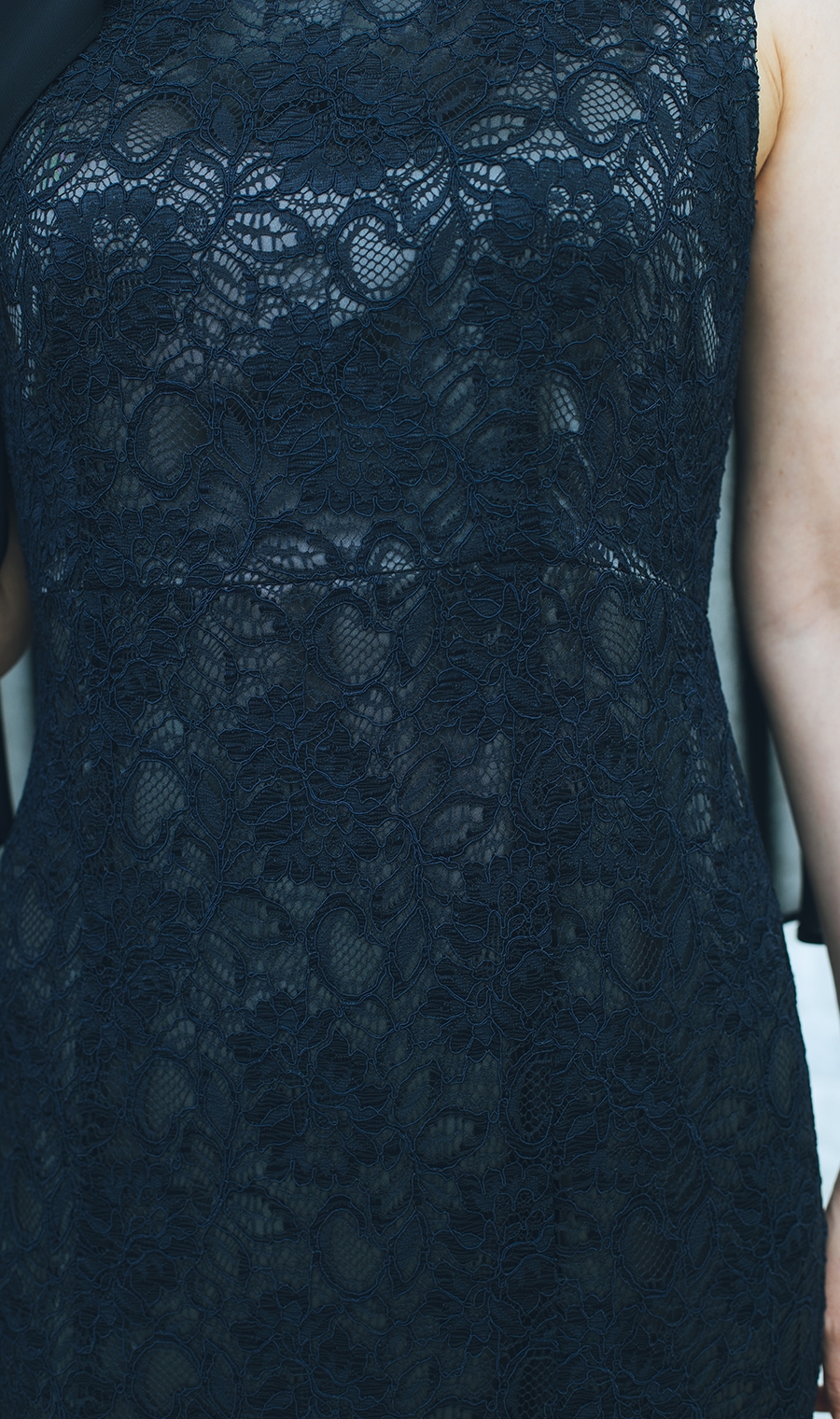 ドレープを活かしても、前でひと結びしてメリハリのある