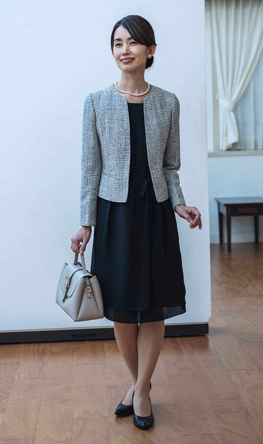 【女性らしいワンピースのアンサンブル】