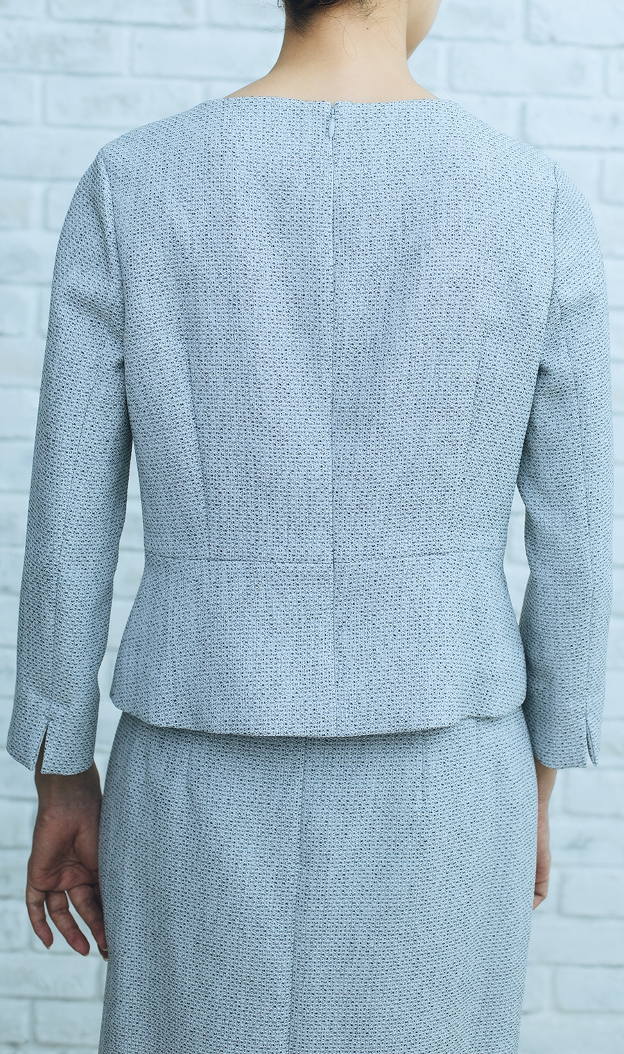 ウエスト部分にペプラムの切り返しが入り、スッキリとしたシルエットに。