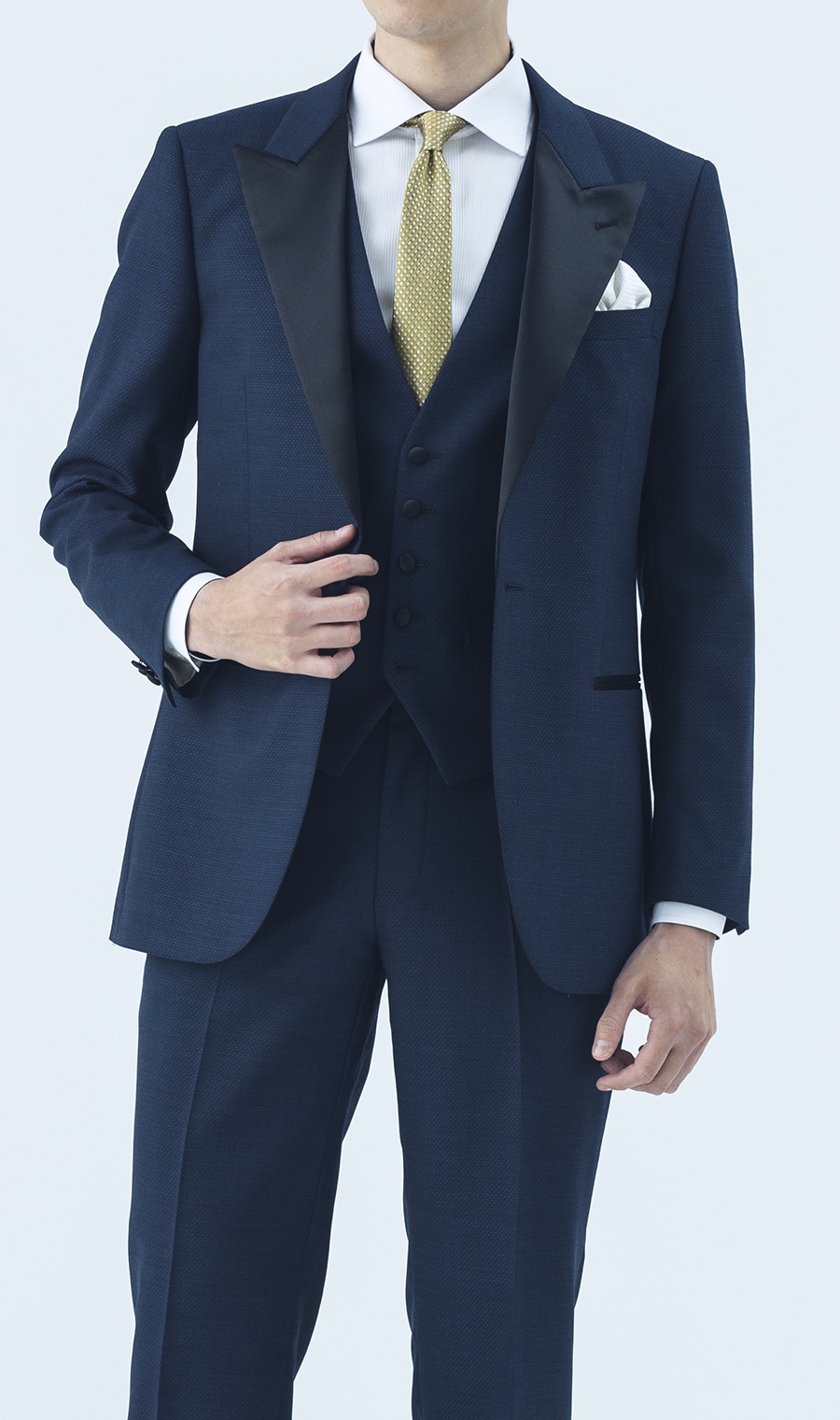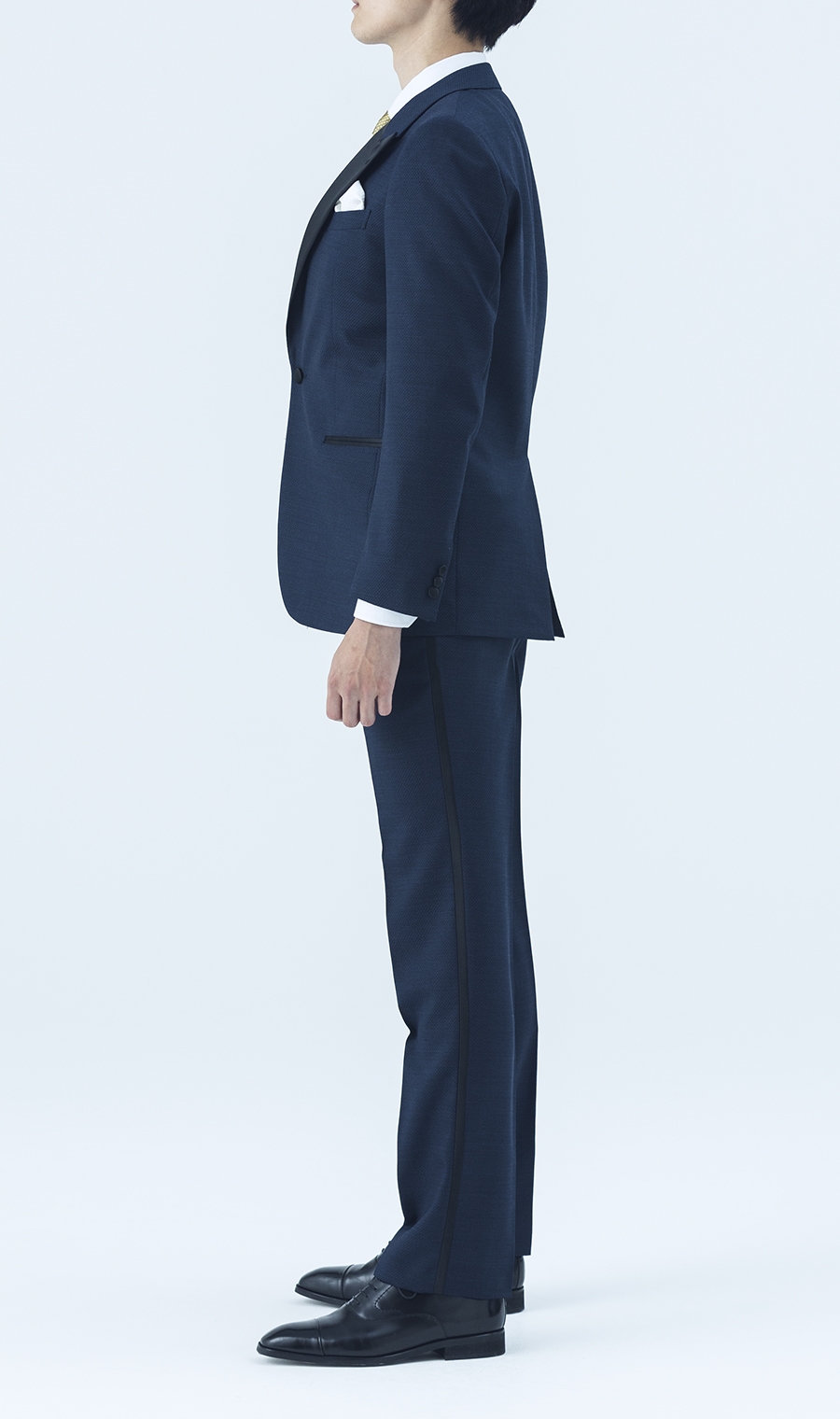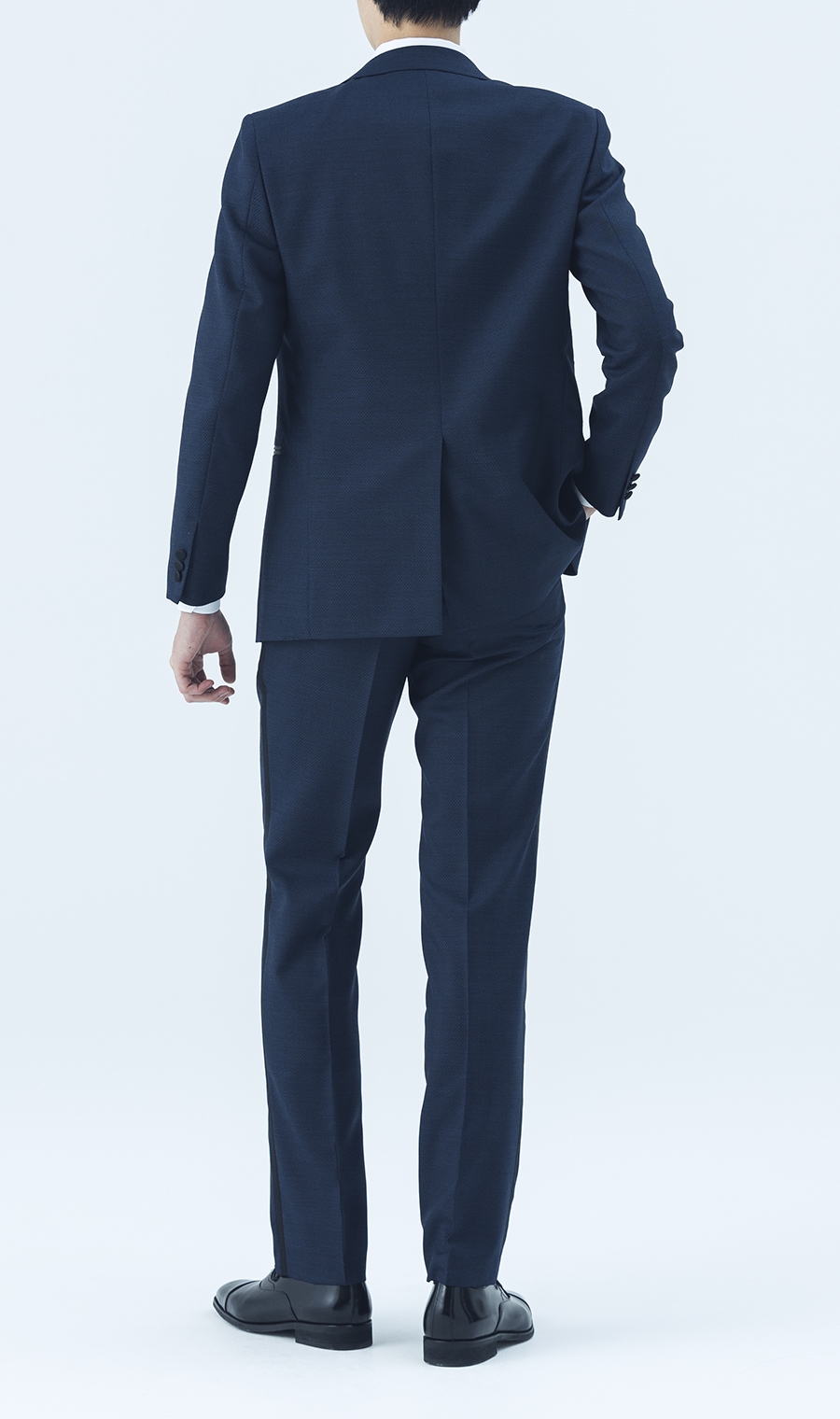 スーツの顔である襟は拝絹(はいけん)襟を採用しフォーマル度をアップ。