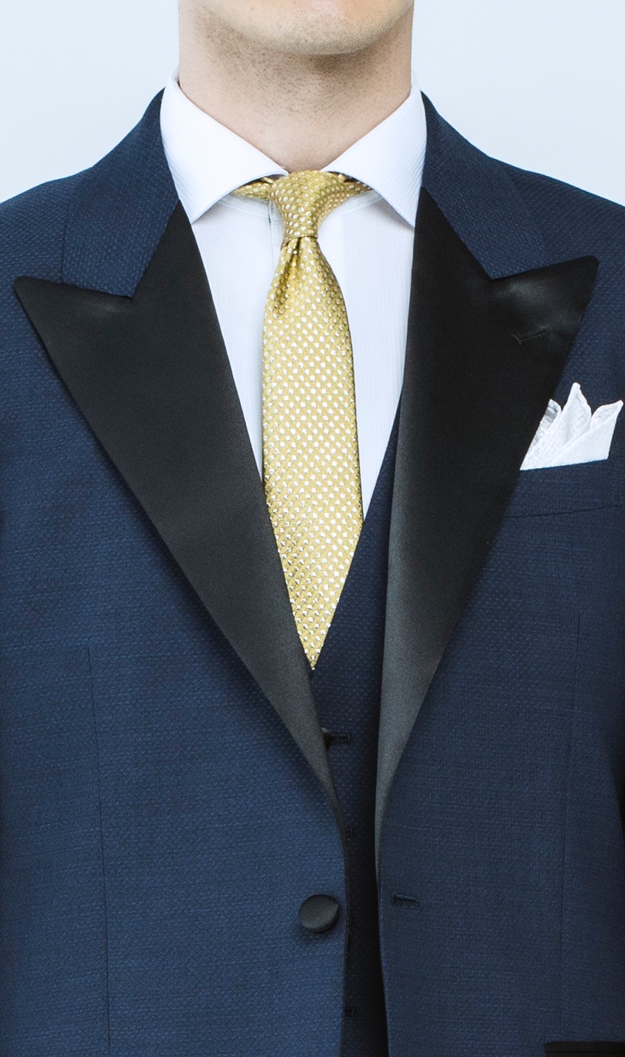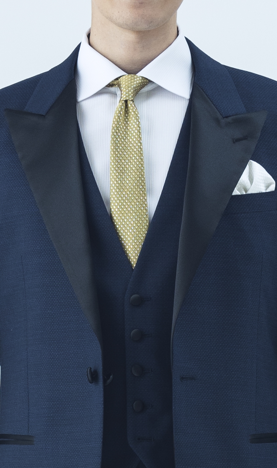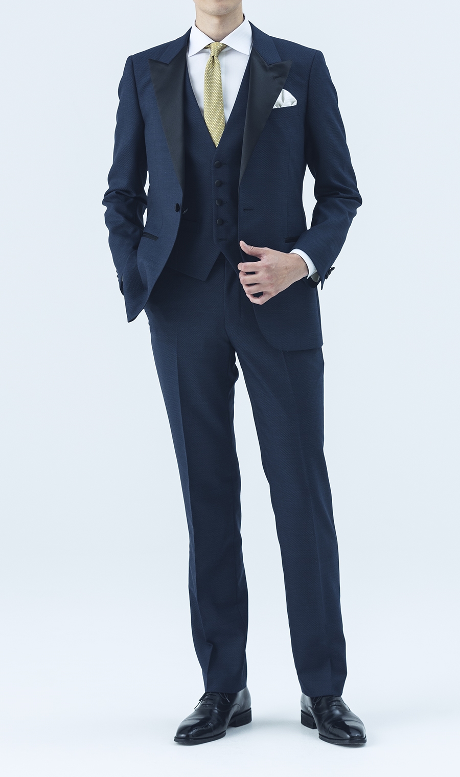スーツの顔である襟は拝絹(はいけん)襟を採用しフォーマル度をアップ。