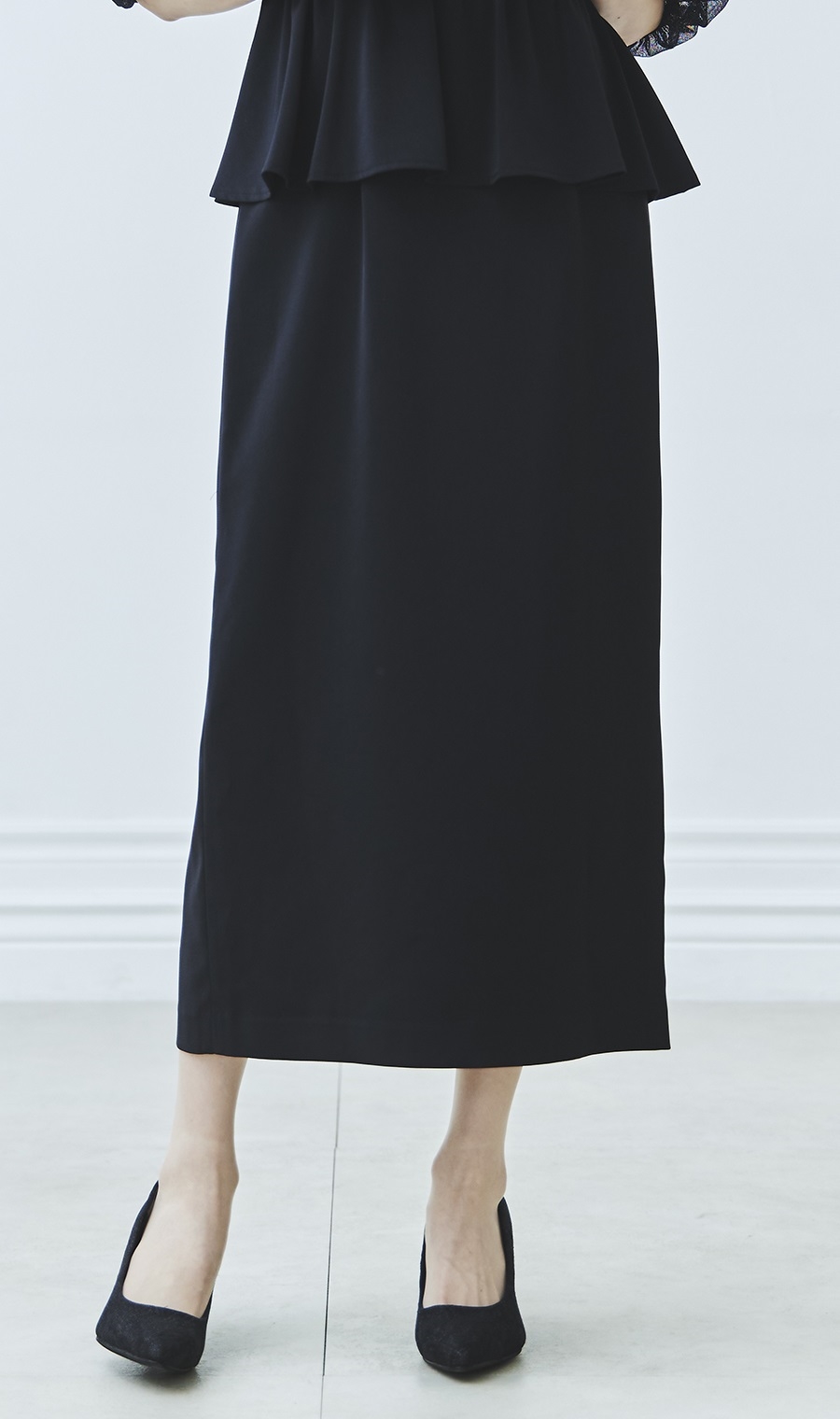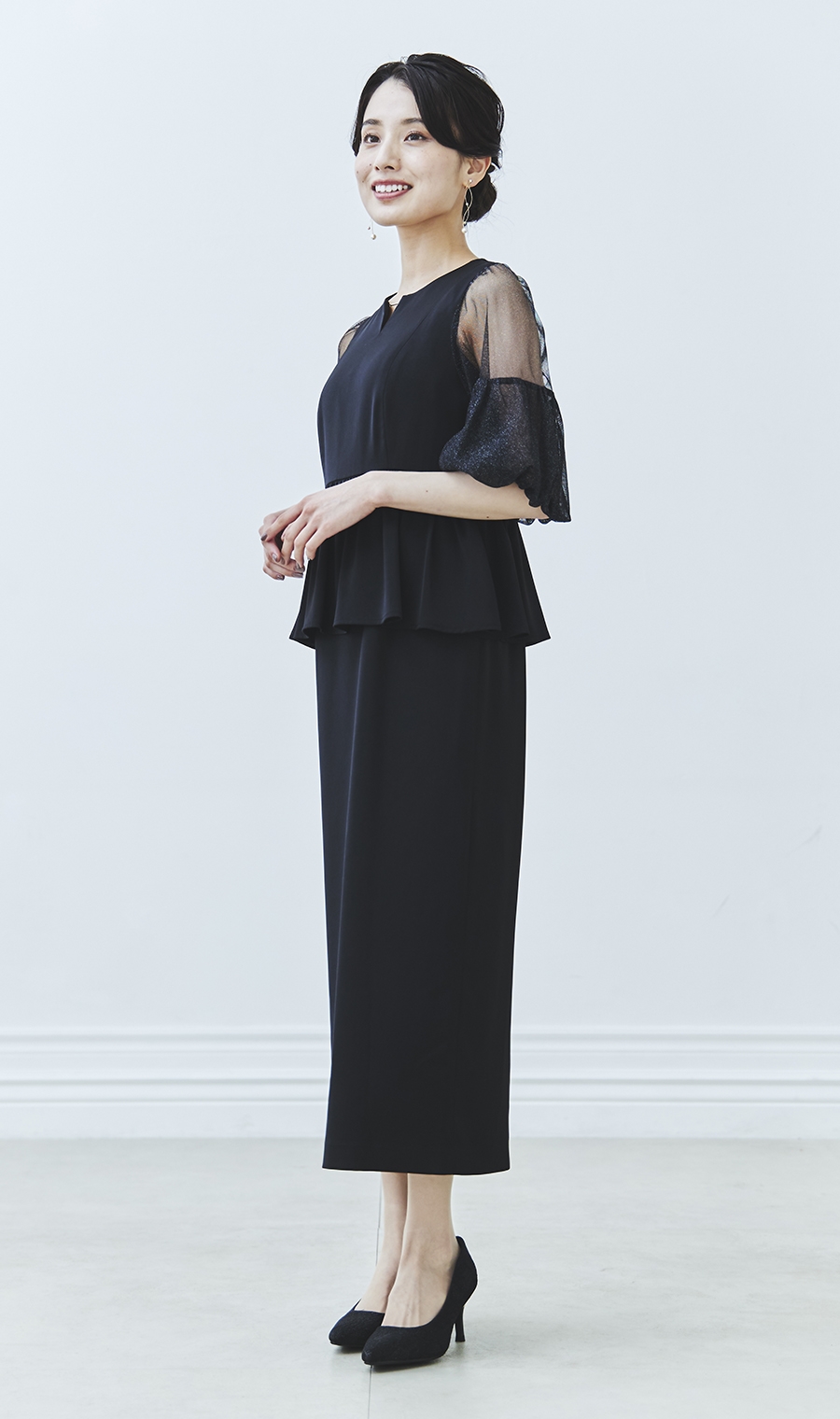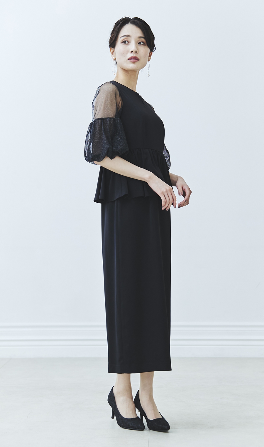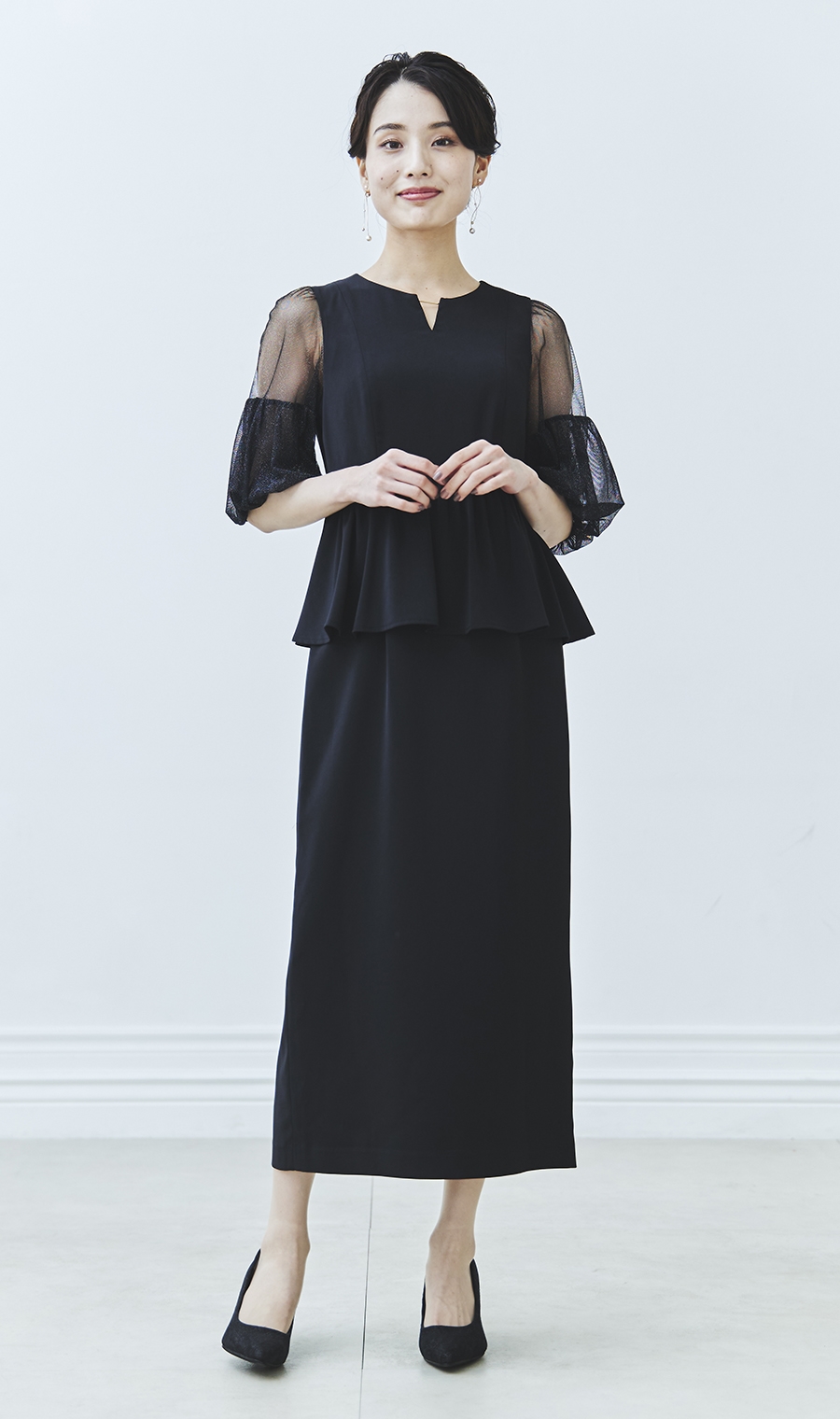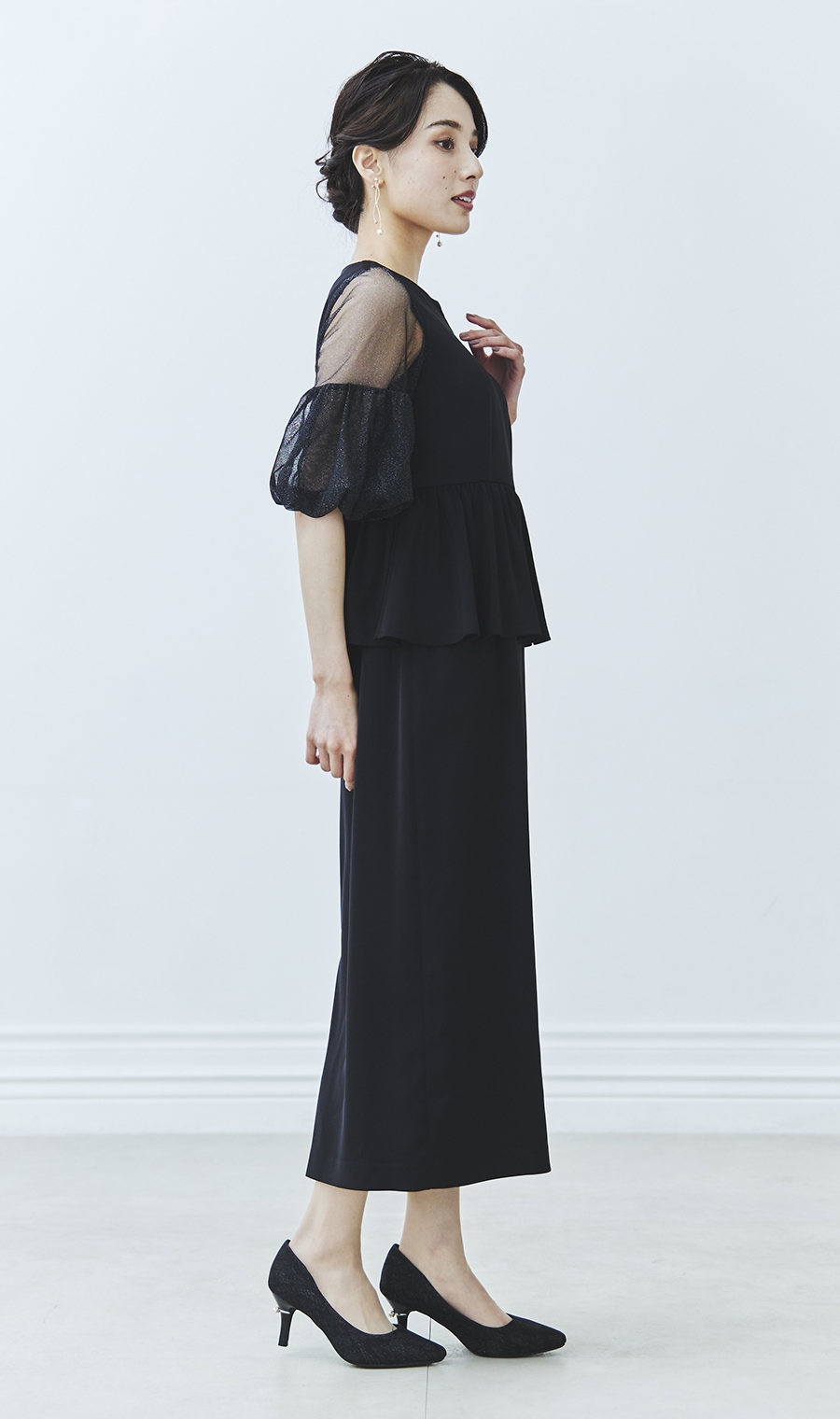 昨今のトレンドディテールである袖ボリュームを程良く取り入れ、ウエスト部分のペプラムデザインとの相性もばっちりです。