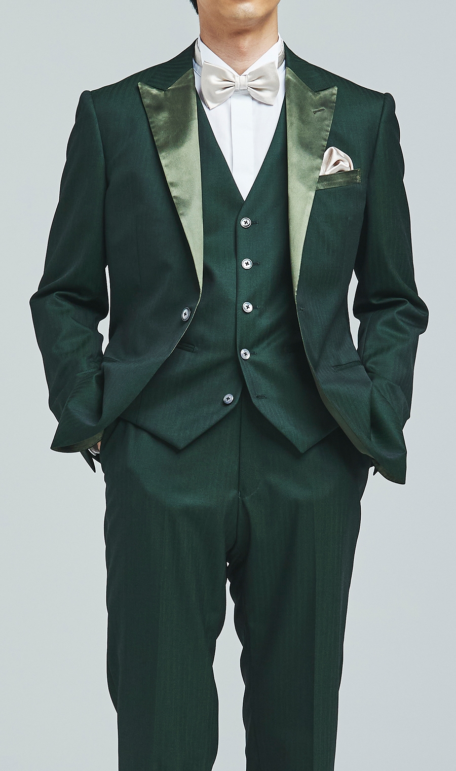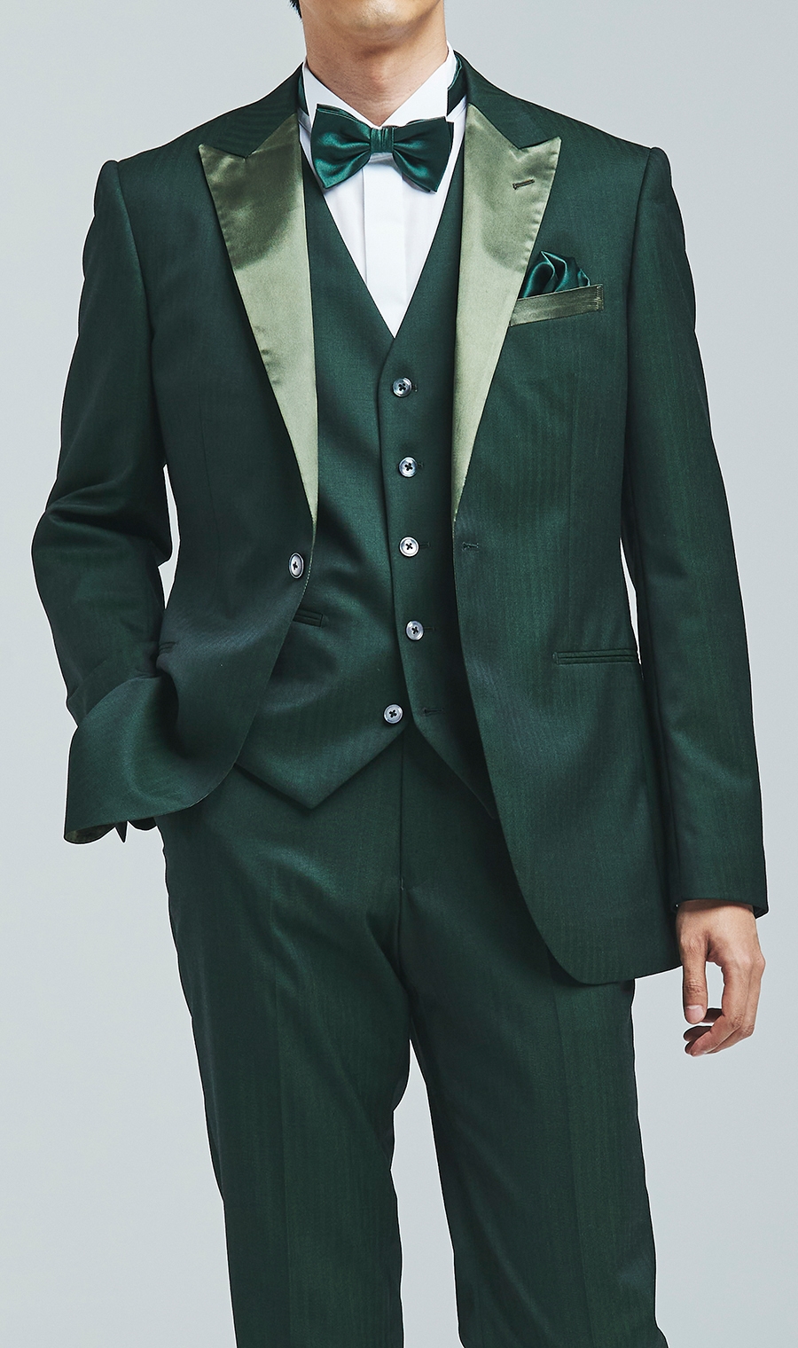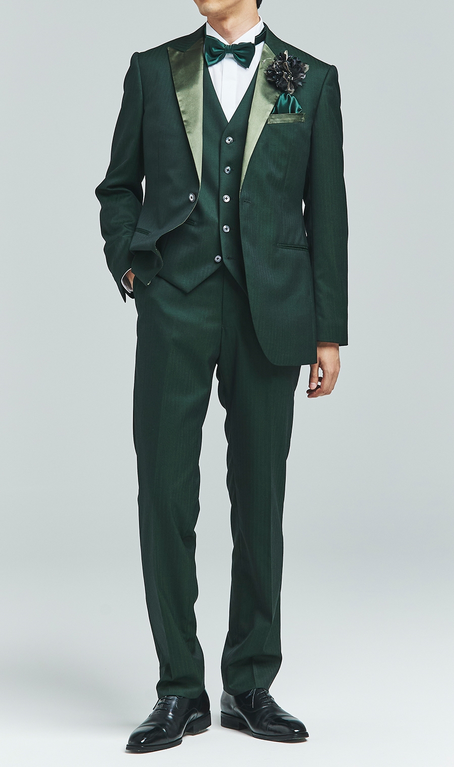 深みのあるグリーンが落ち着きと品を保ちつつ独特の個性を演出。