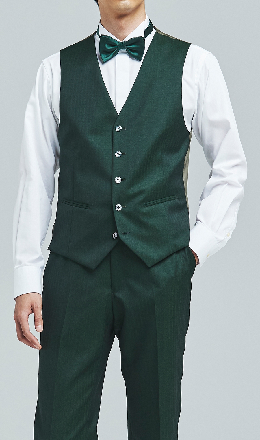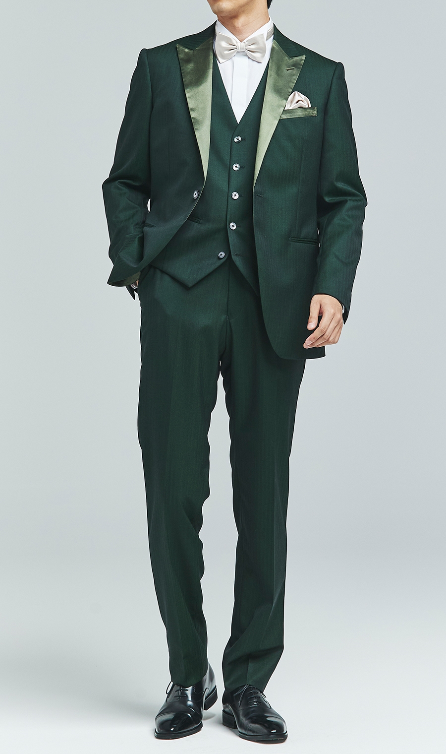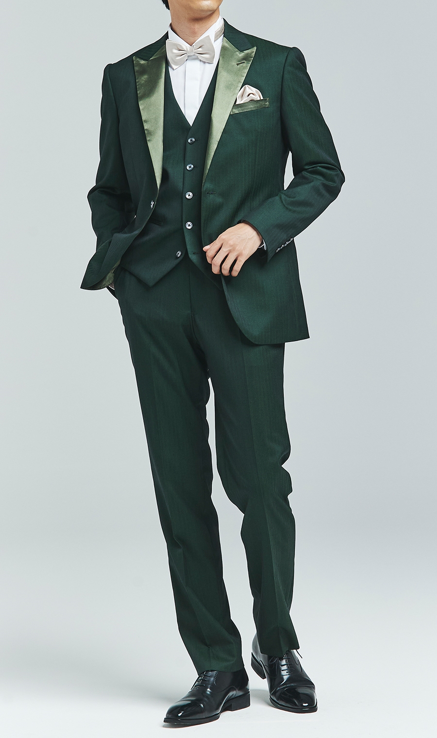 深みのあるグリーンが落ち着きと品を保ちつつ独特の個性を演出。