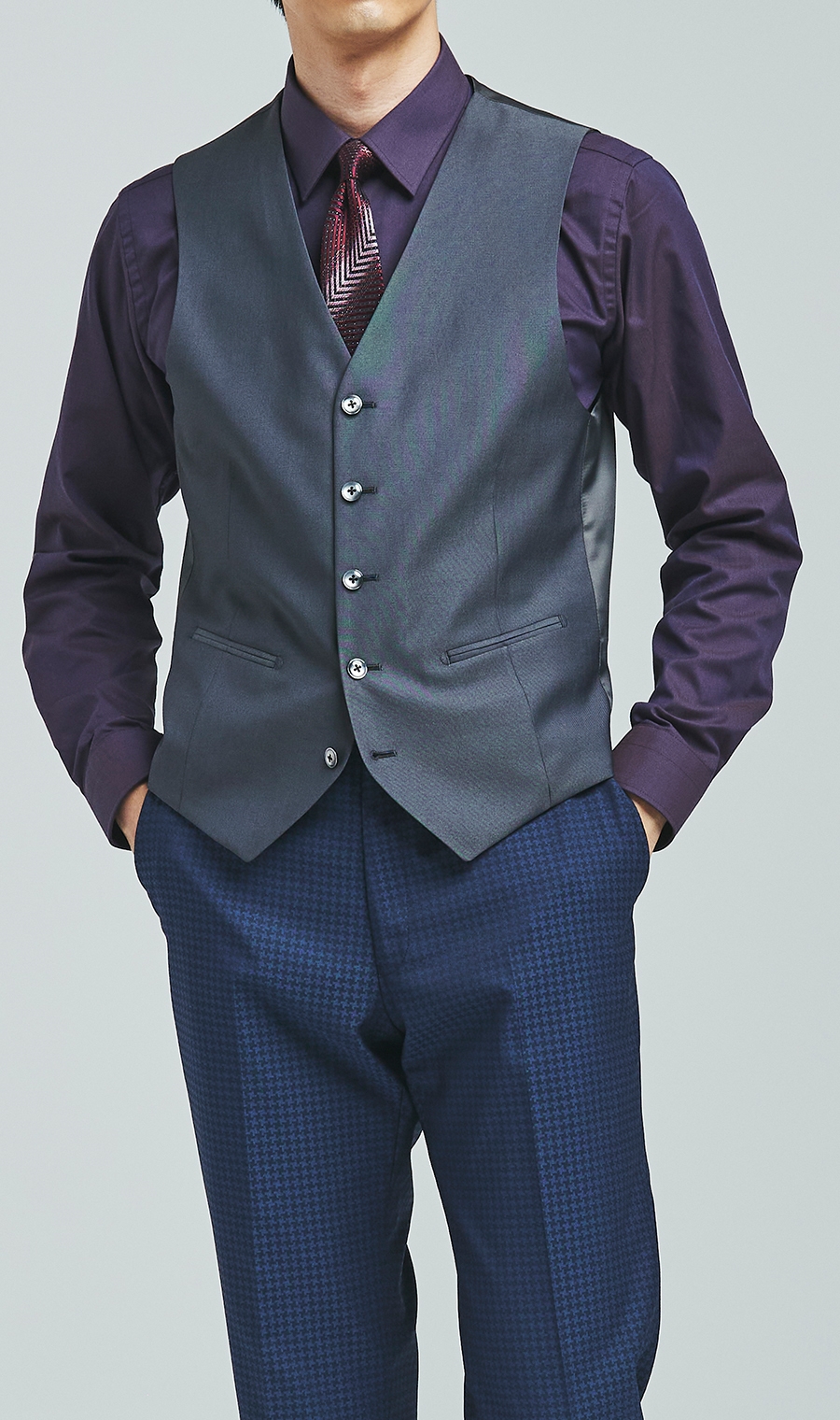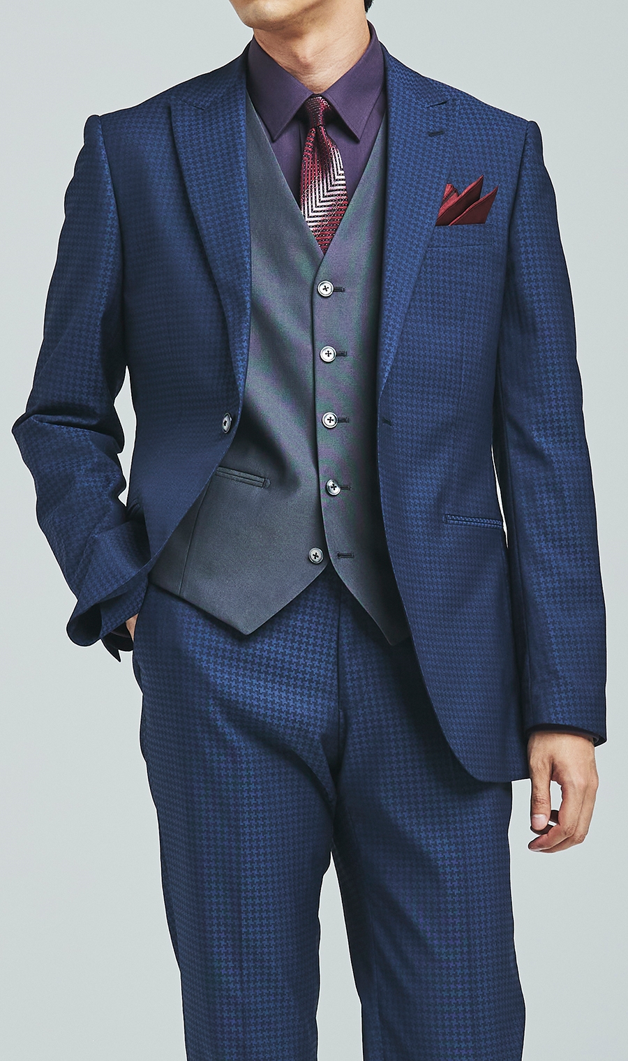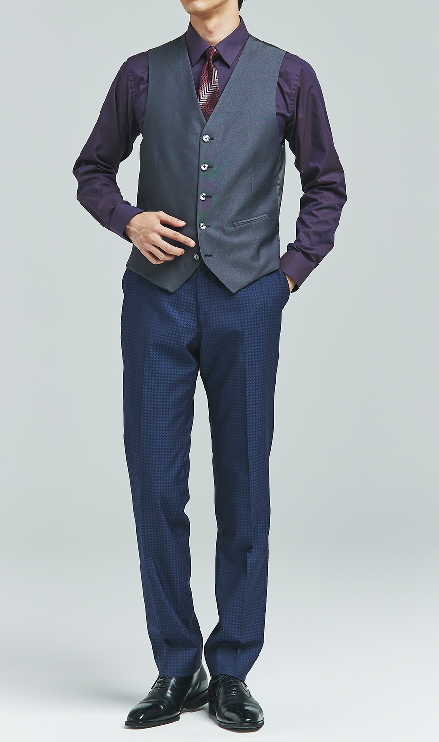 1.スリーピーススーツ(ジャケット・ベスト・スラックス)※スラックスはウエストアジャスター付