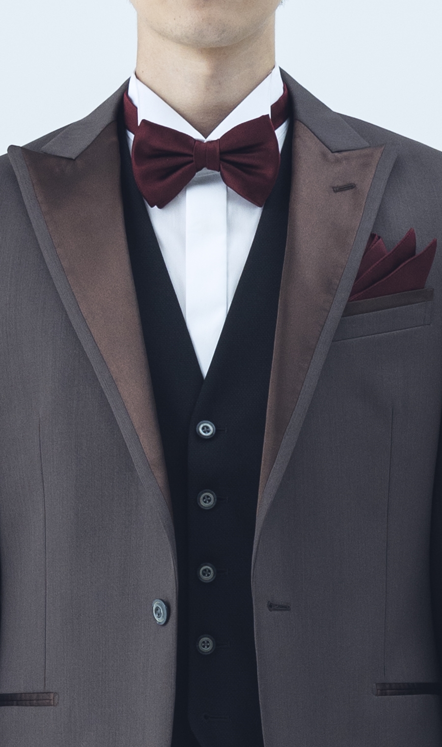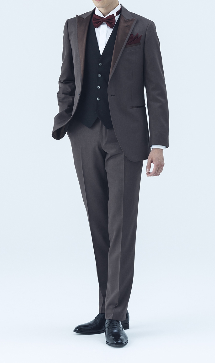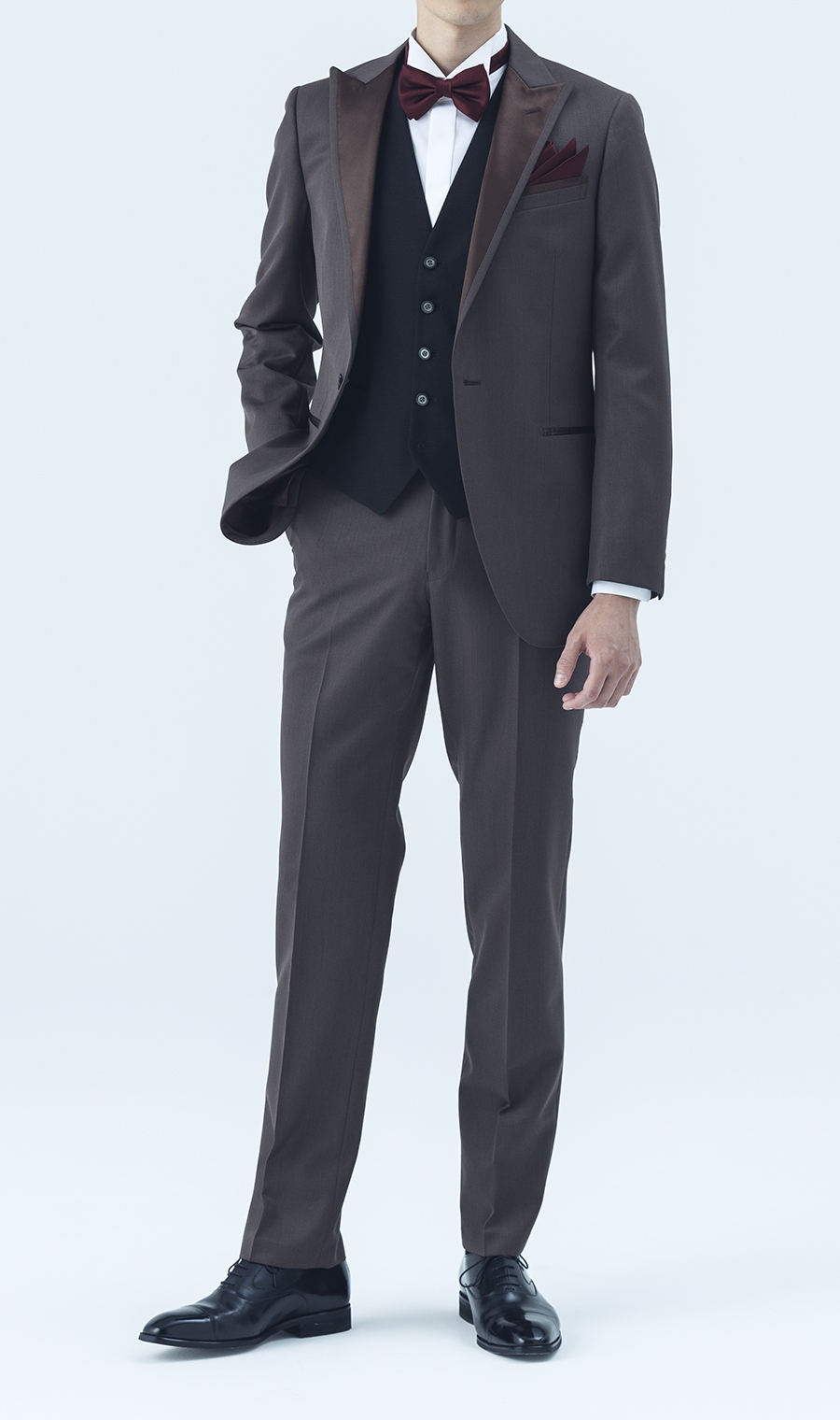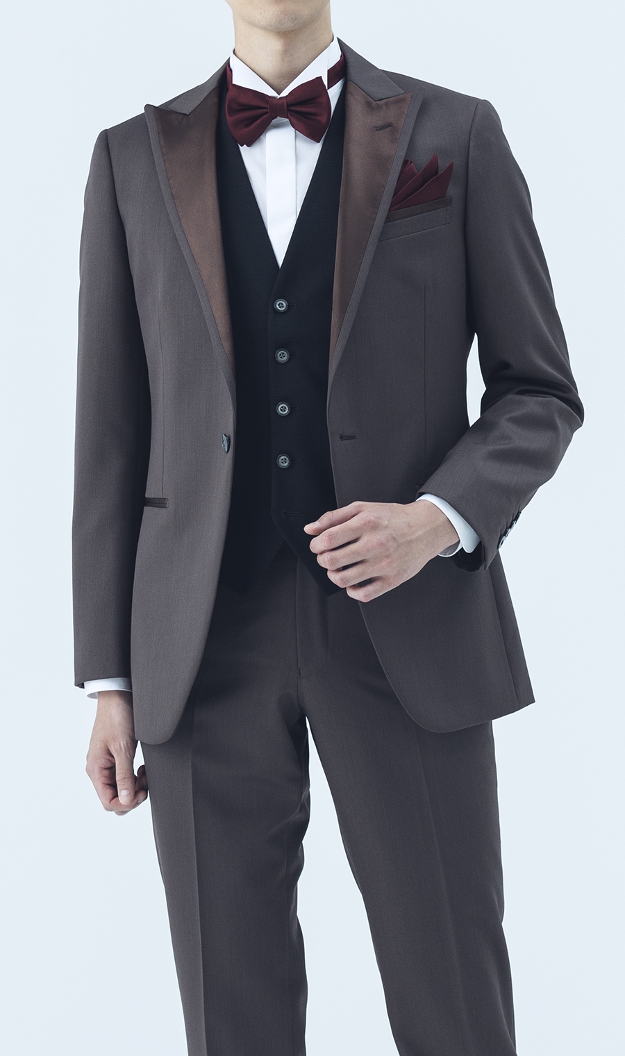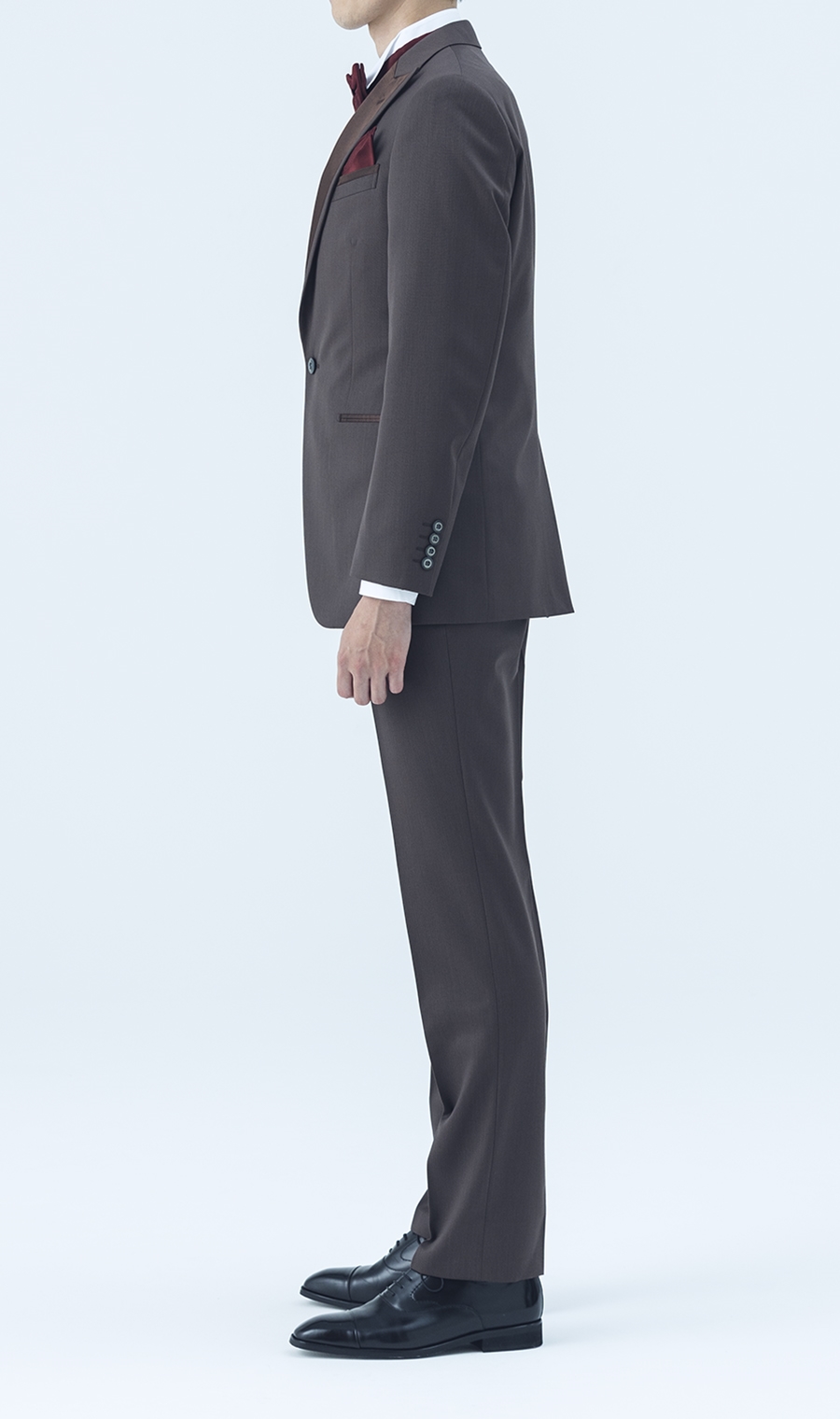 生地の光沢、デザイン共に華やかさを演出してくれるパーティスーツ。