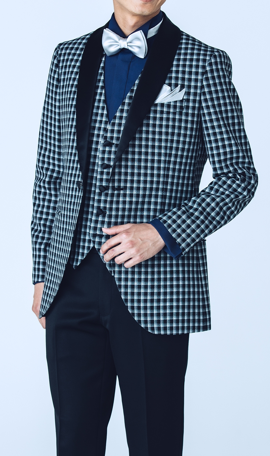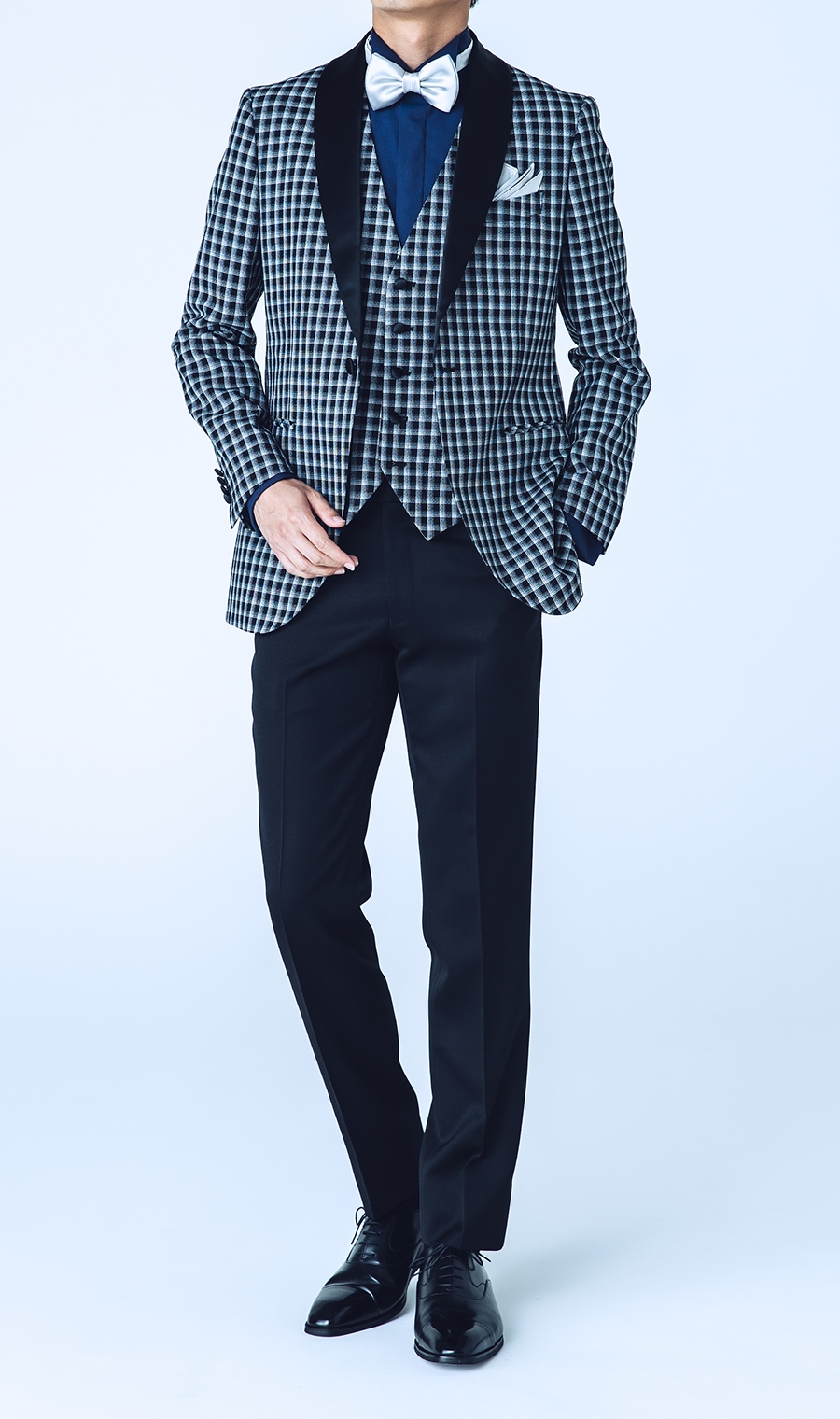 カジュアルパーティーなど、シーンによって表情を変えることができる万能タキシード。