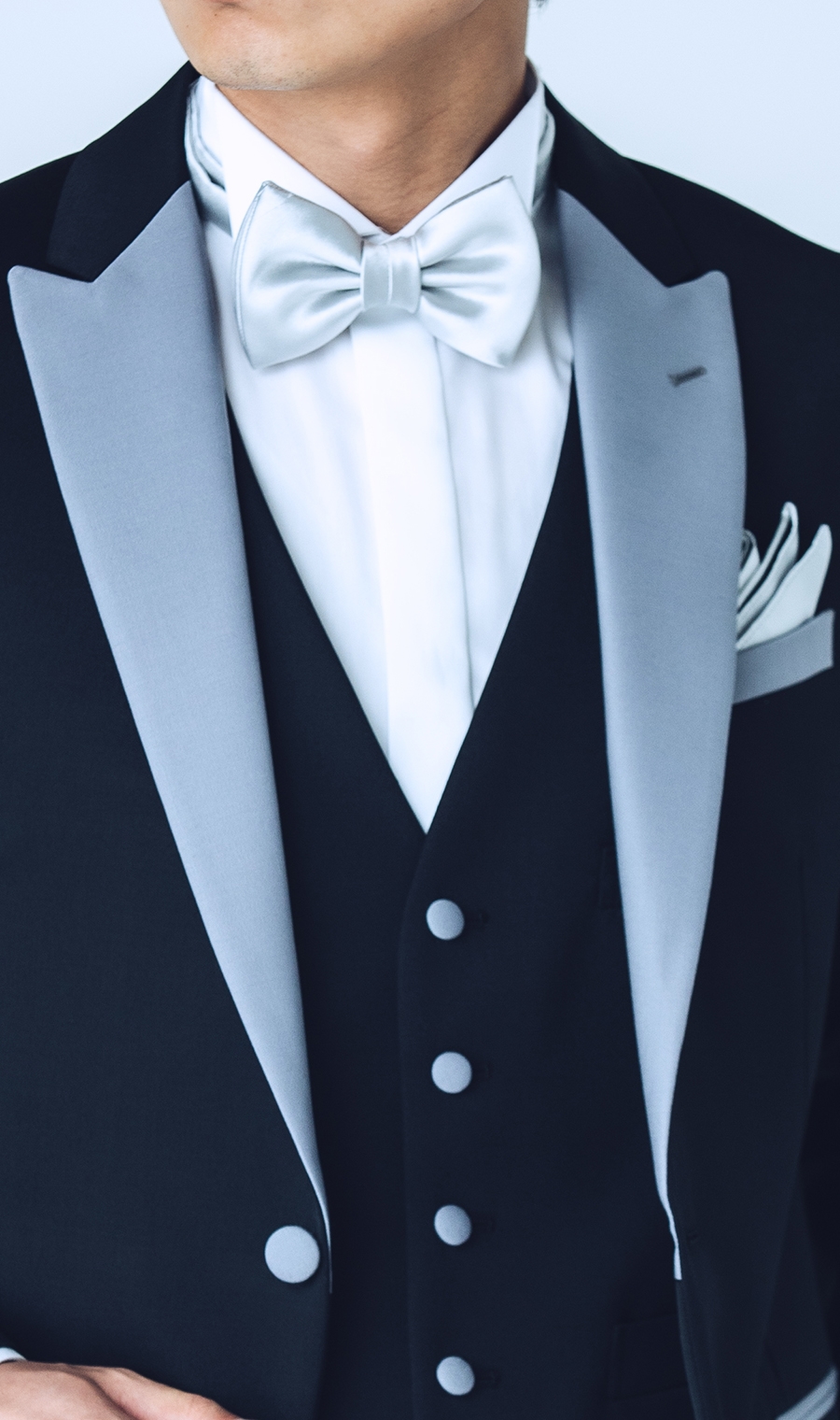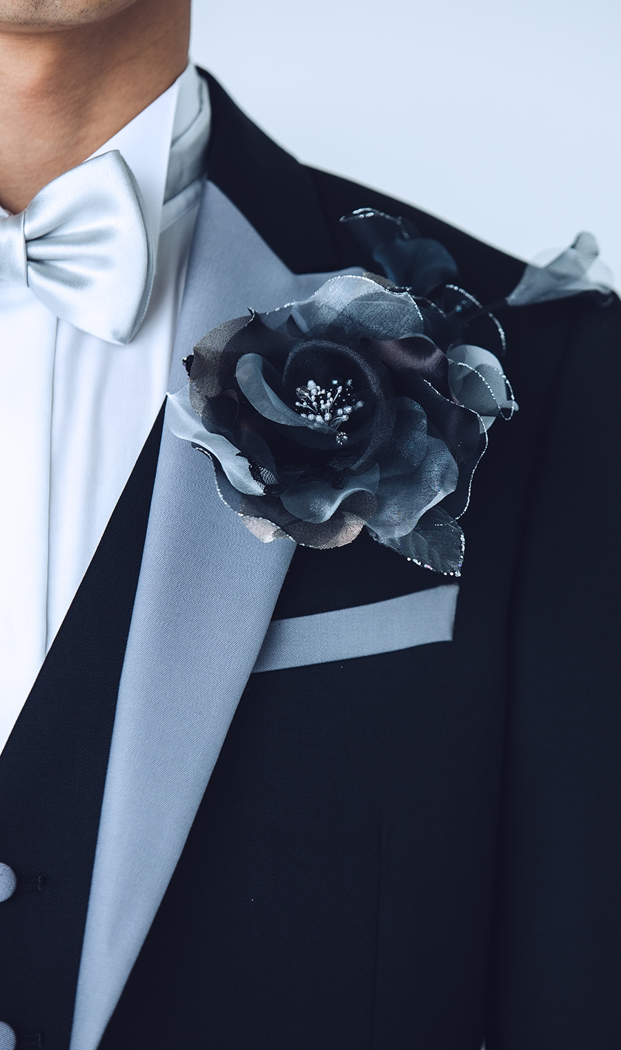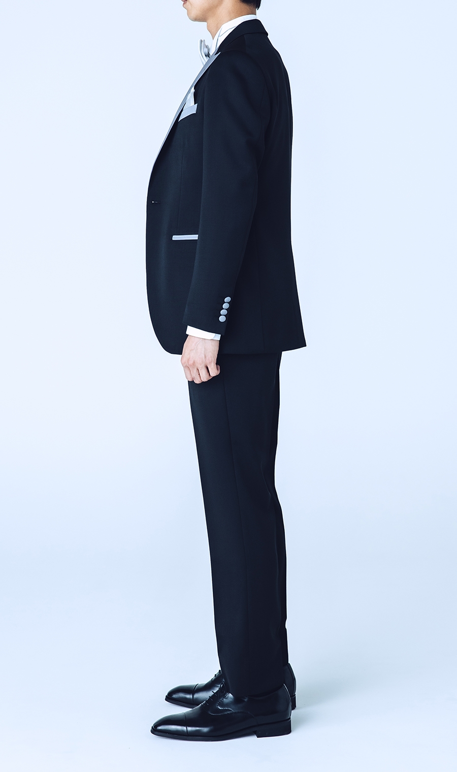 上品な光沢感のある素材とブラックを合わせることにより、セレモニーブラックをアップデート。
